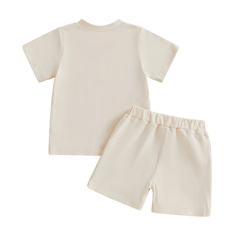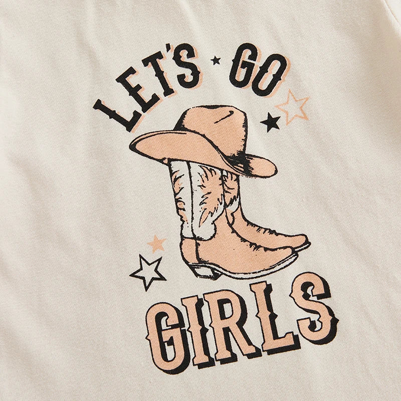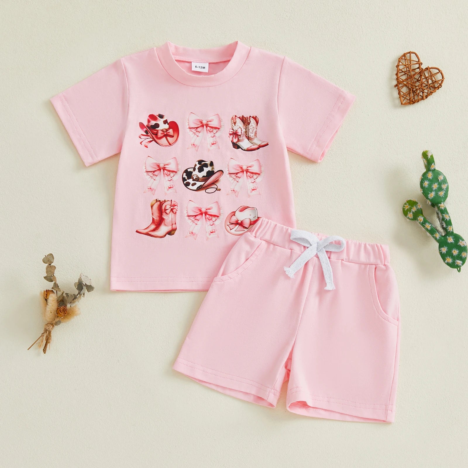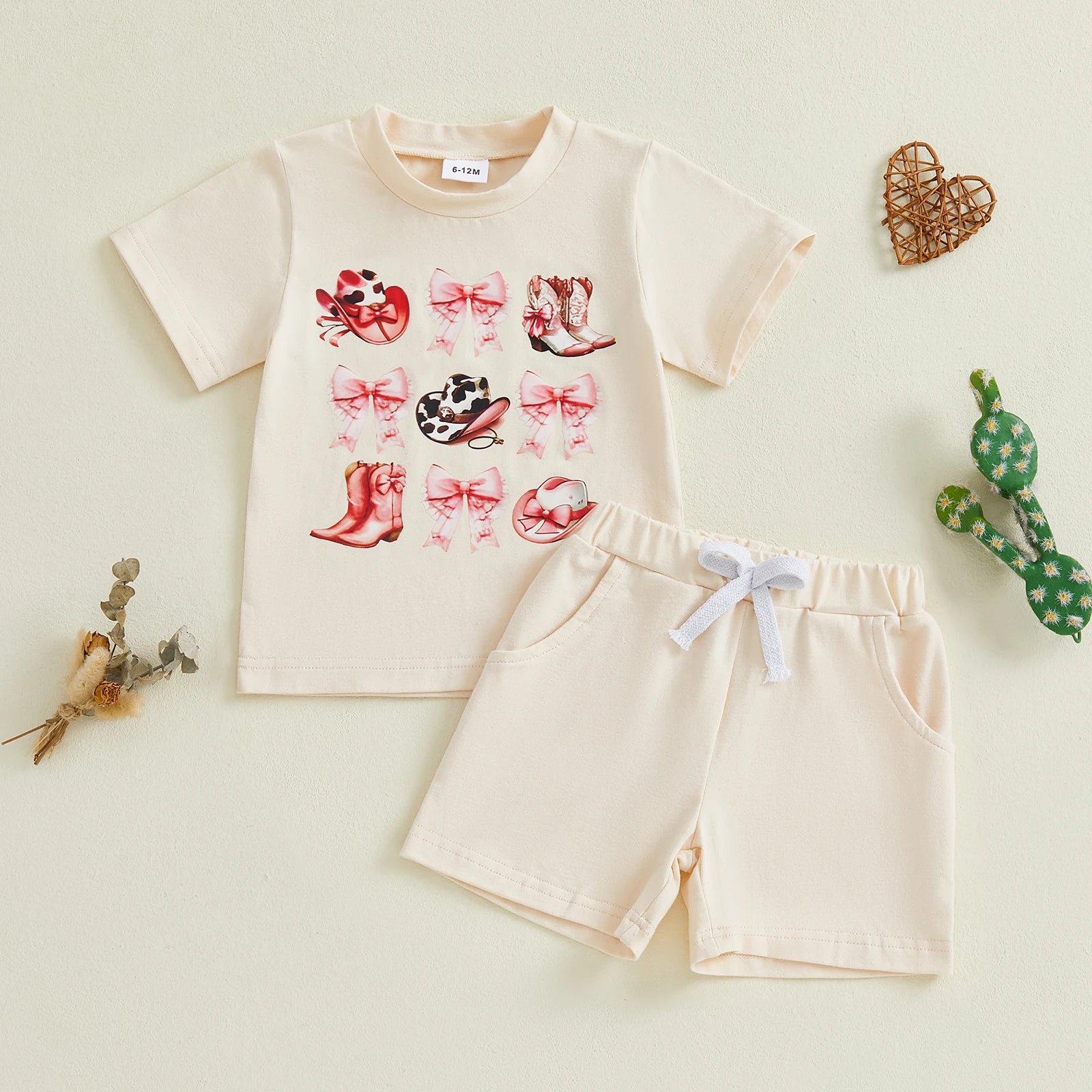 0-4Y Kids Girls Clothes Set Short Sleeve Crew Neck Letters Boots Print T-shirt with Shorts