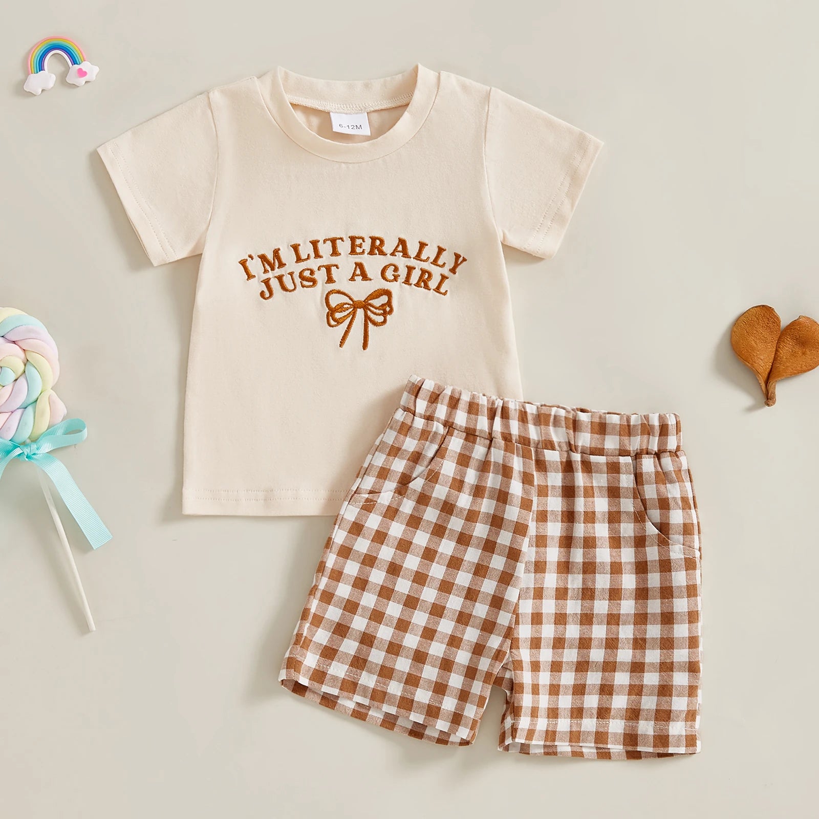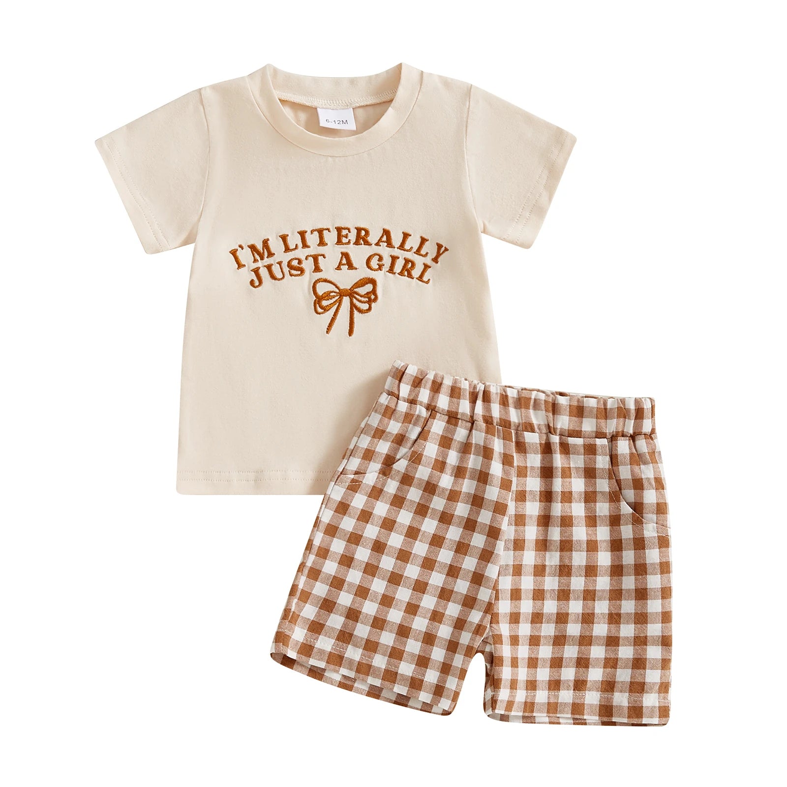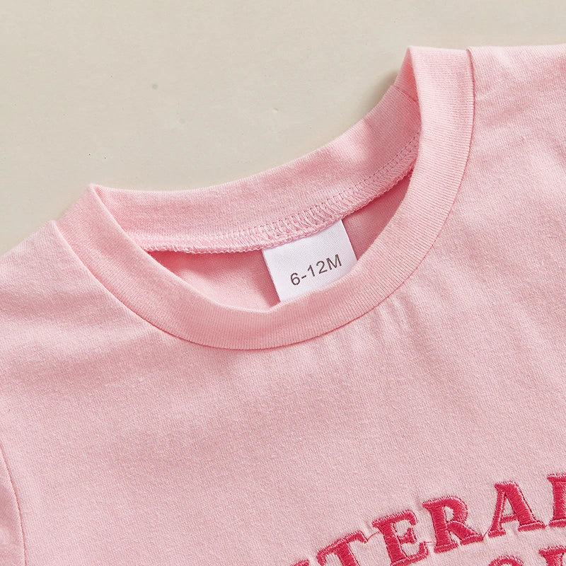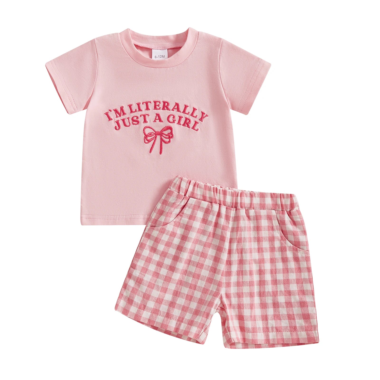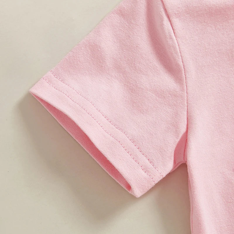 0-4Y Kids Girls Summer Clothes Sets 2pcs Outfits Short Sleeve Letter Bow Embroidery T Shirts Plaid Shorts Sets