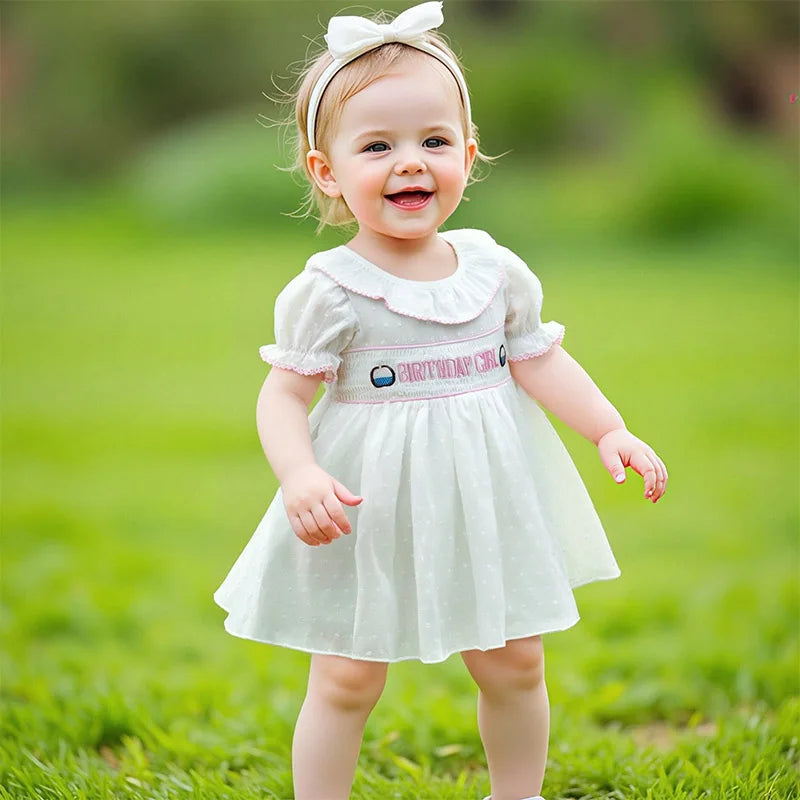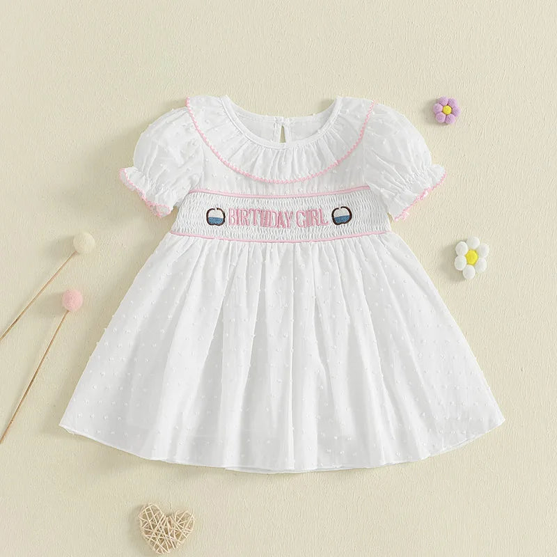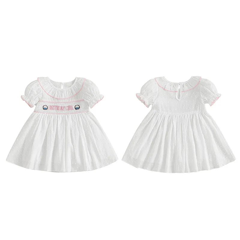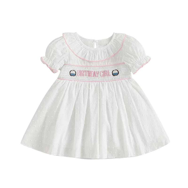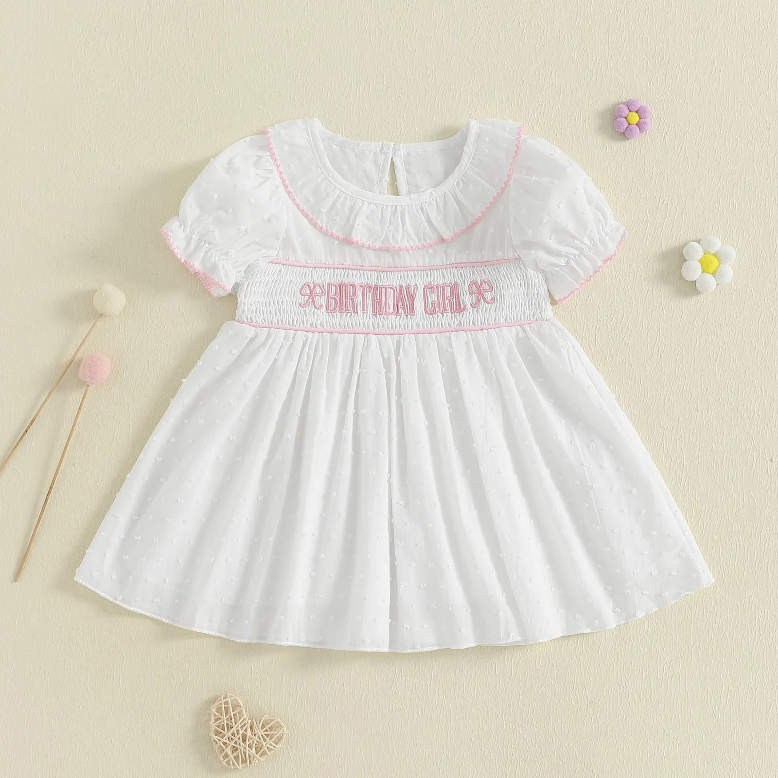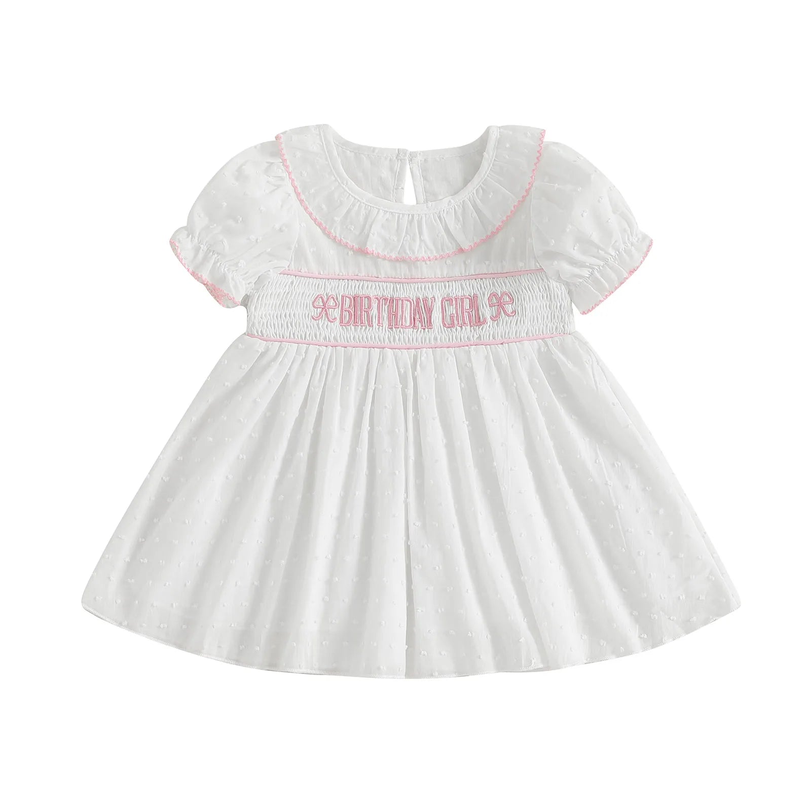 0-4Y Kids Girls Birthday Dress 2 Style Short Sleeve Cake Embroidery Smocked Dress Summer A-Line Dress
