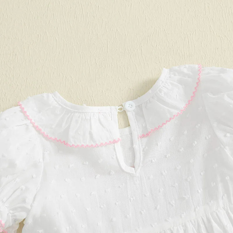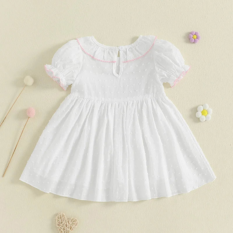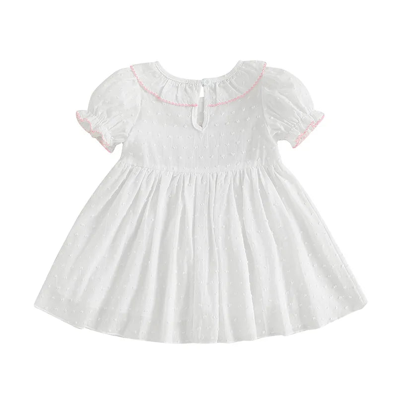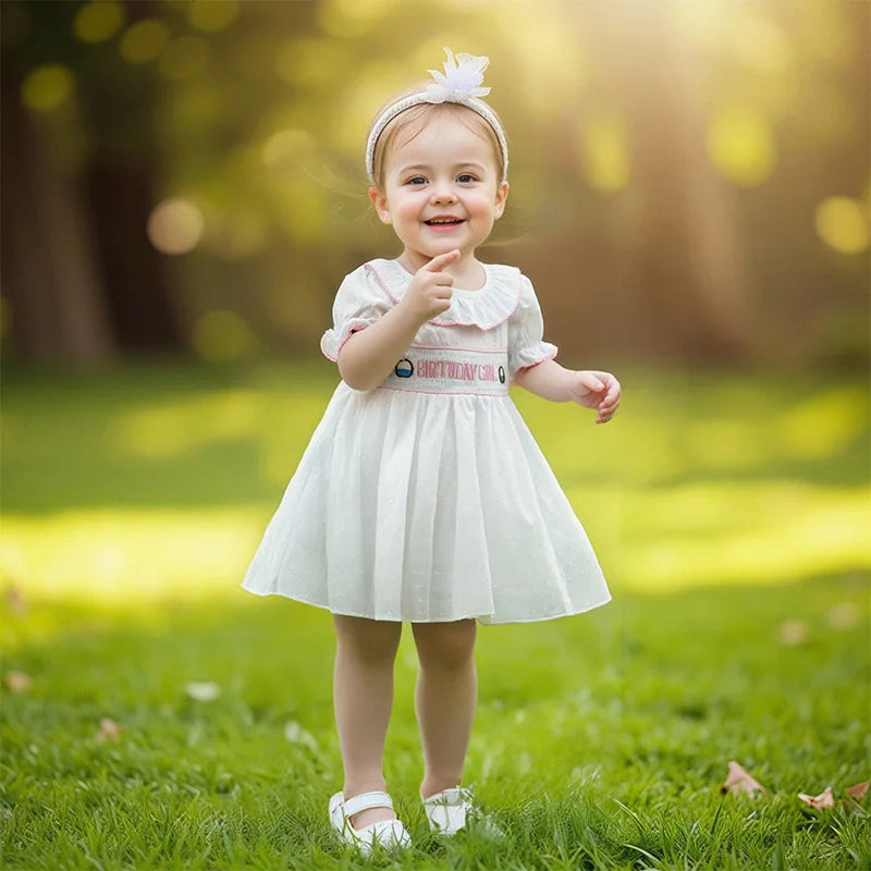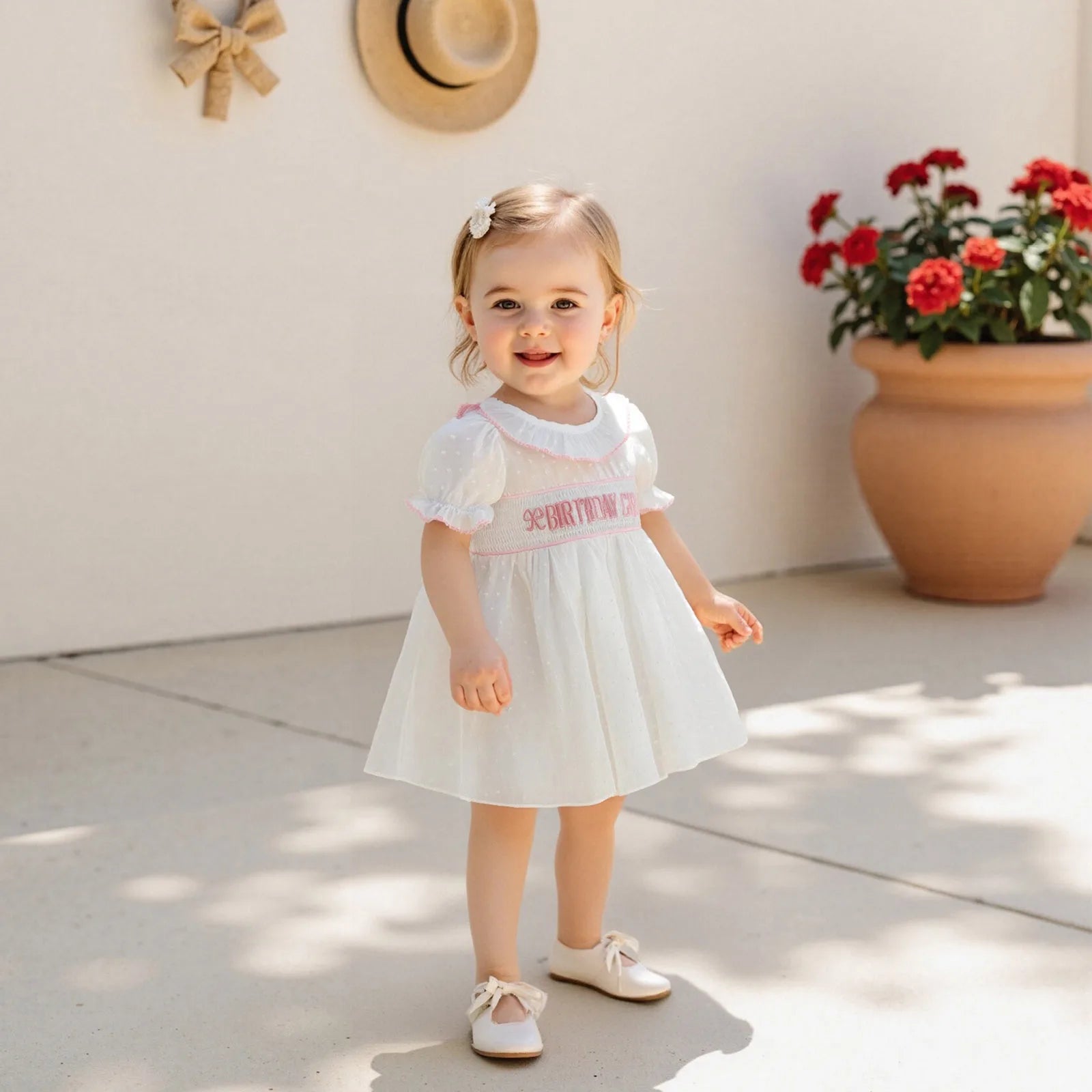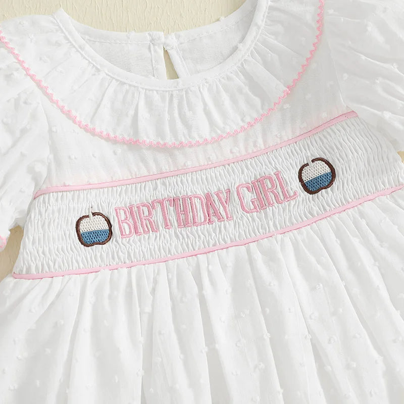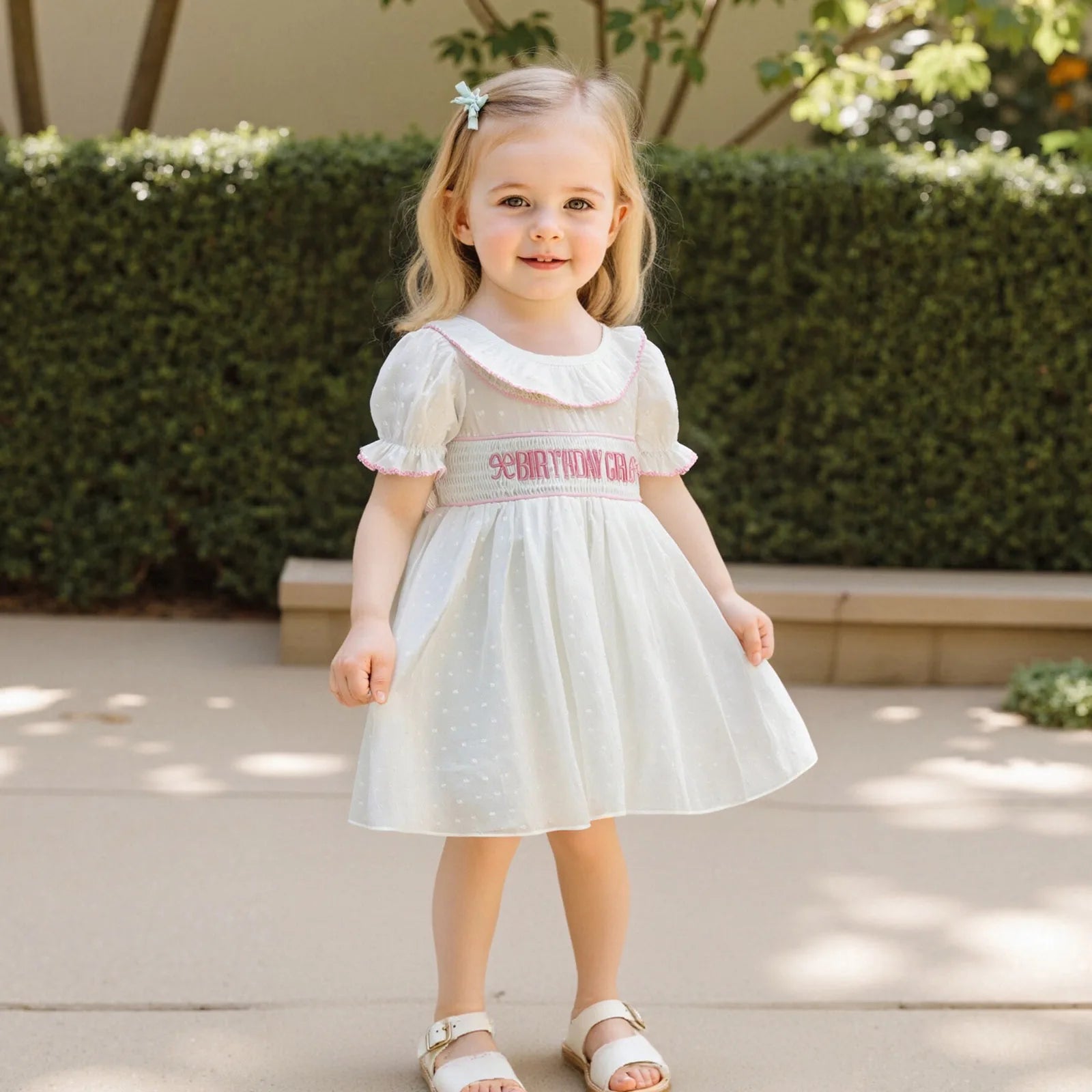 0-4Y Kids Girls Birthday Dress 2 Style Short Sleeve Cake Embroidery Smocked Dress Summer A-Line Dress