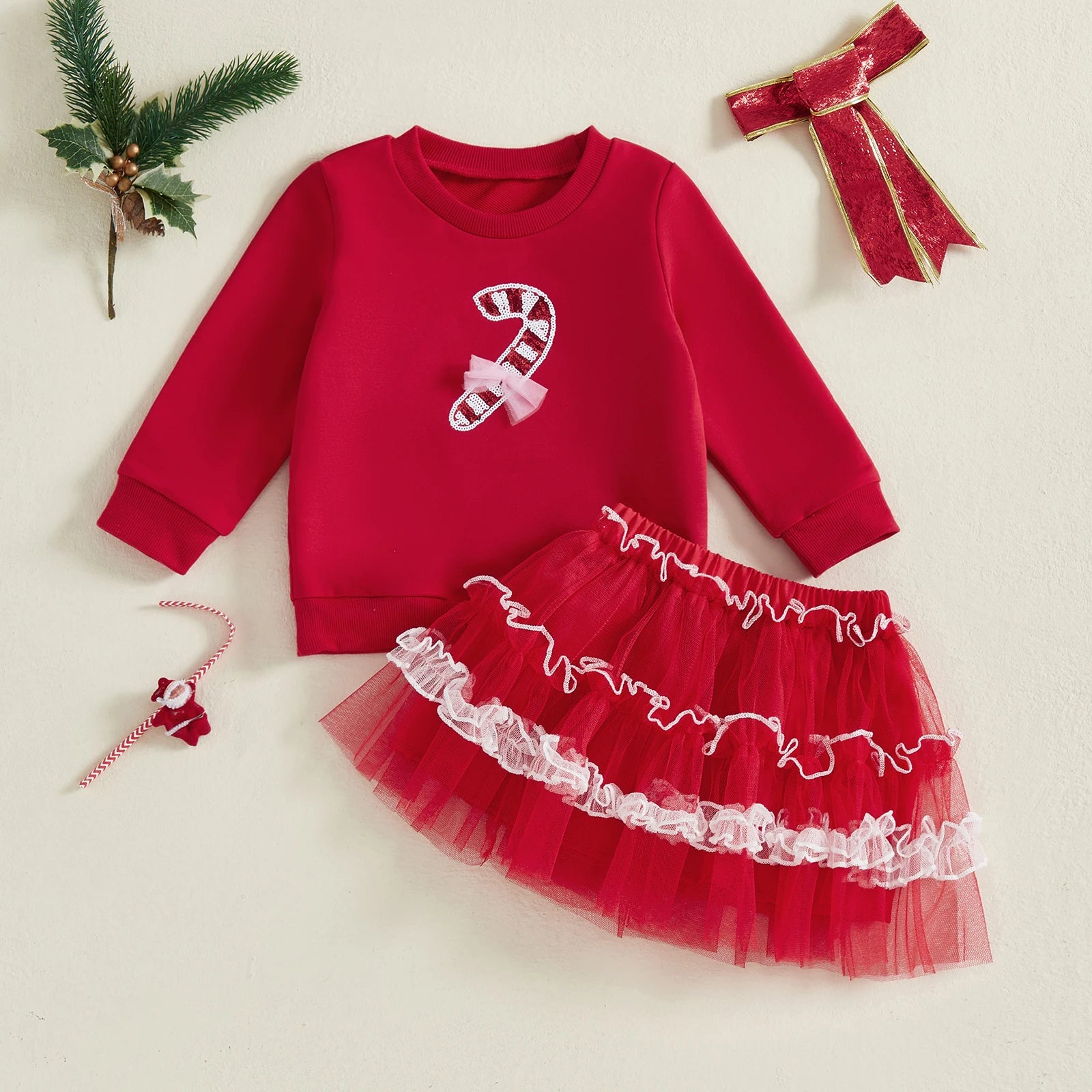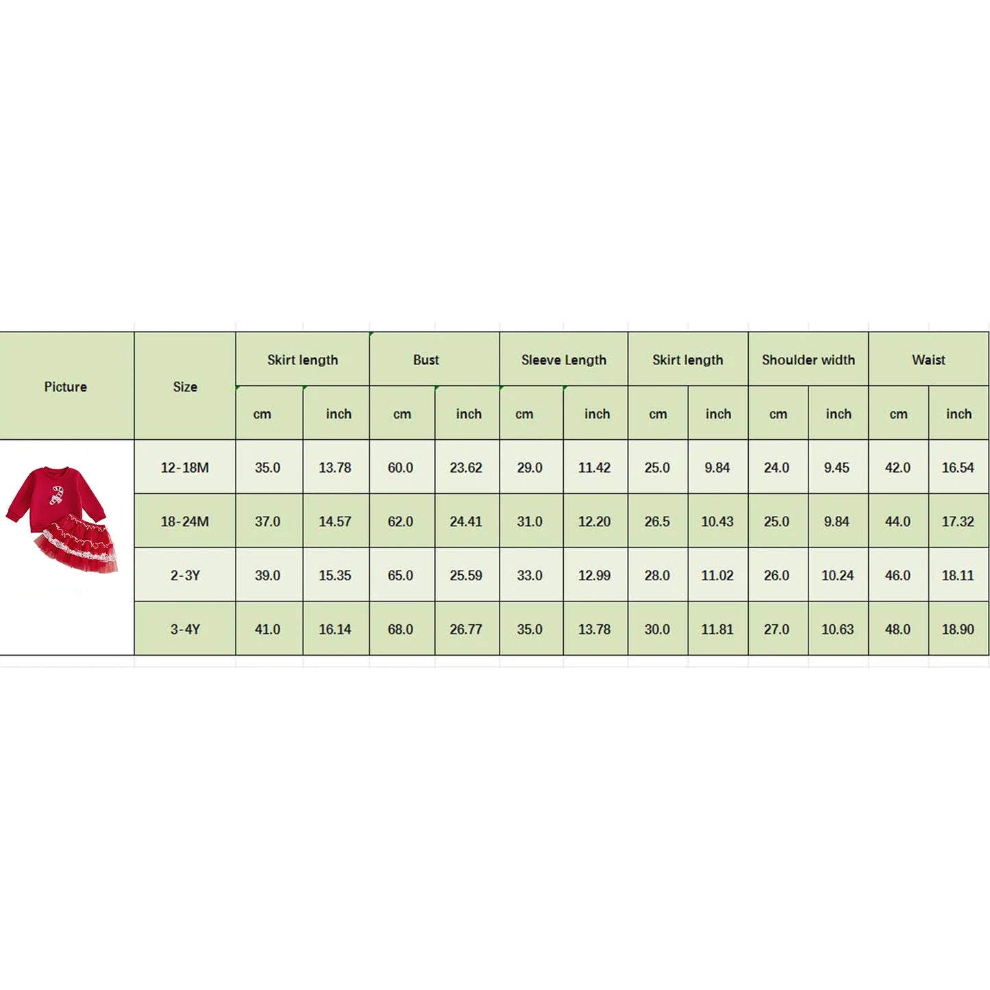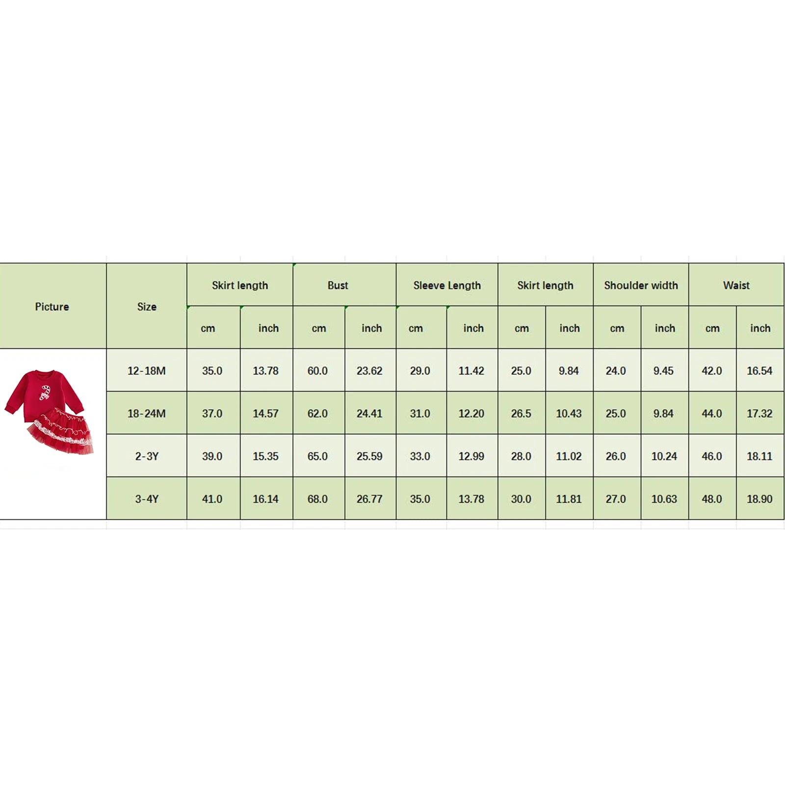 Kids Girls Christmas Outfit Set - Long Sleeve Xmas Embroidery Sweatshirt & Tulle Skirt (0-4Y)