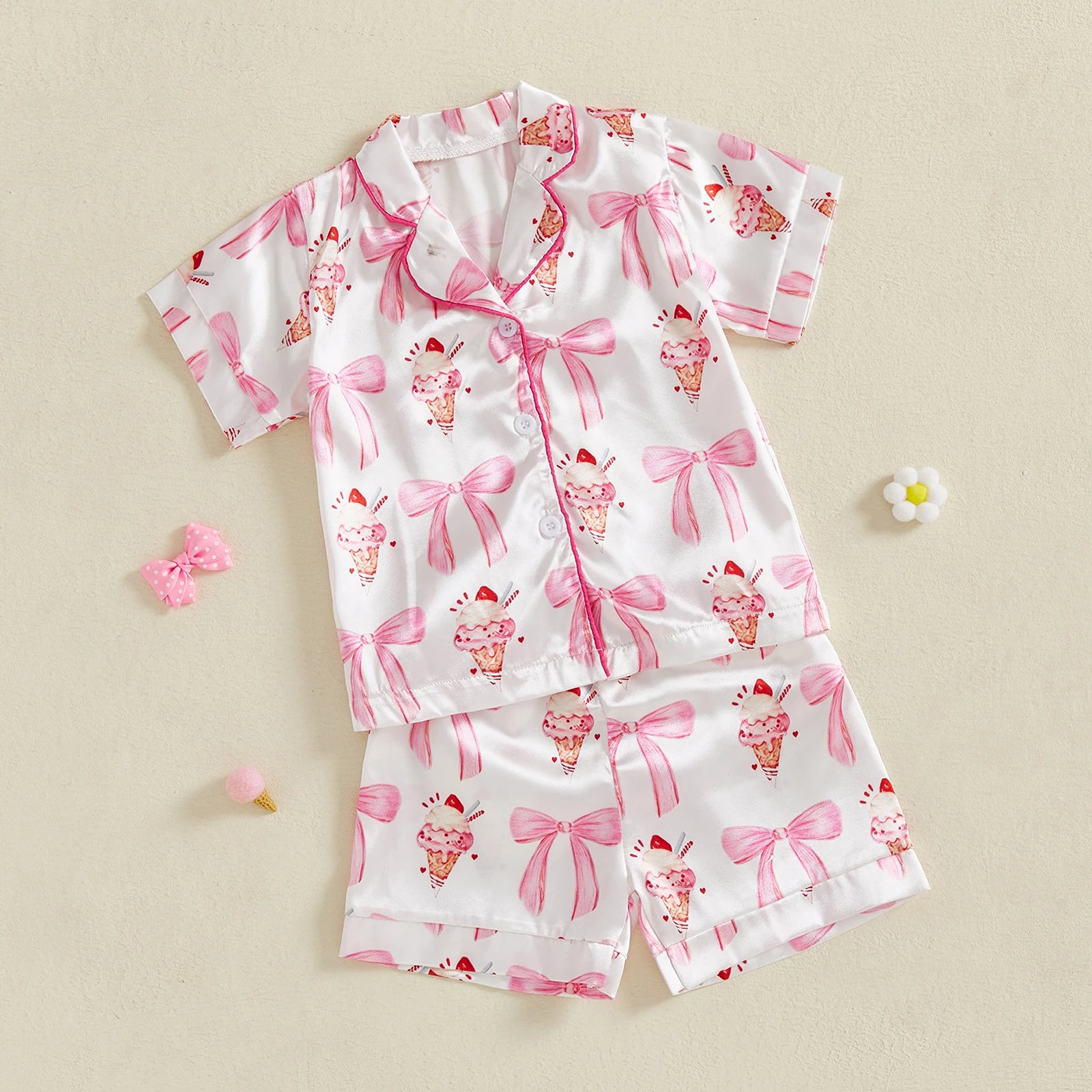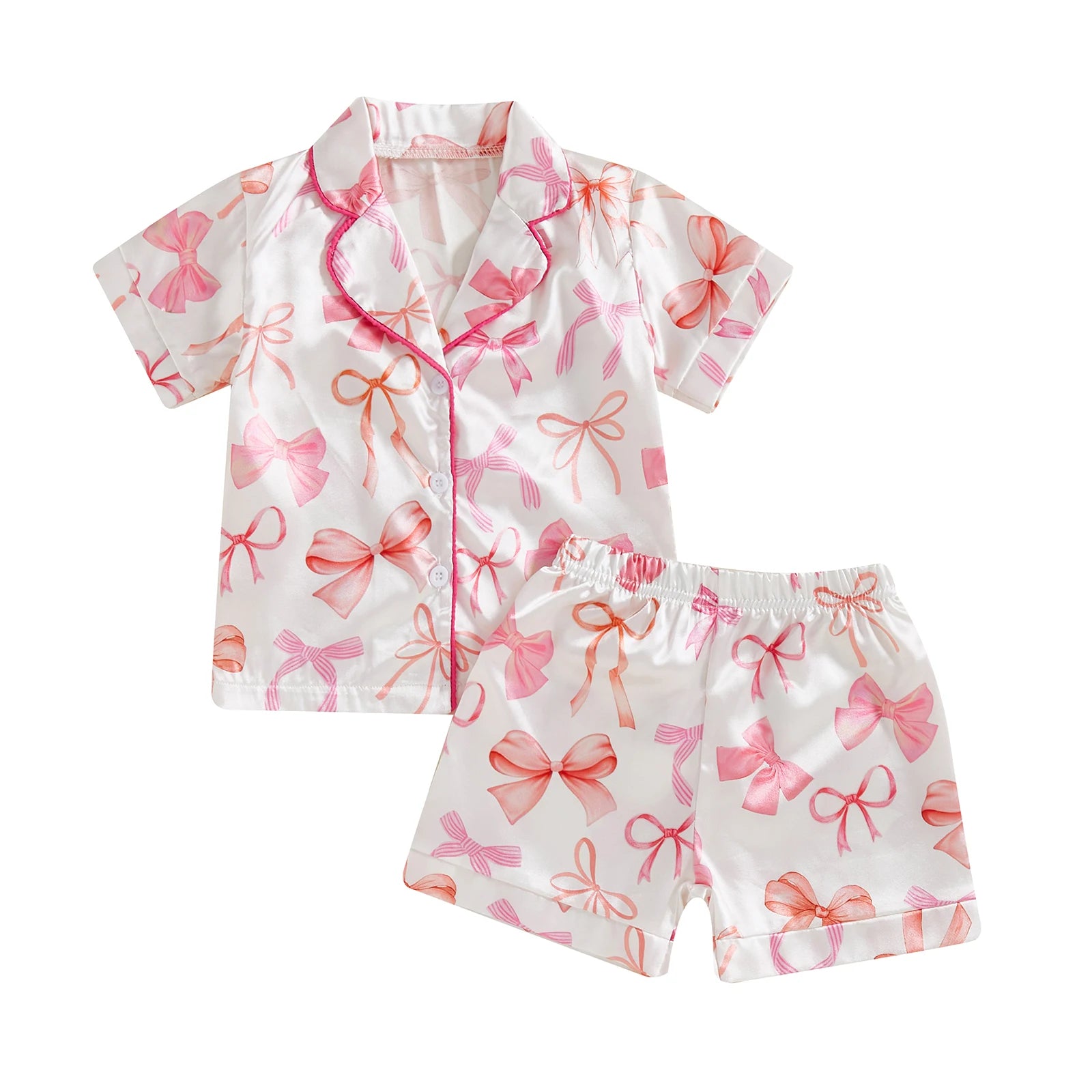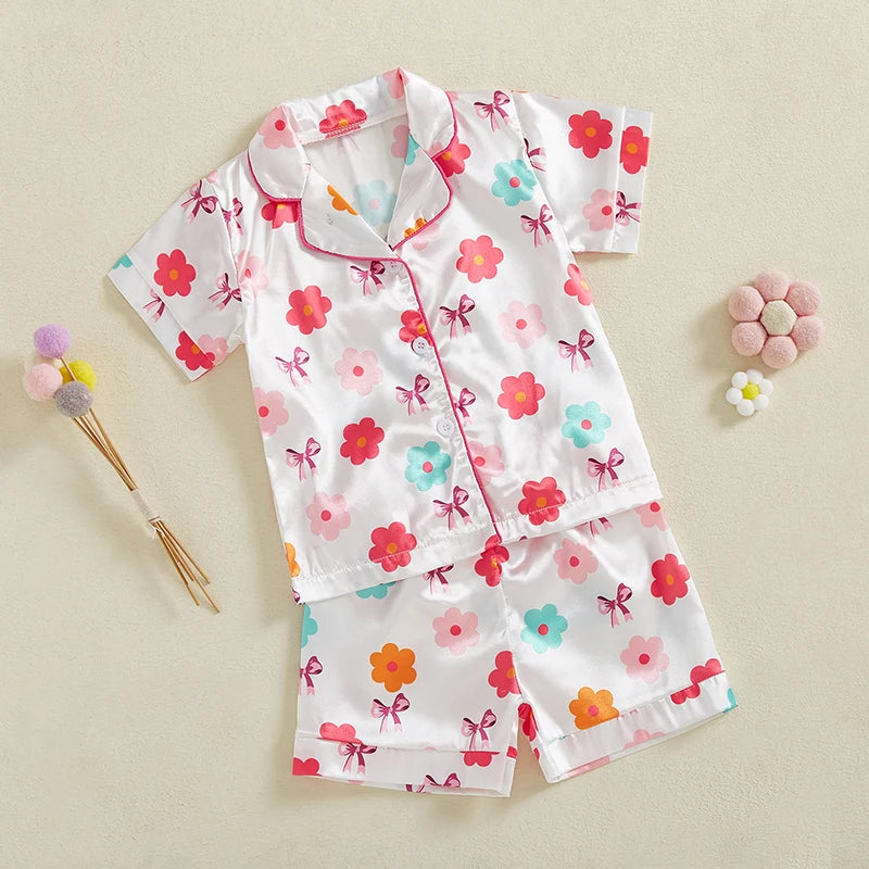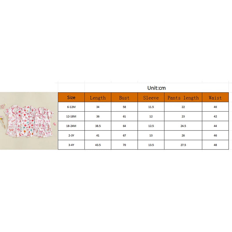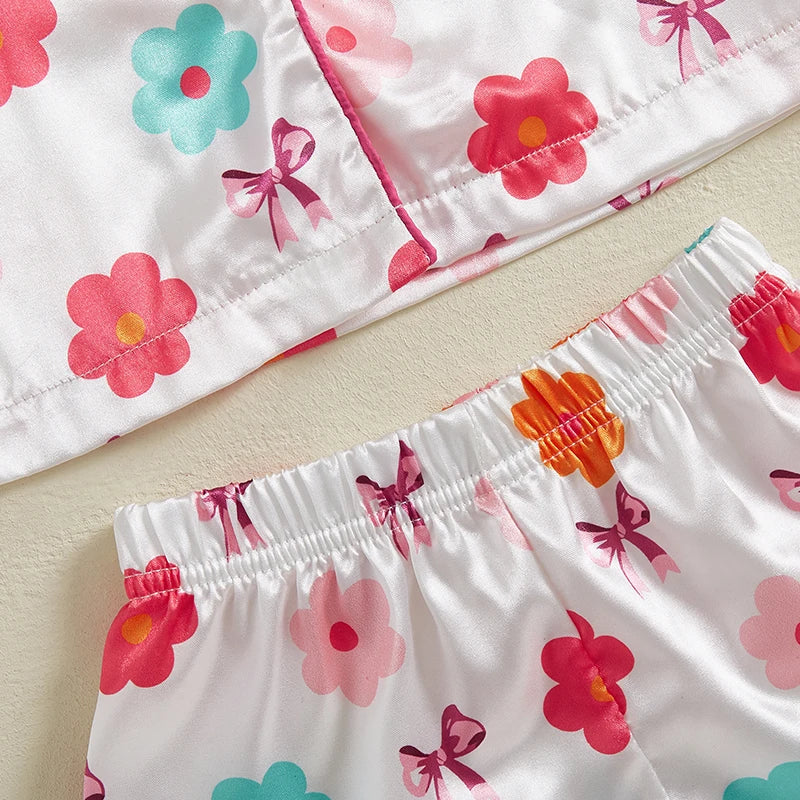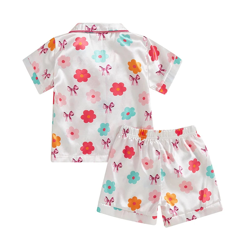0-4Y Summer Kids Girls Summer Pyjamas Clothes Sets 2pcs Flower Bow Print Single Breasted Shirts and Shorts
