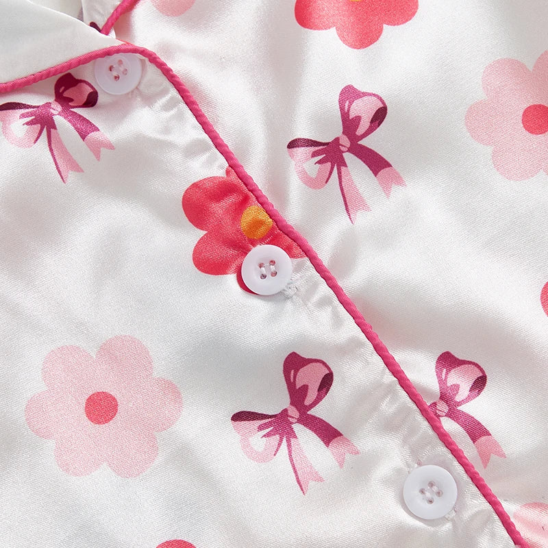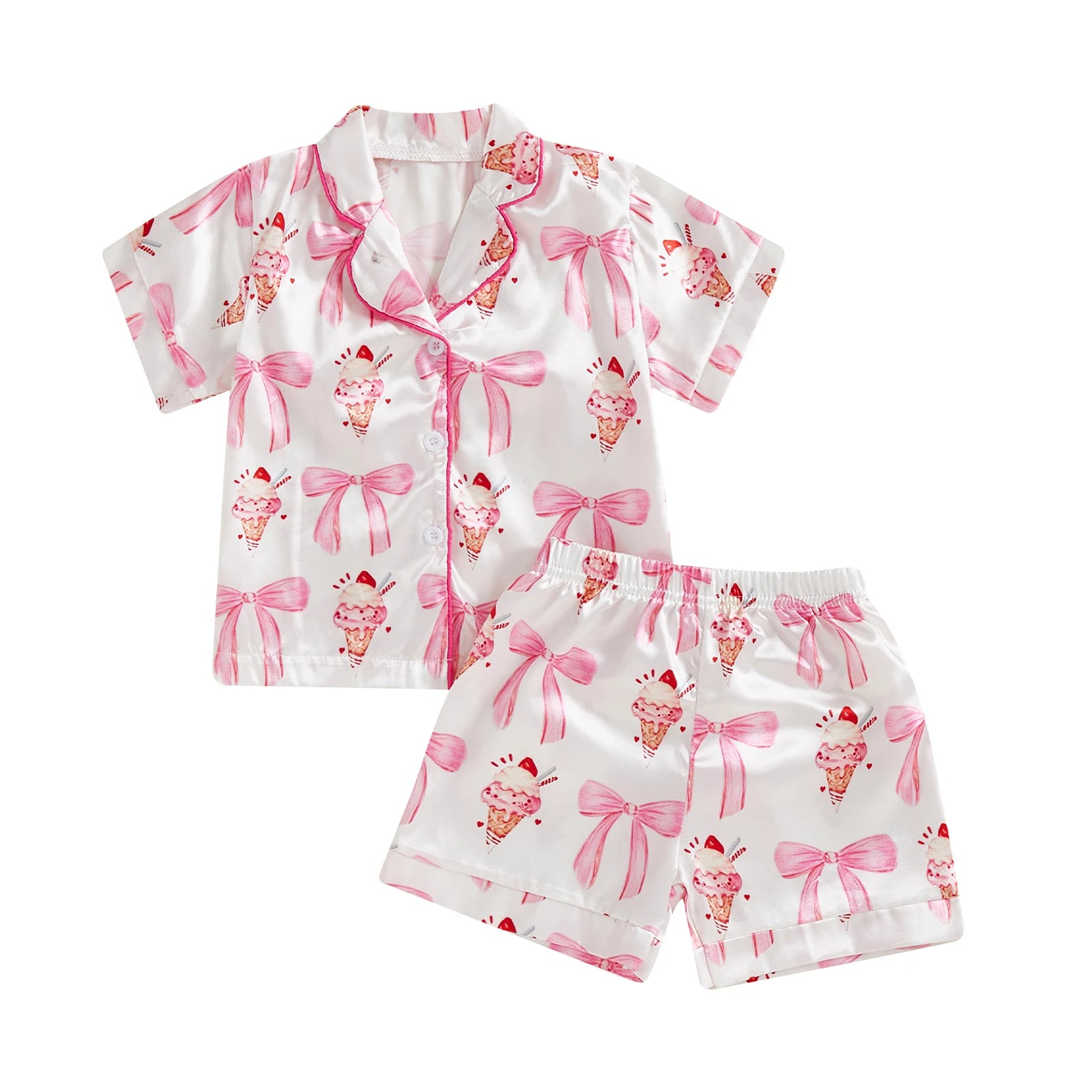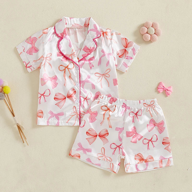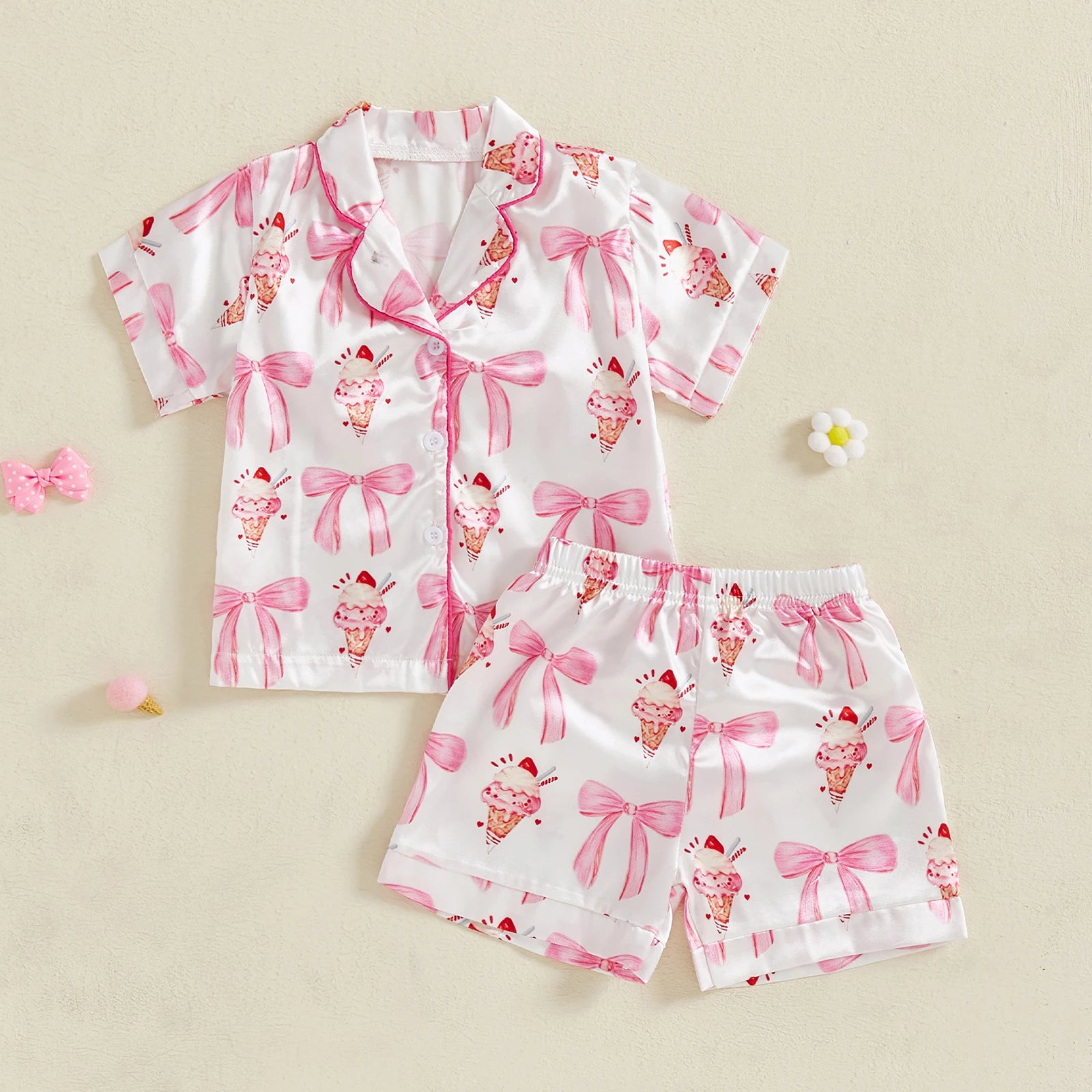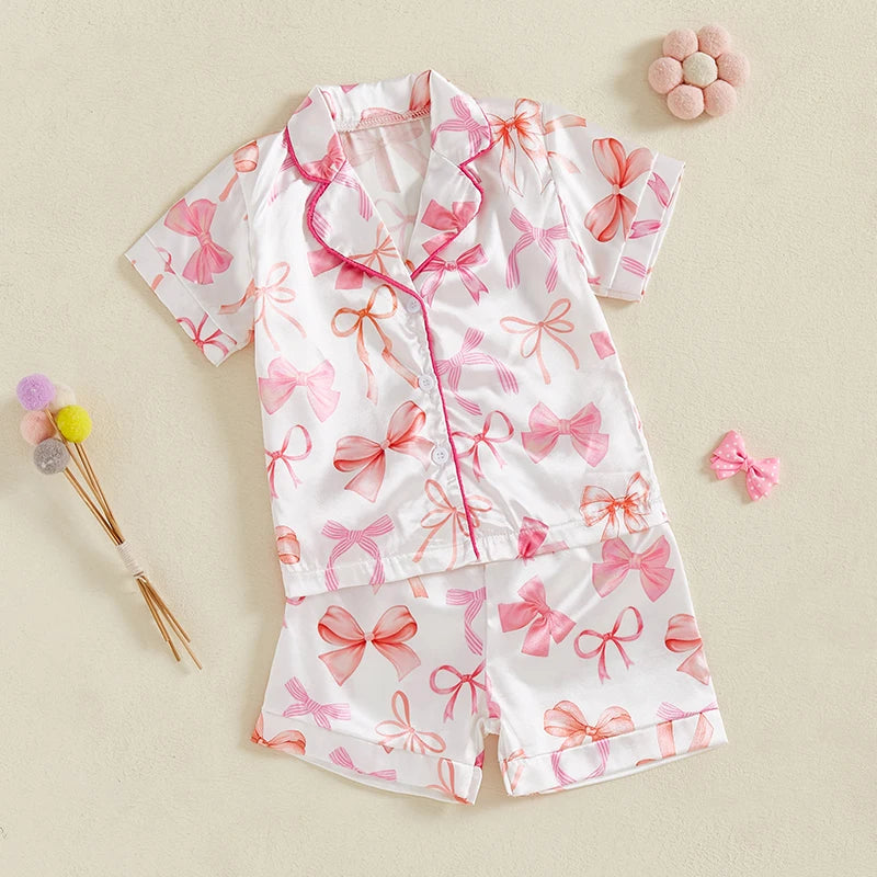 0-4Y Summer Kids Girls Summer Pyjamas Clothes Sets 2pcs Flower Bow Print Single Breasted Shirts and Shorts