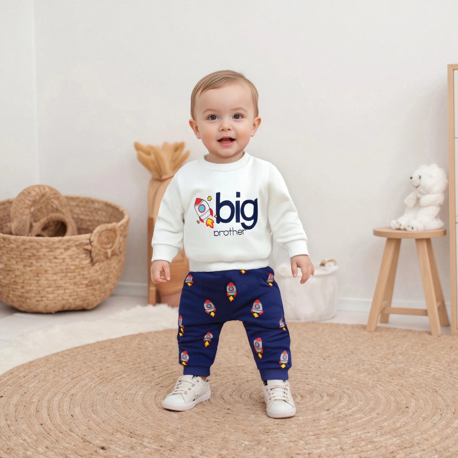 This playful two-piece set features a crew neck pullover sweatshirt with fun cartoon and letter prints paired with coordinating pants. Perfect for autumn and winter, this comfortable ensemble keeps your little one warm and stylish during cooler months.