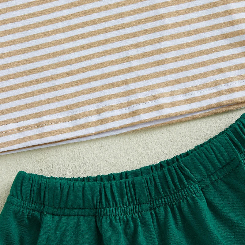 Watch your little one explore in style with this charming 2-piece farm clothes set, perfect for toddlers aged 0-4 years. Featuring a delightful tractor embroidery on a comfortable short sleeve t-shirt paired with practical solid-colour shorts.