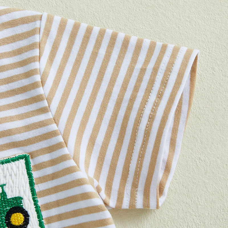 Toddler Baby Boys Farm Clothes Set - Tractor Embroidery T-shirt & Shorts 2pcs