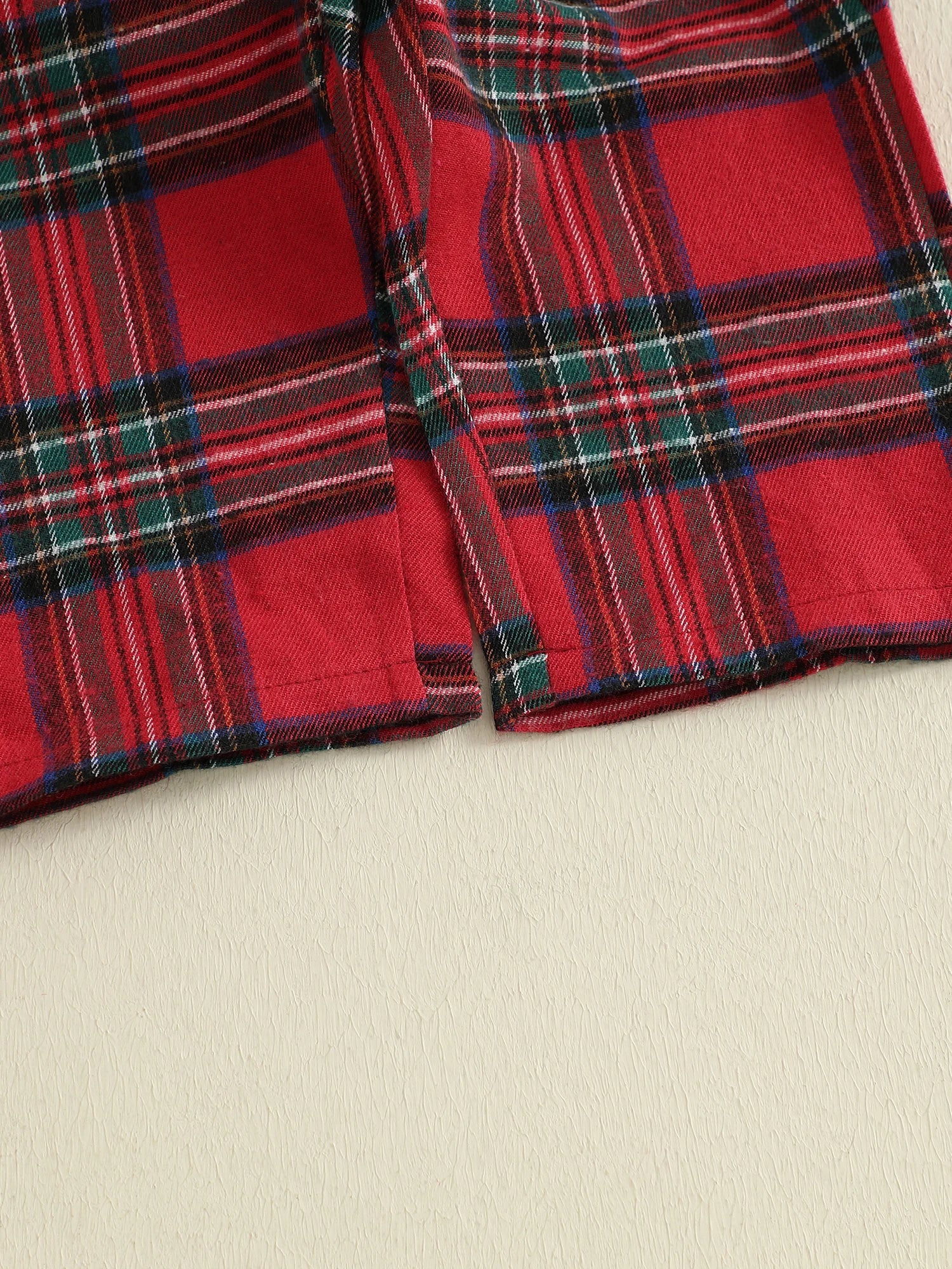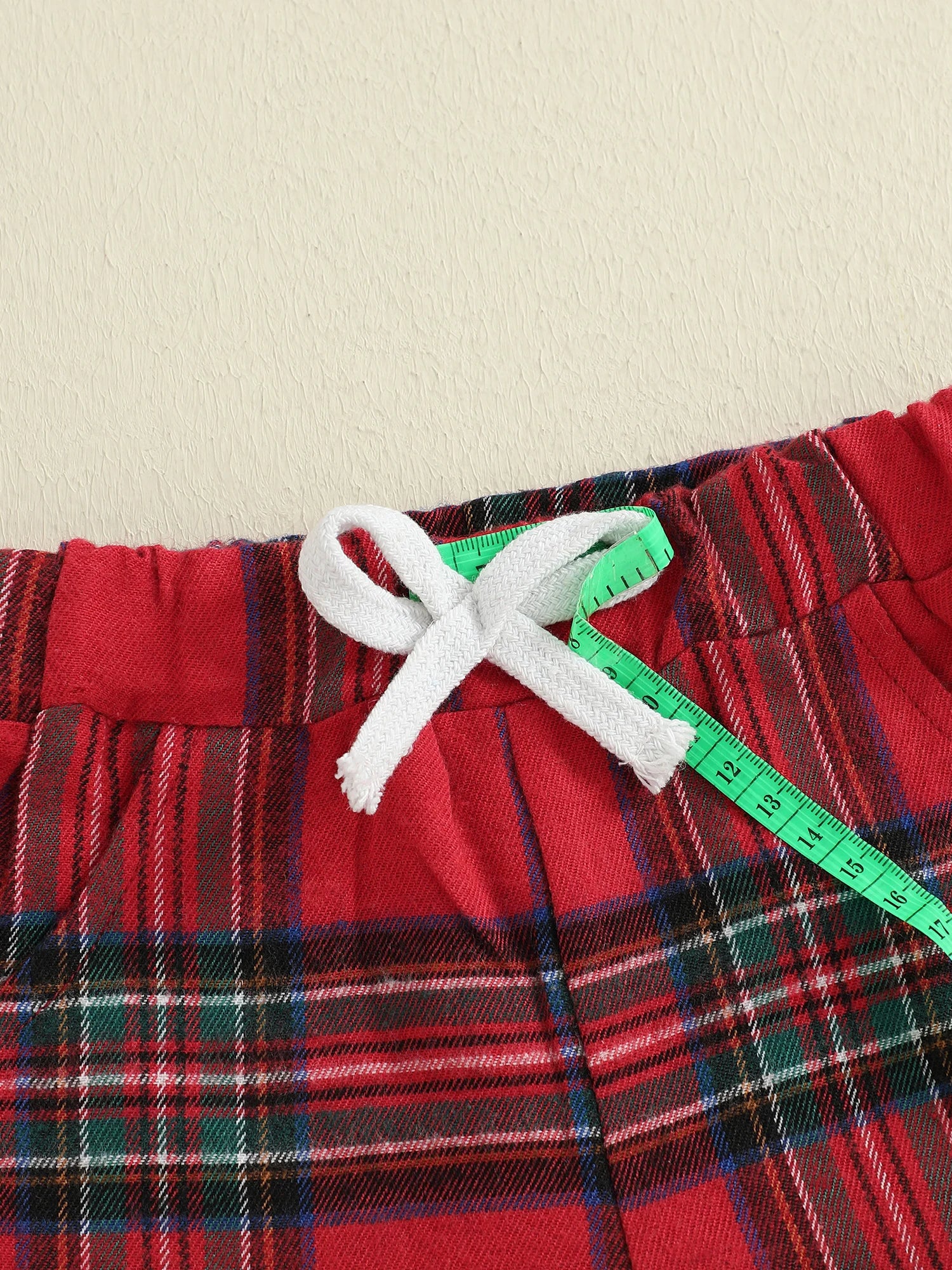 Dress your little gentleman in holiday style with this charming two-piece Christmas set. Featuring a cozy long sleeve pullover with adorable Santa embroidery and coordinating elastic waist plaid pants, this outfit is perfect for festive celebrations and family gatherings.