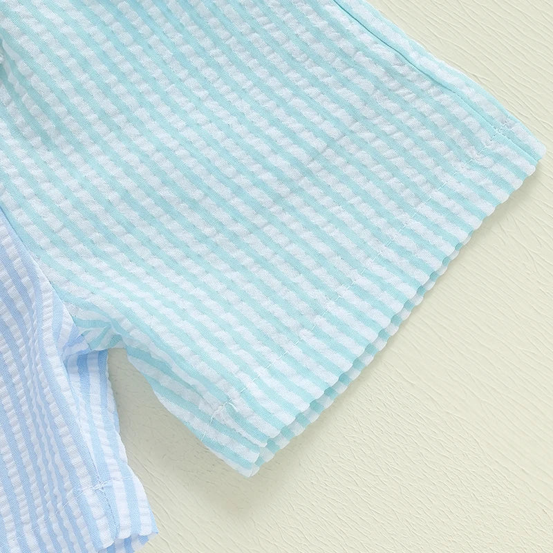 This stylish outfit set is perfect for your little gentleman's everyday adventures. Featuring a contrast colour polo t-shirt with letter embroidery and classic striped shorts, this set combines comfort with smart casual style for boys aged 0-4 years.