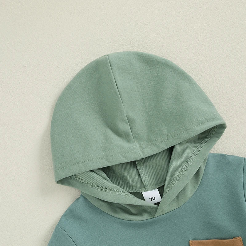 0-4Y Toddler Kids Boys Girls Fall Clothes Set Color Patchwork Long Sleeve Hooded Sweatshirt and Elastic Waist Pants