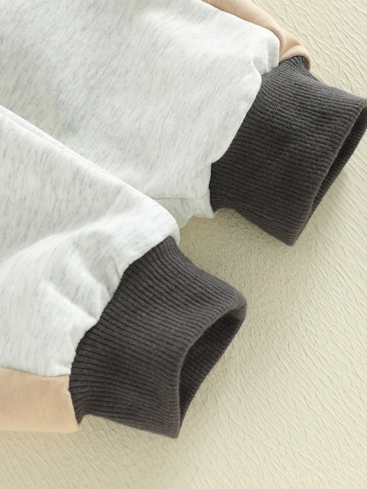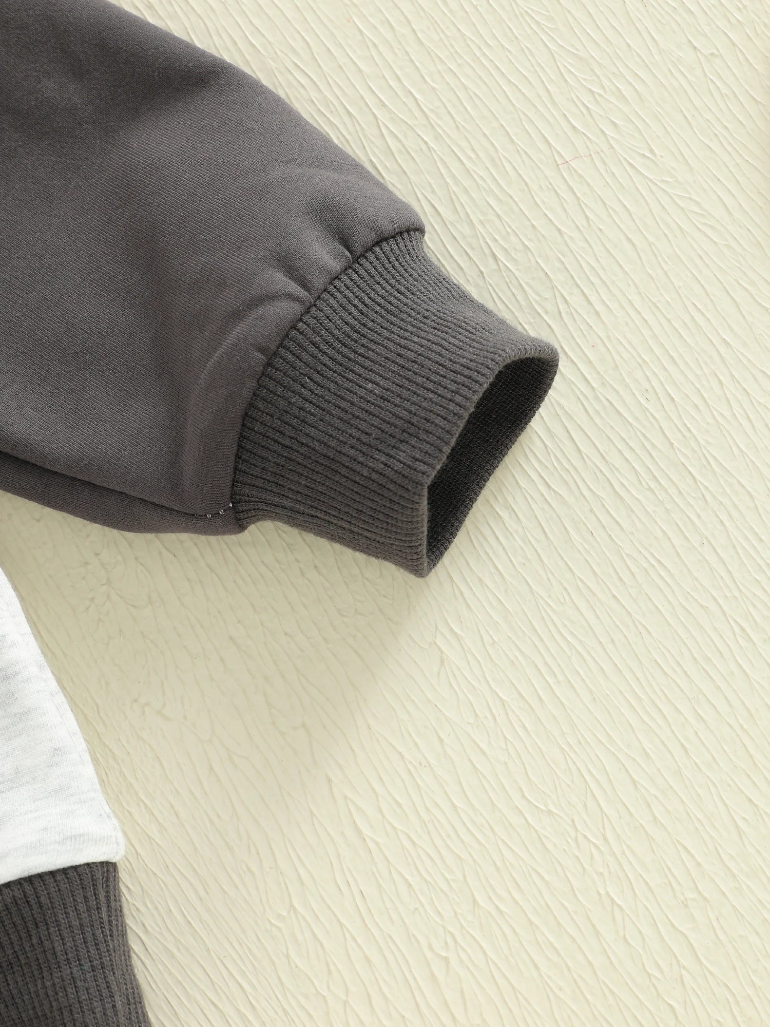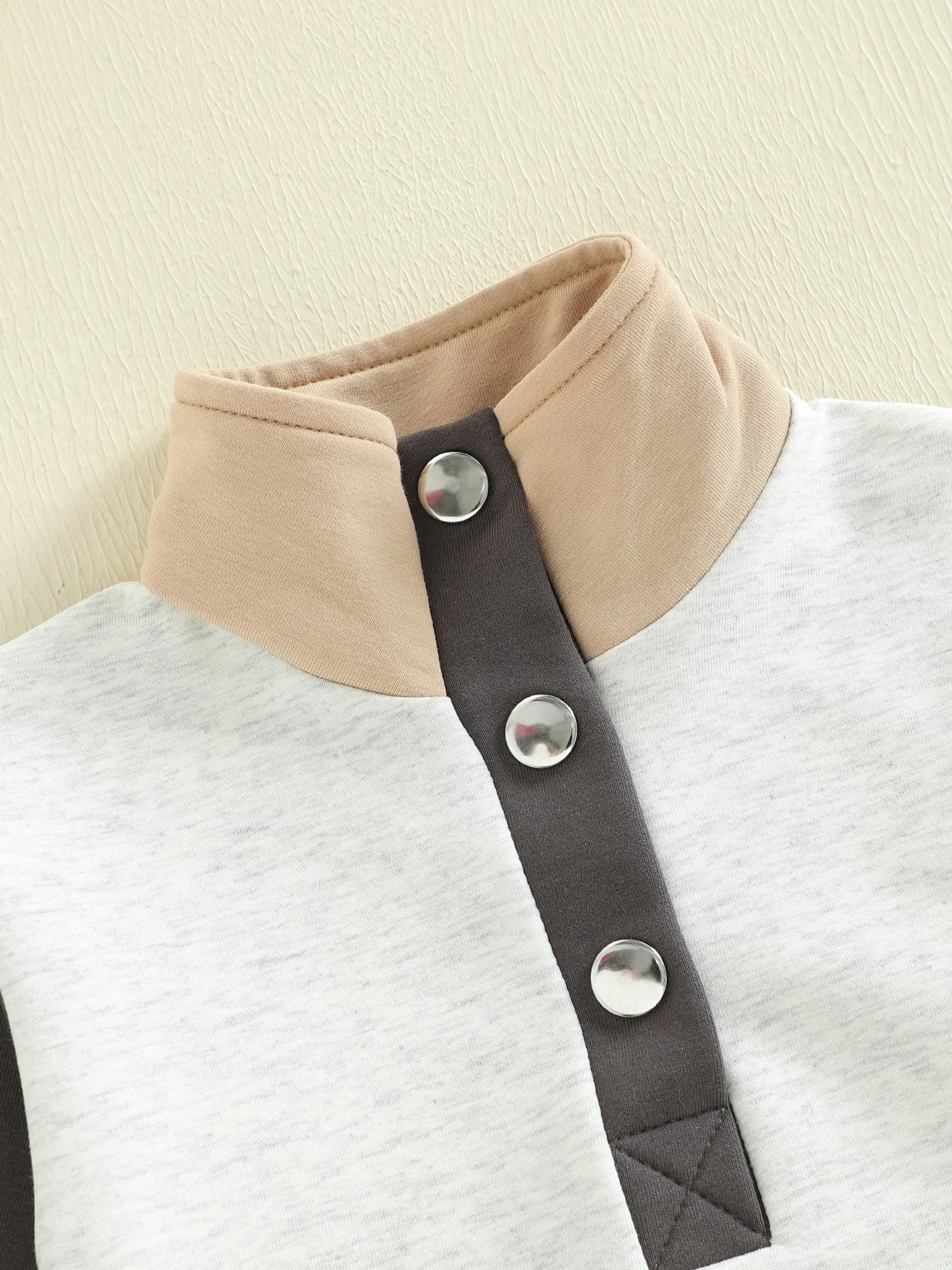 Dress your little one in style with this fashionable colour patchwork outfit set. Featuring a trendy long sleeve pullover with stand collar paired with coordinating pants, this two-piece ensemble combines contemporary design with comfortable wearability perfect for everyday adventures.