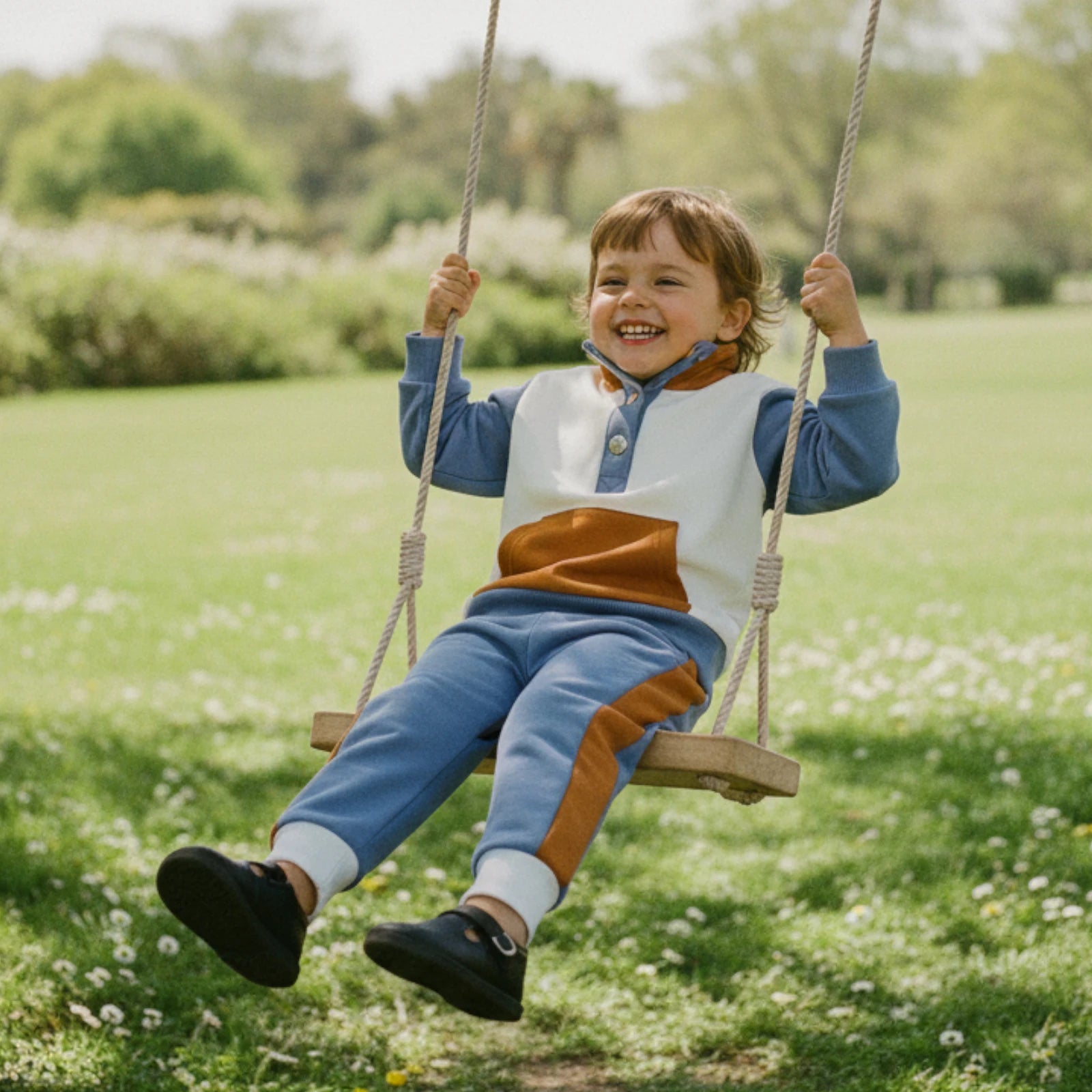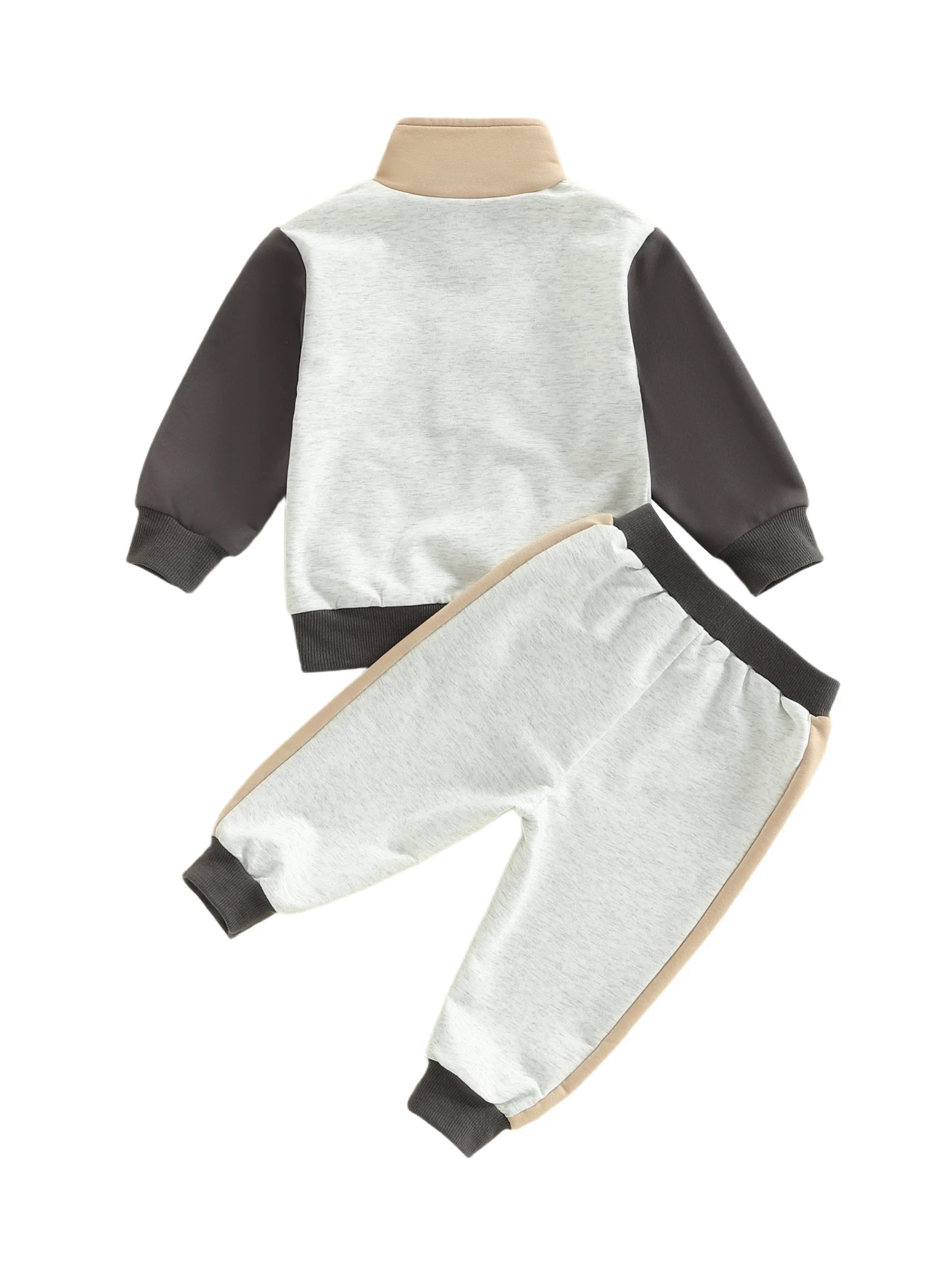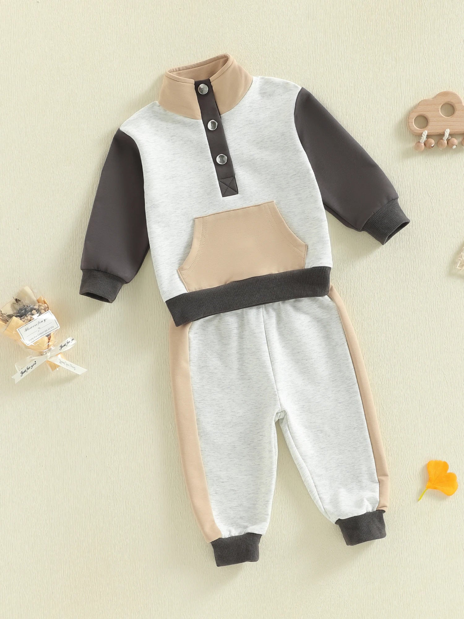 Dress your little one in style with this fashionable colour patchwork outfit set. Featuring a trendy long sleeve pullover with stand collar paired with coordinating pants, this two-piece ensemble combines contemporary design with comfortable wearability perfect for everyday adventures.