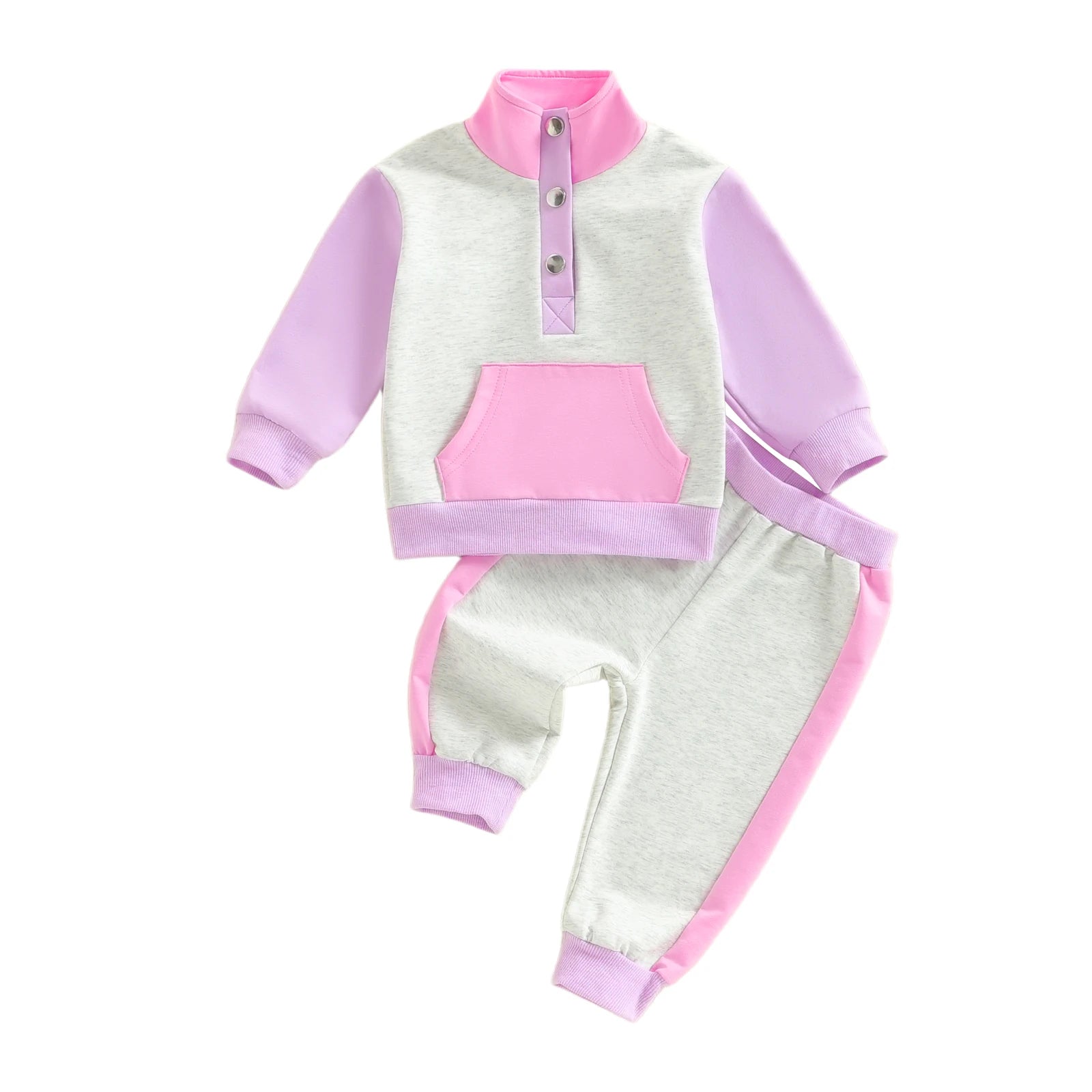 Toddler Kids Boys Girls Colour Patchwork Long Sleeve Stand Collar Pullover and Pants Set
