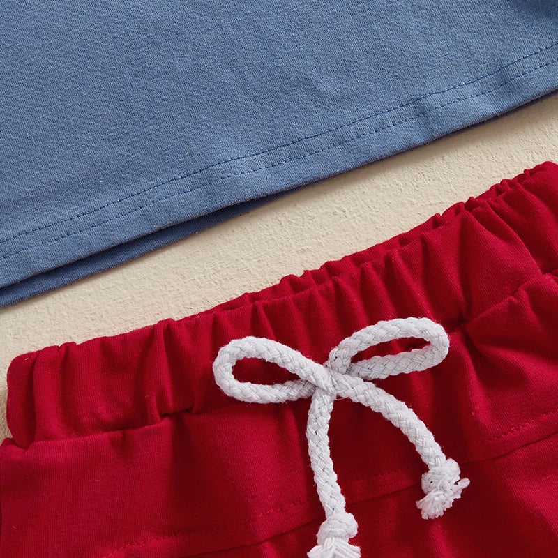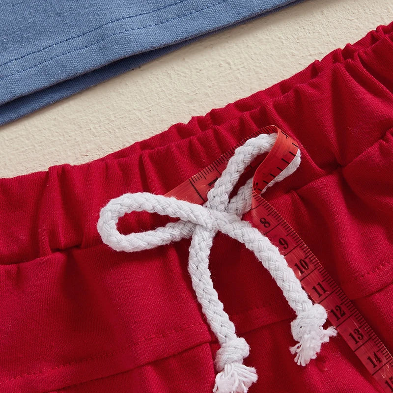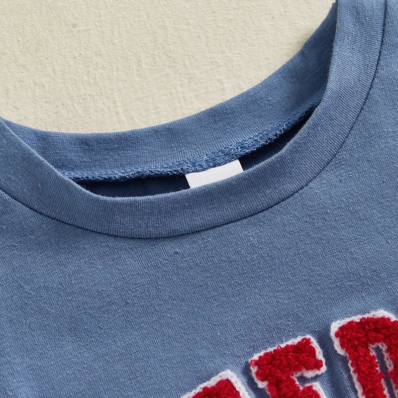 0-4Y Toddler Kids Boys American Flag Clothes Sets Letter Flag Embroidery Crew Neck Short Sleeve T-Shirt and Shorts