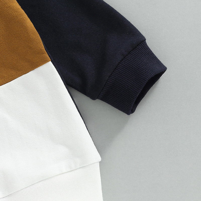 Baby Boys Autumn Outfit Sets Long Sleeve O Neck Patchwork Pullover + Solid Color Drawstring Pants