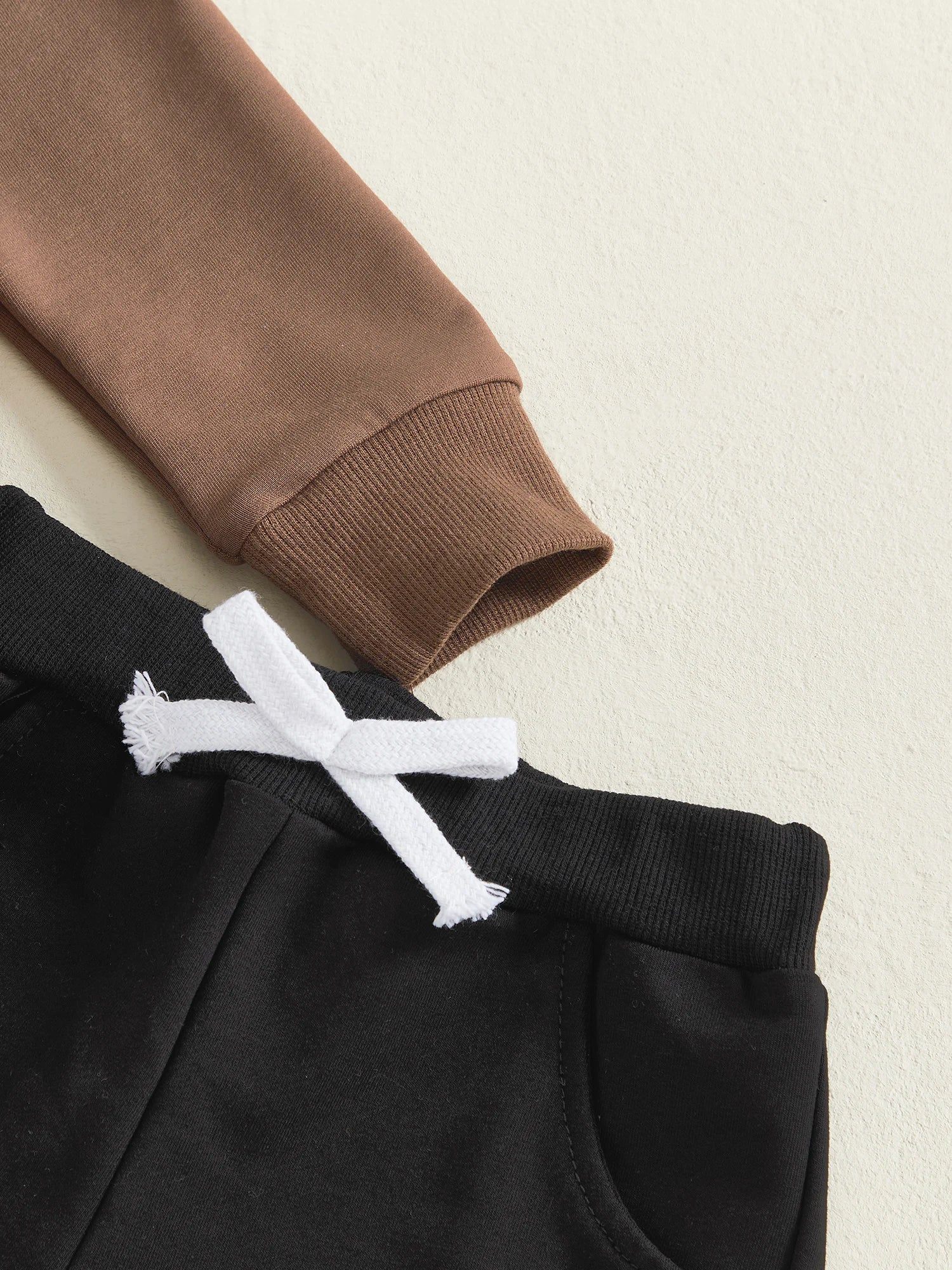 Baby Boys Autumn Winter Clothes Set - Long Sleeve Letters Printed Pullover Sweatshirt & Solid Color Pants