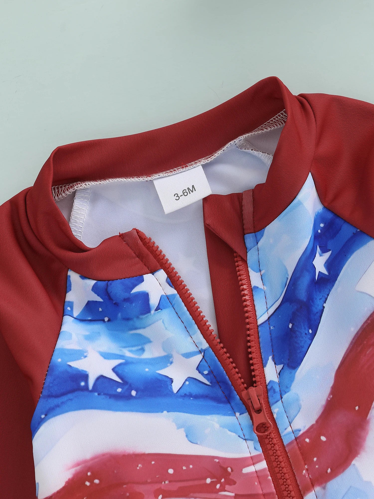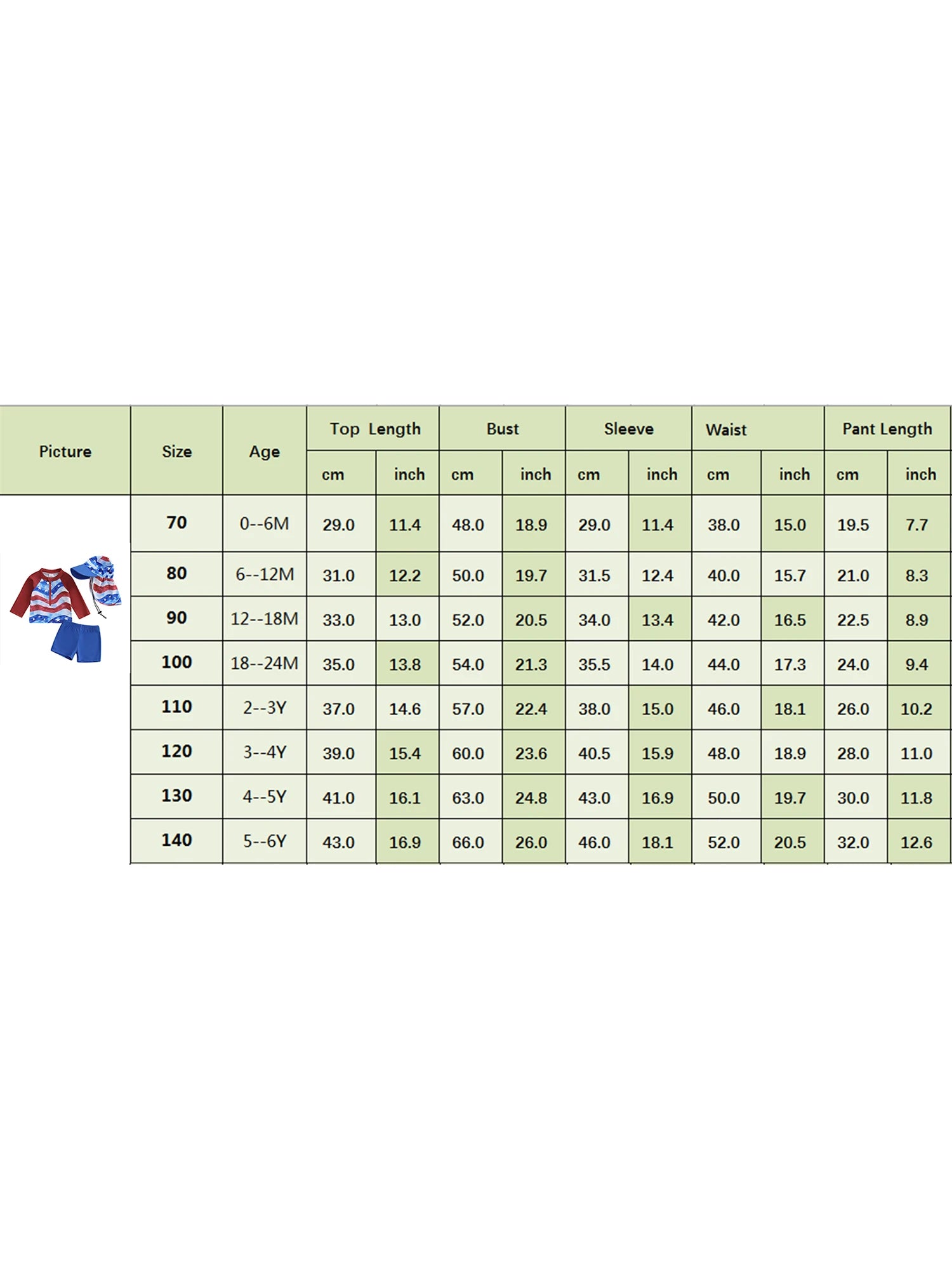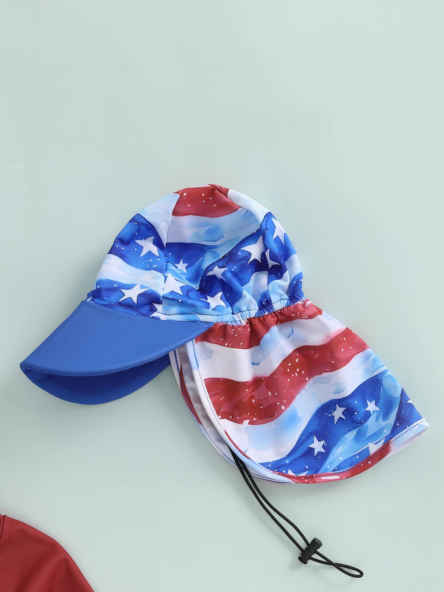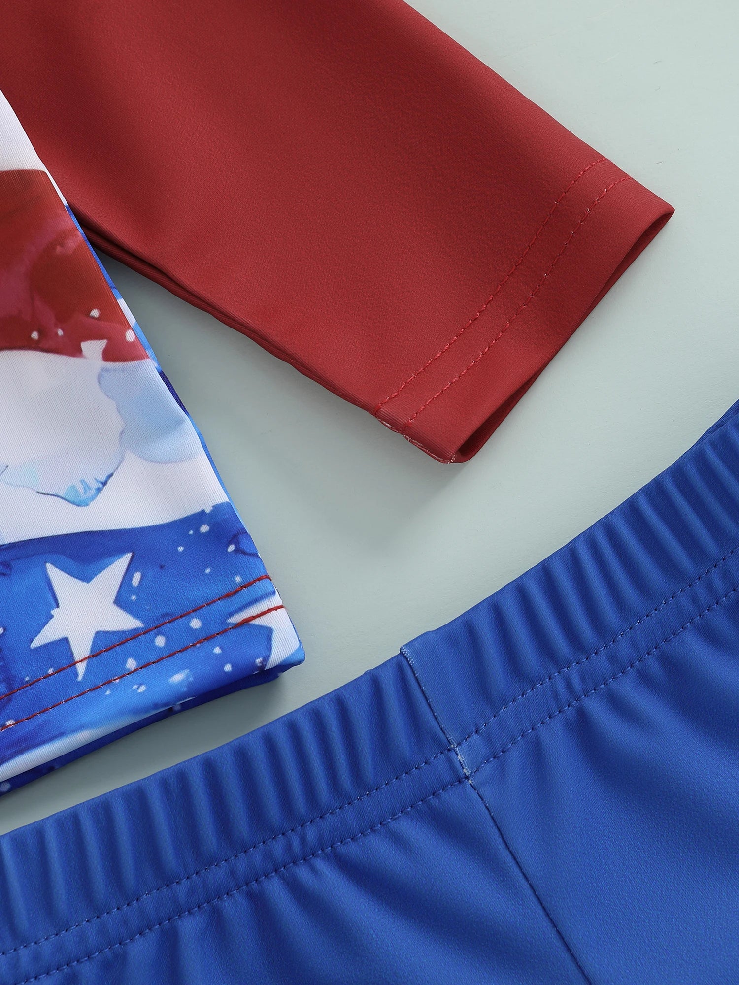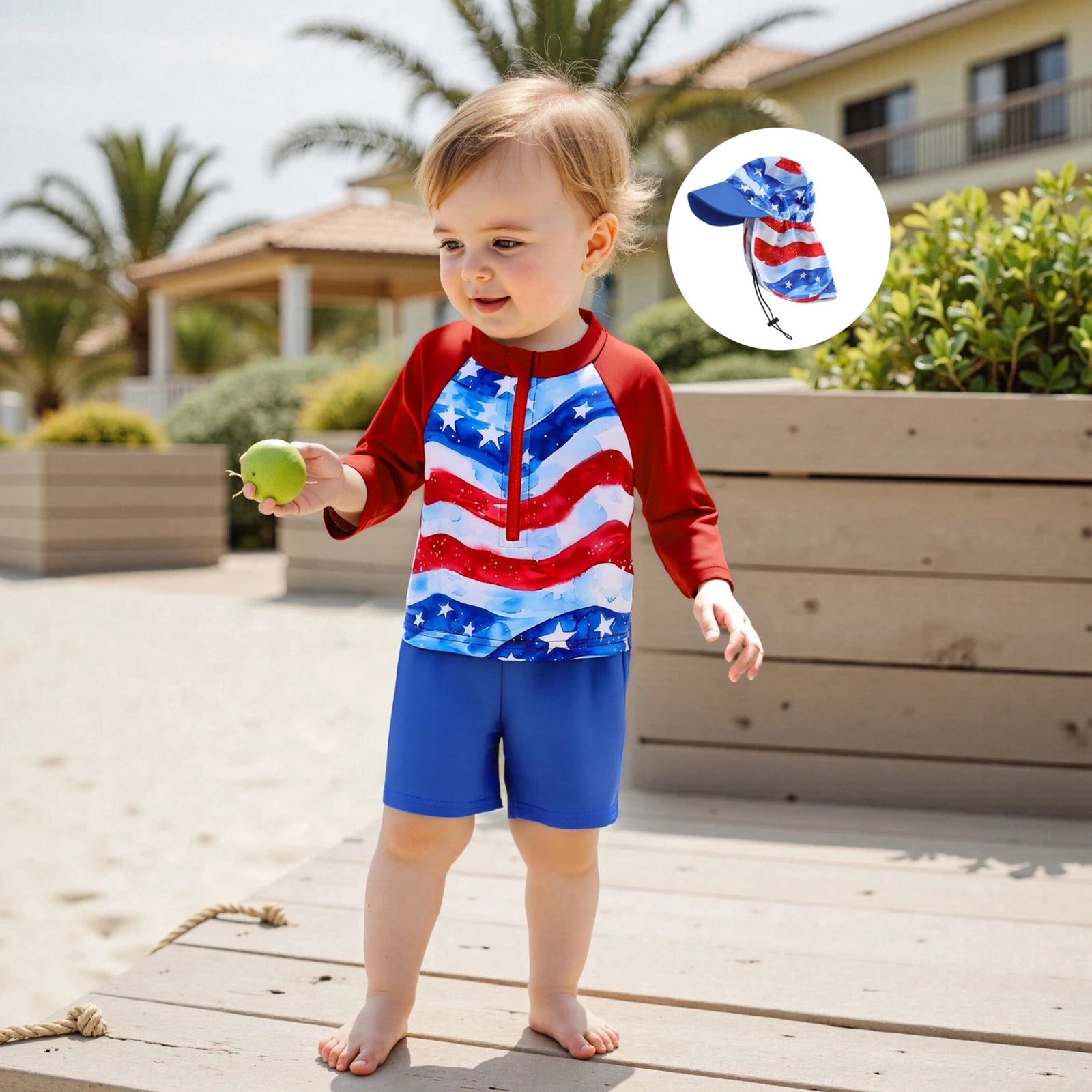 0-5Y American Flag Kids Boys 4th Swimwear Clothes Sets Long Sleeve Stars Print T-shirt with Shorts and Hat