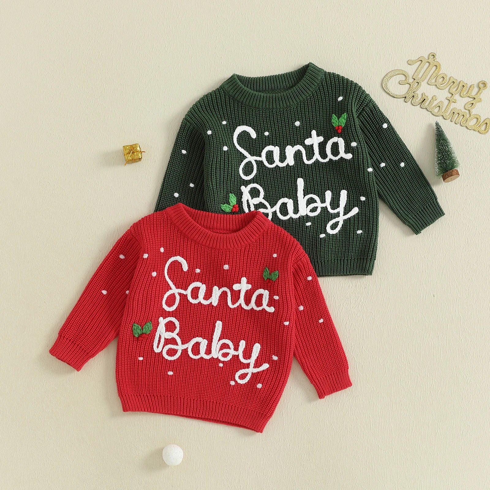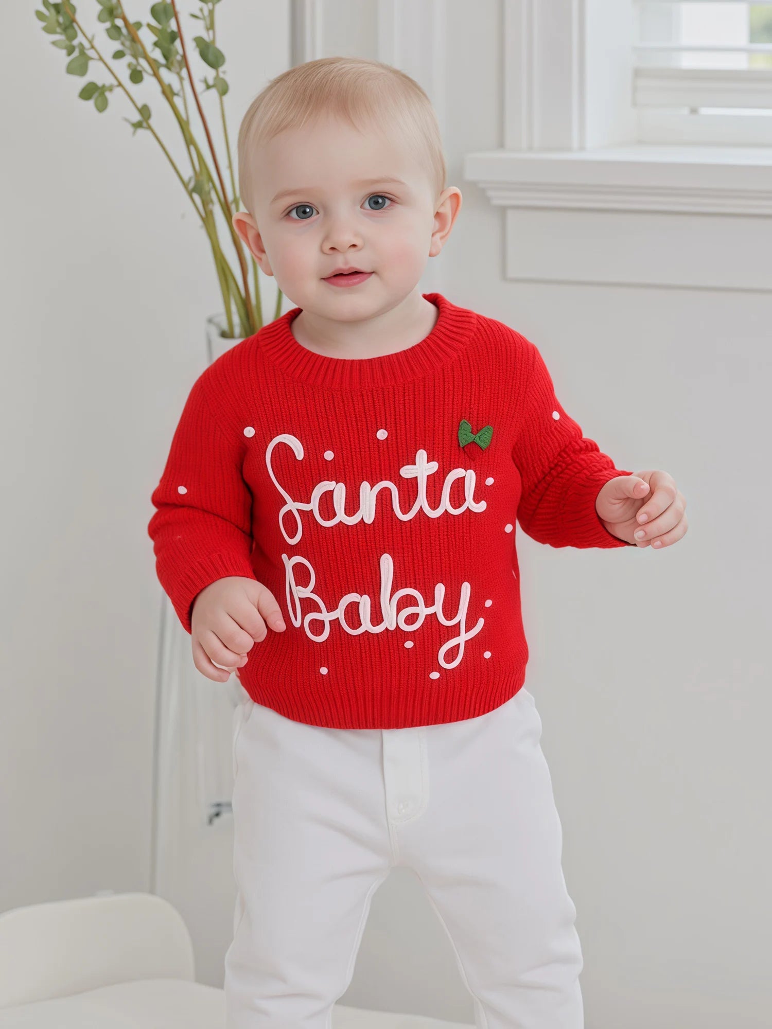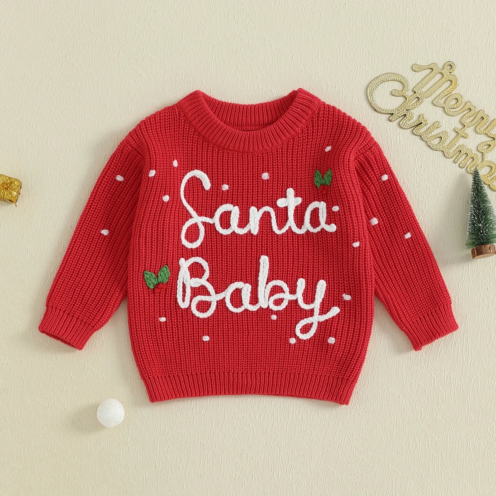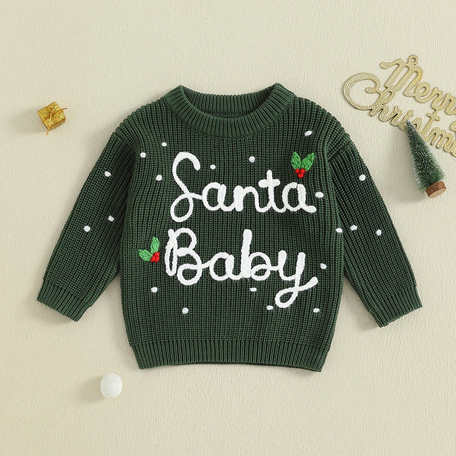 0-5Y Kids Boys Girls Christmas Sweater Letter Embroidered Crew Neck Long Sleeve Pullover Knit Top