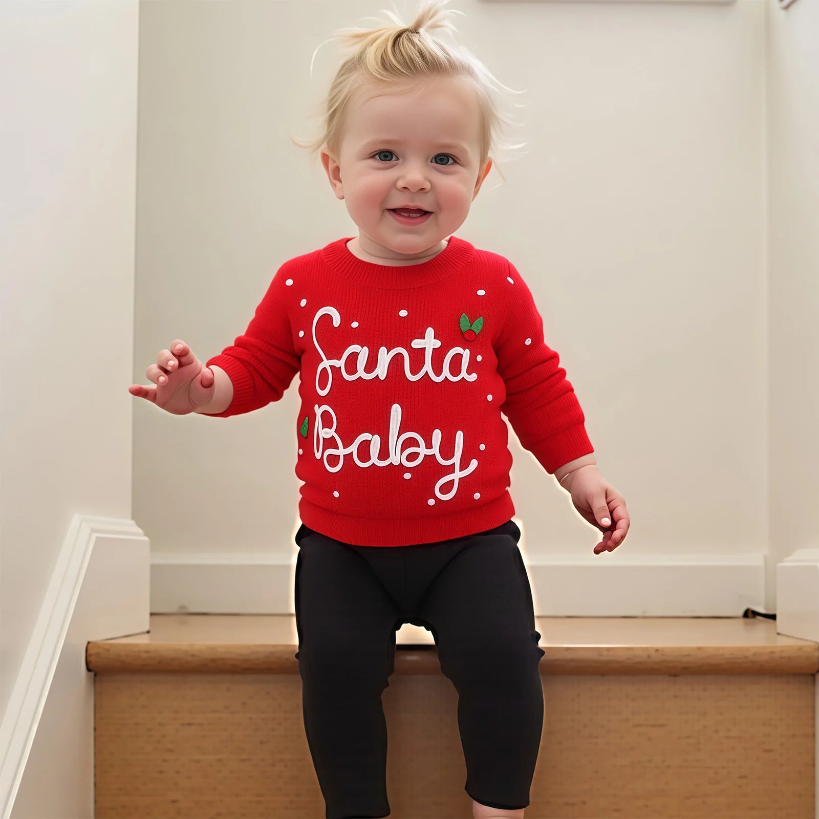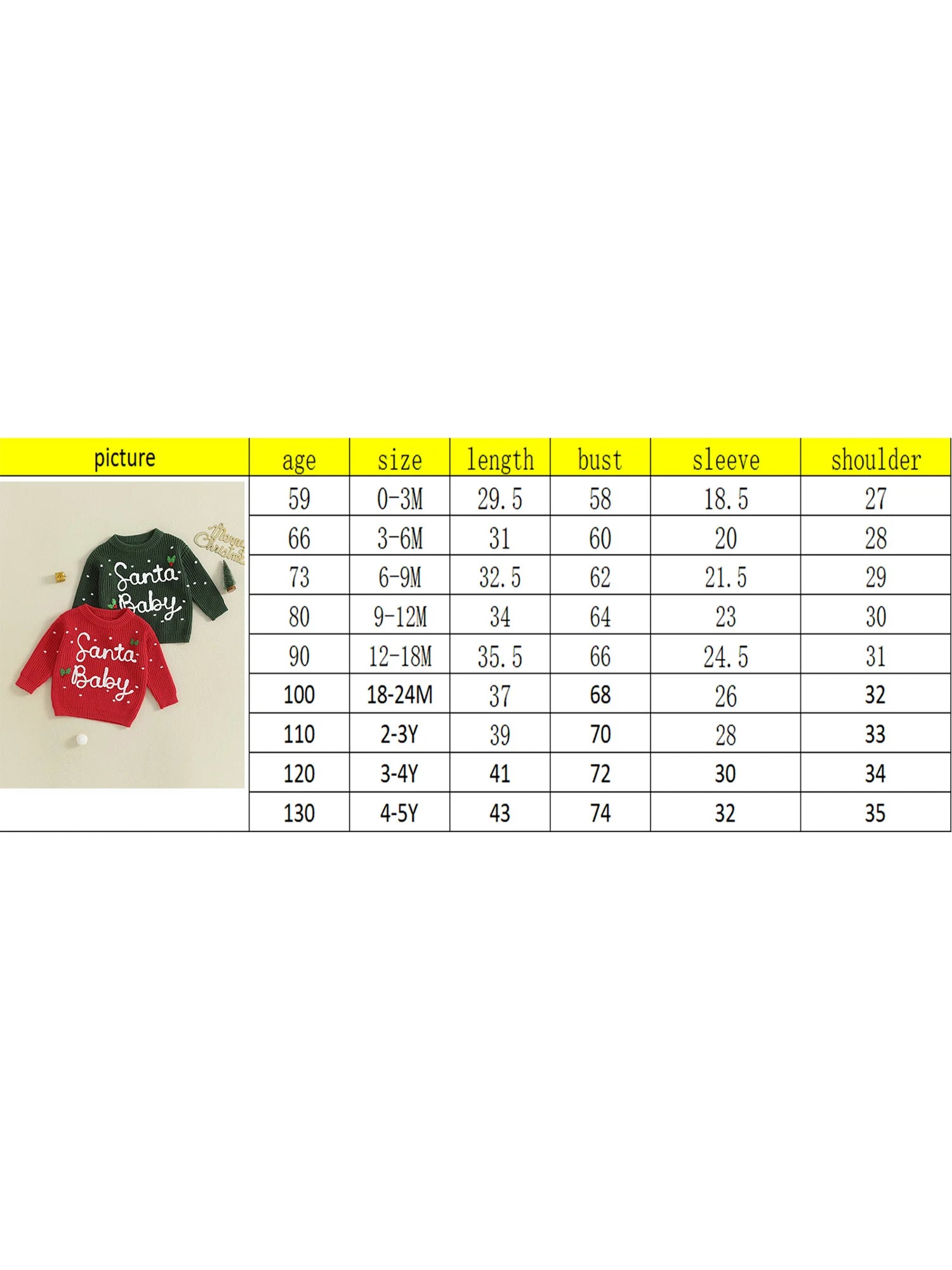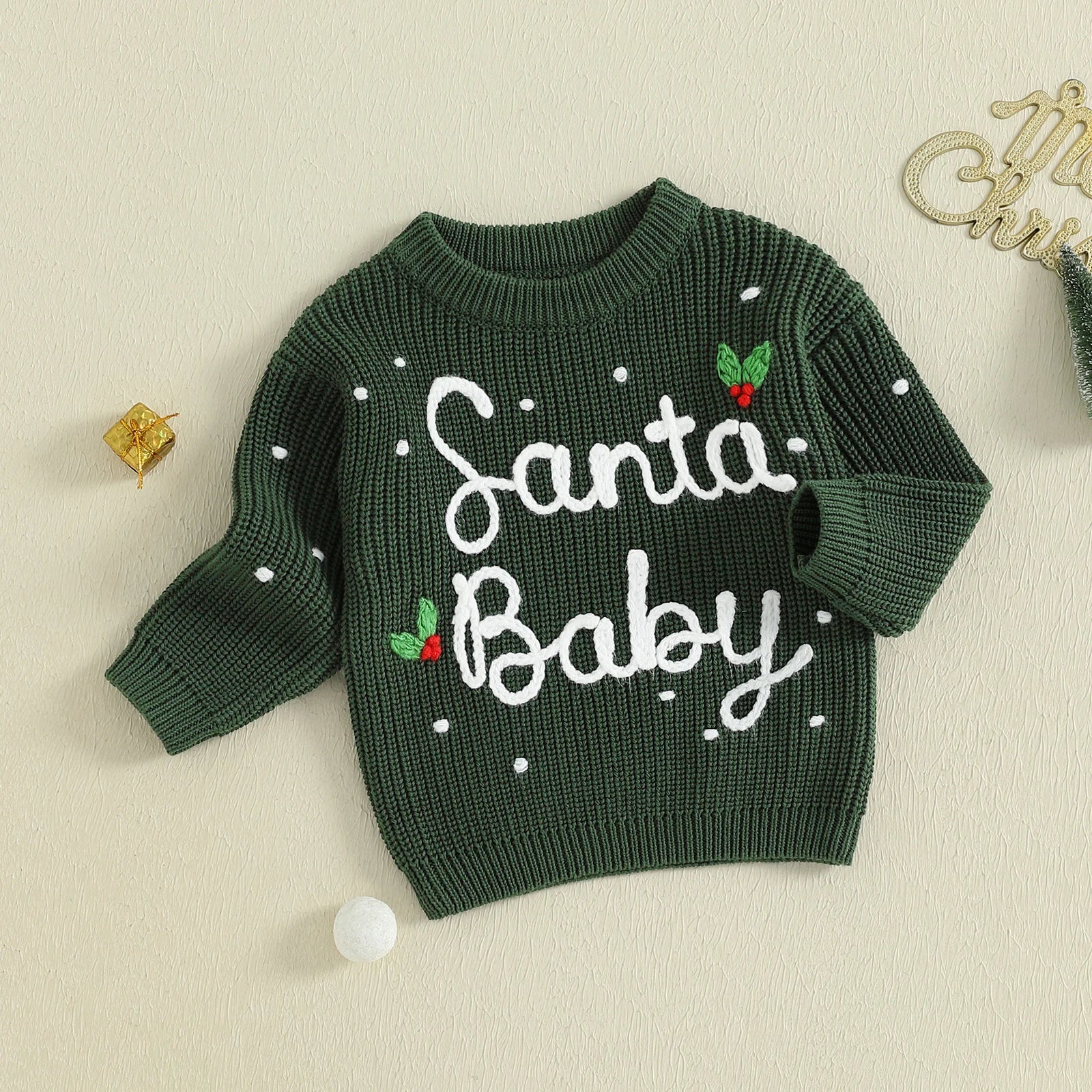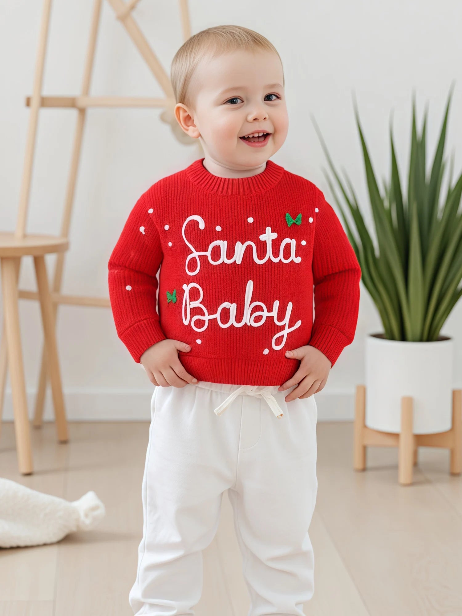 0-5Y Kids Boys Girls Christmas Sweater Letter Embroidered Crew Neck Long Sleeve Pullover Knit Top
