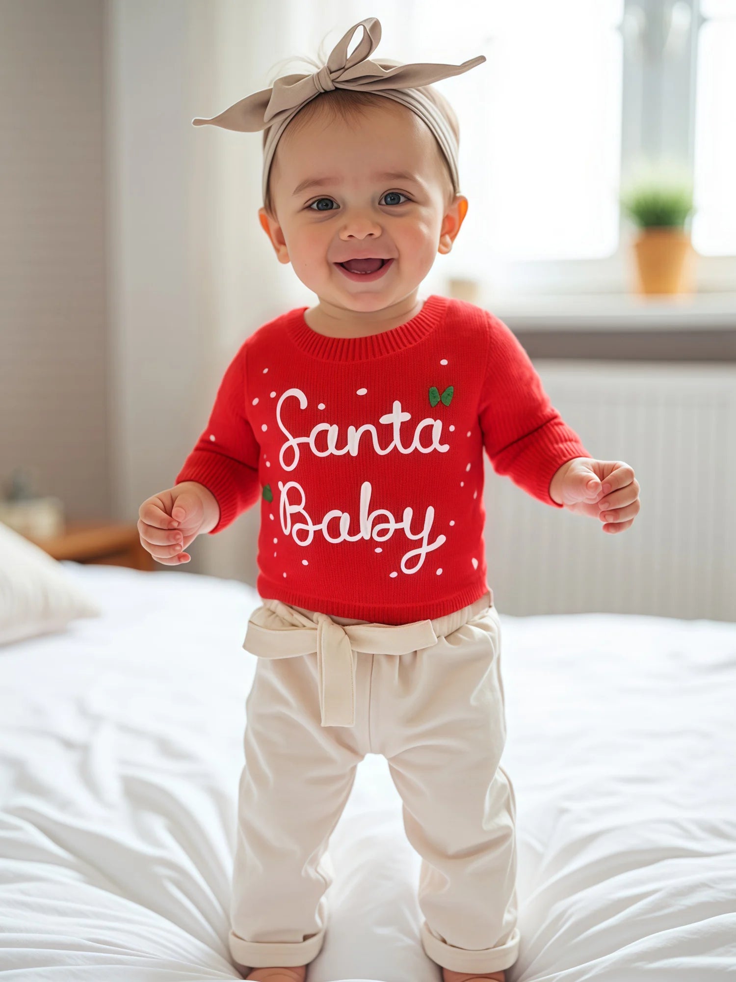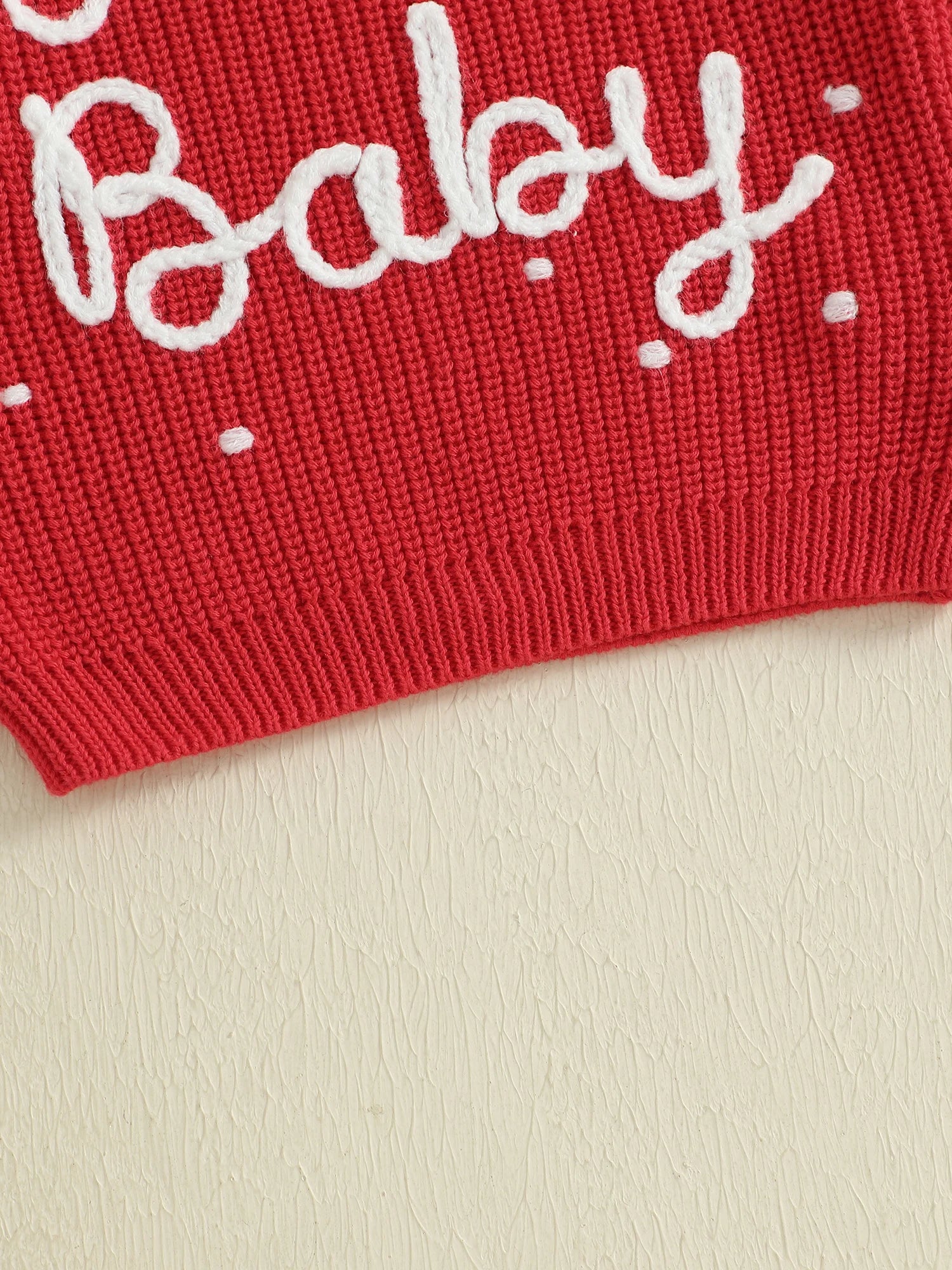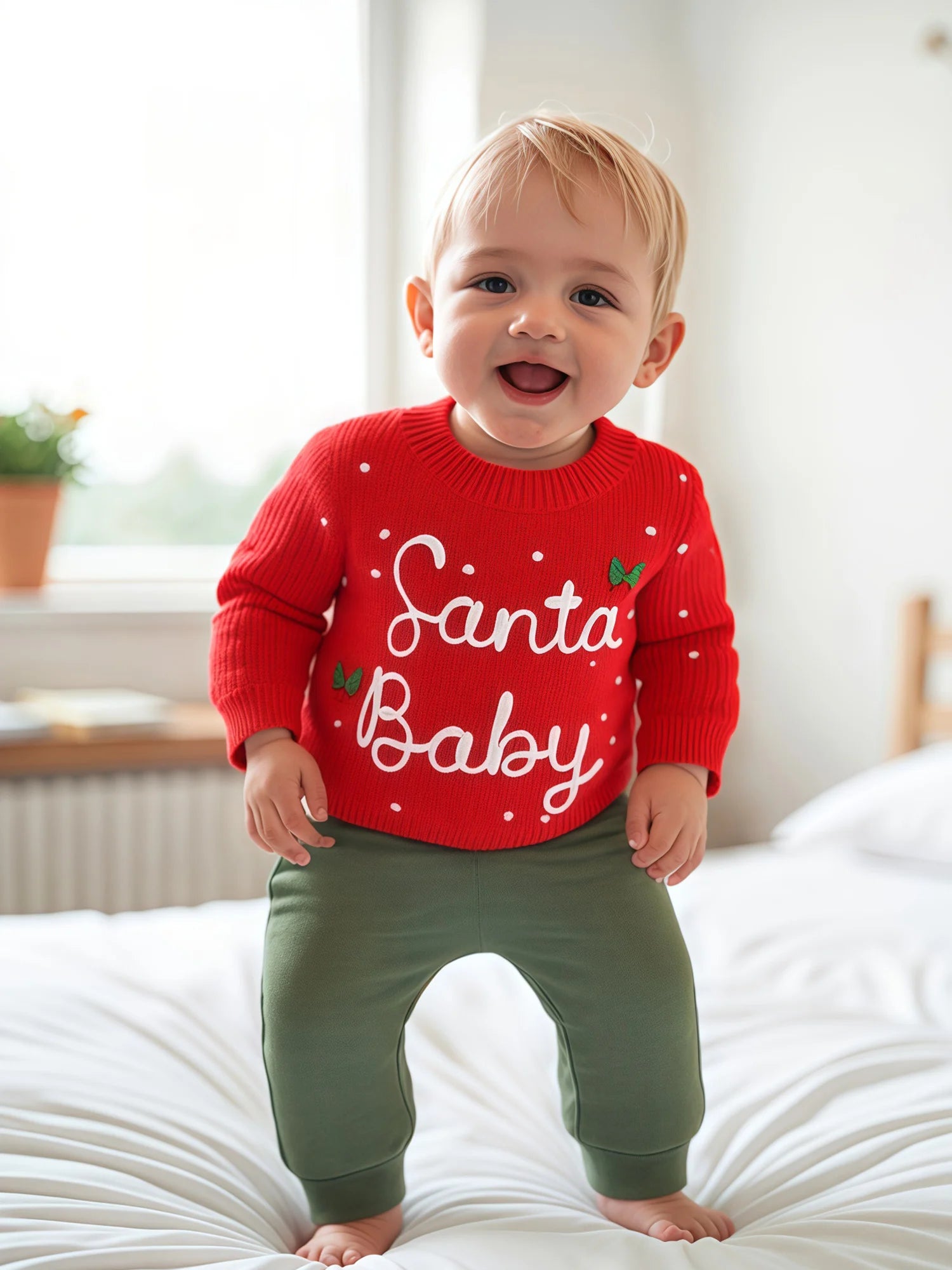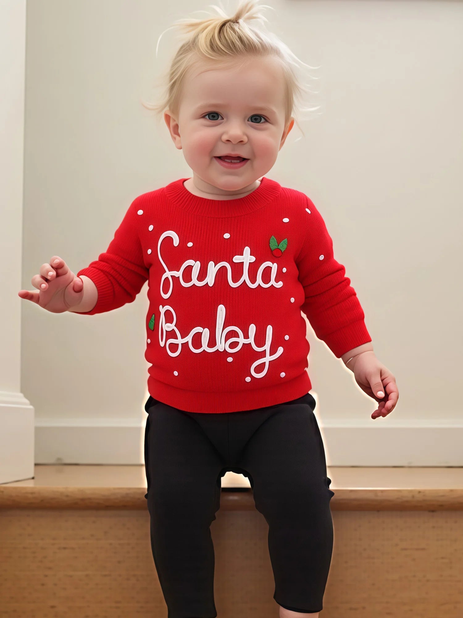 0-5Y Kids Boys Girls Christmas Sweater Letter Embroidered Crew Neck Long Sleeve Pullover Knit Top