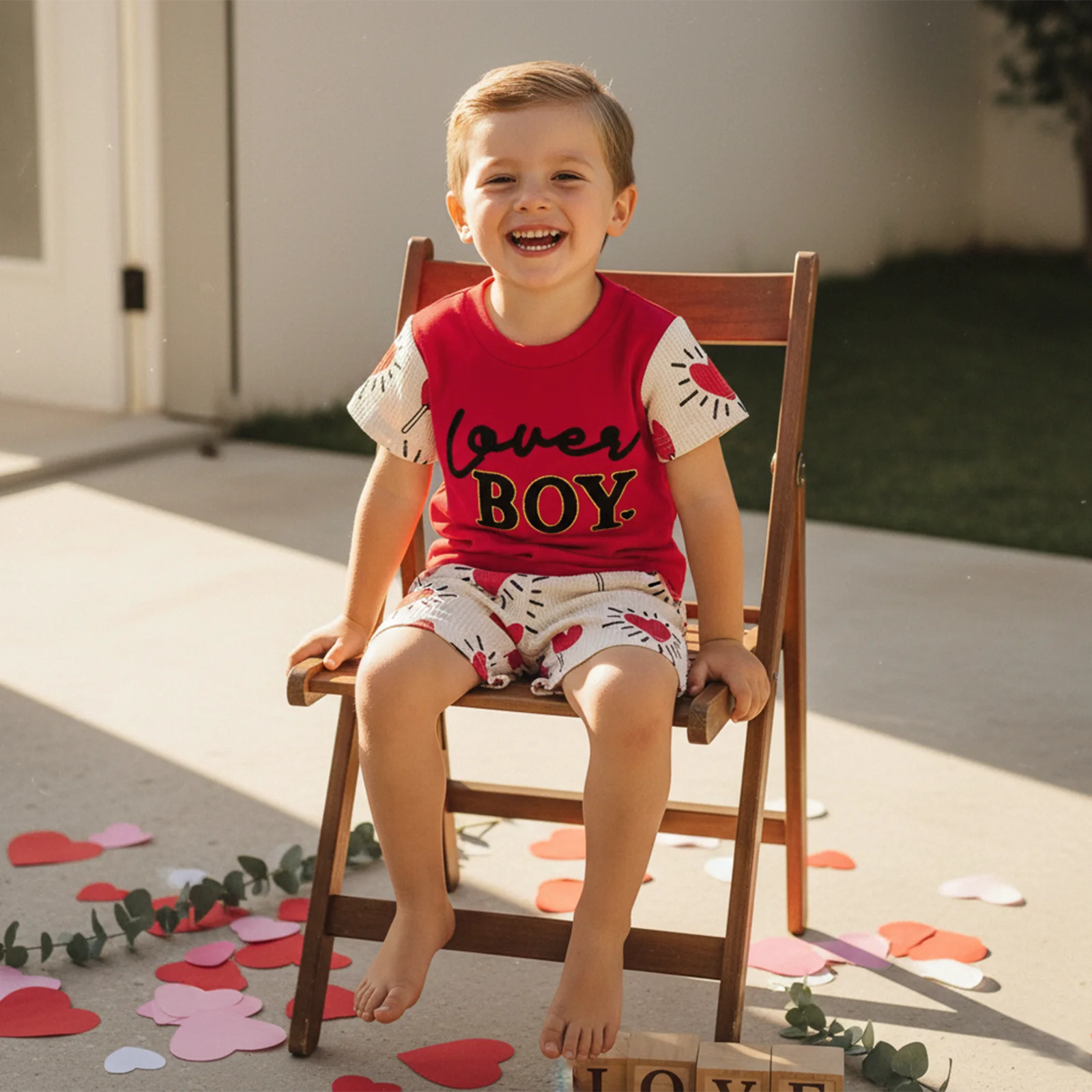 Make Valentine's Day extra special with this sweet outfit set that combines festive fun with everyday comfort for your little boy.