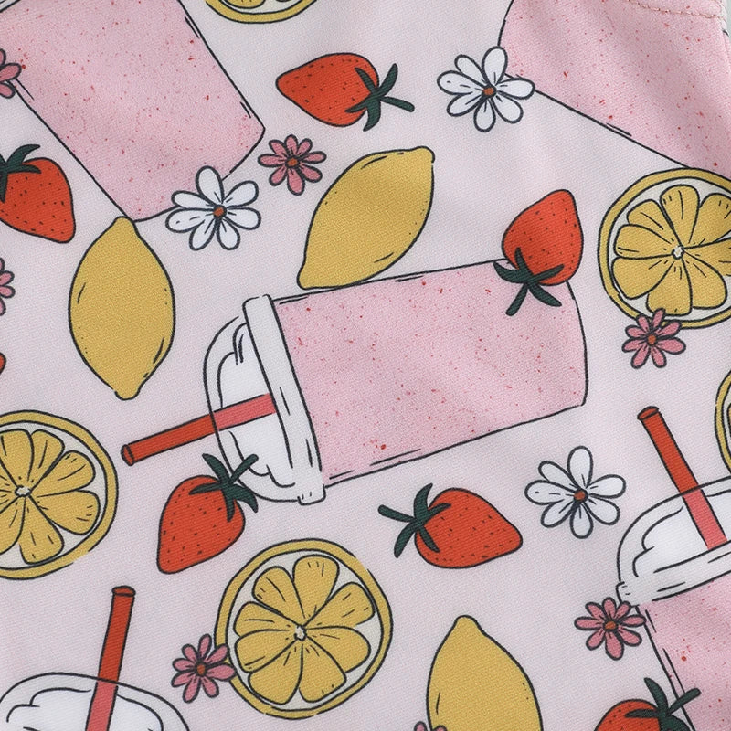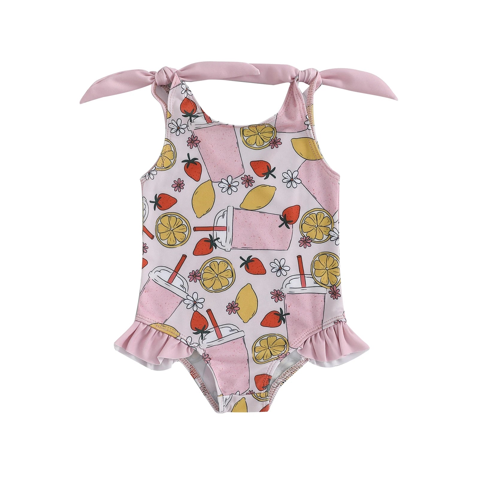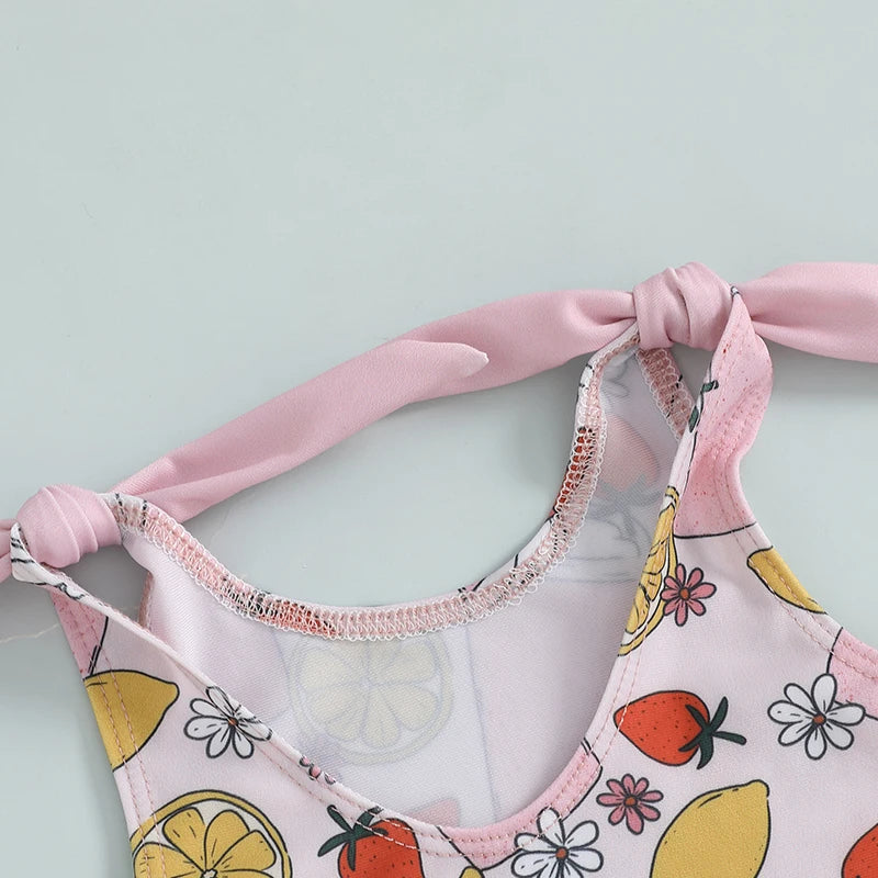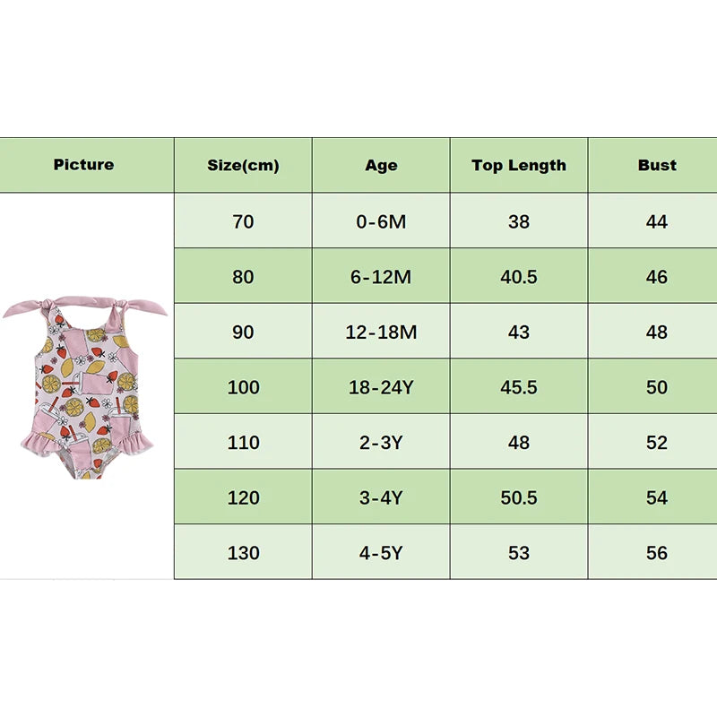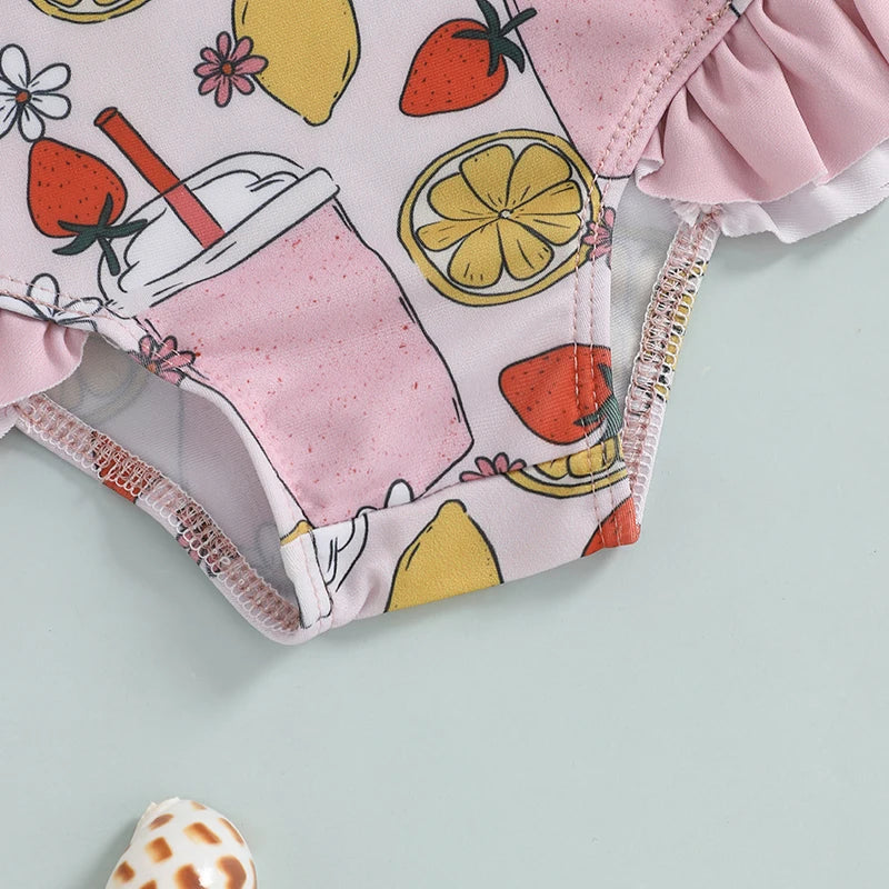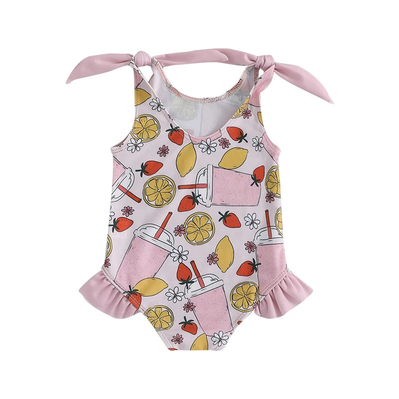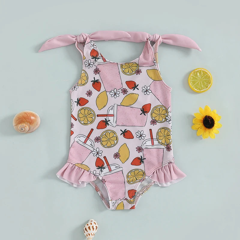 0-5Y Toddler Kids Girls Summer Swimsuits Cartoon Ice Cream Print Tie up Strap Ruffled Swimwear