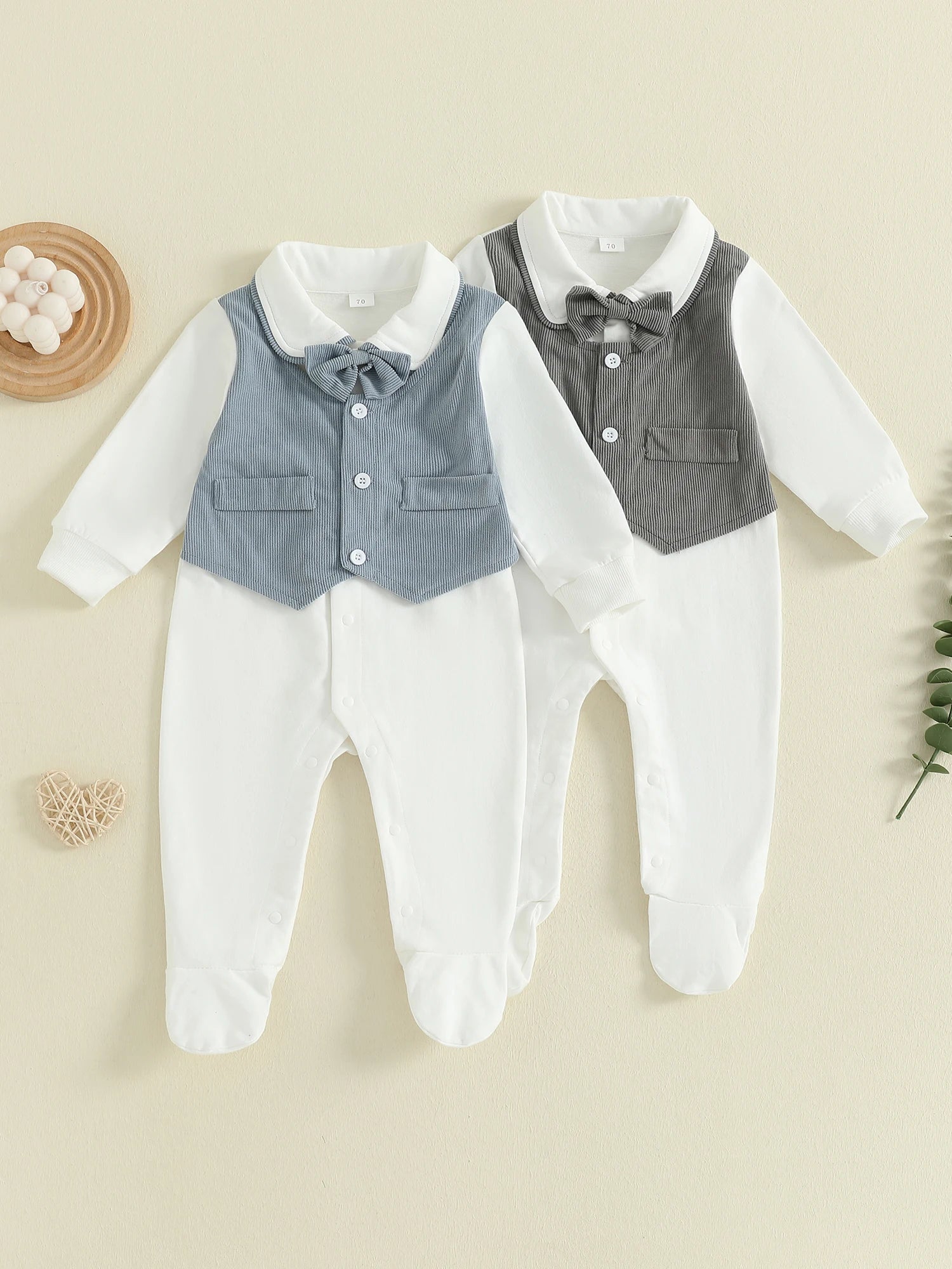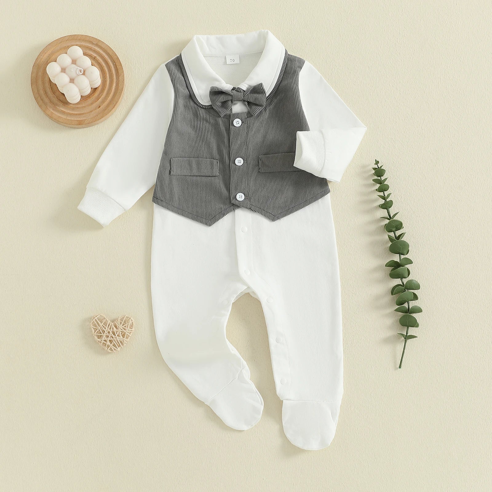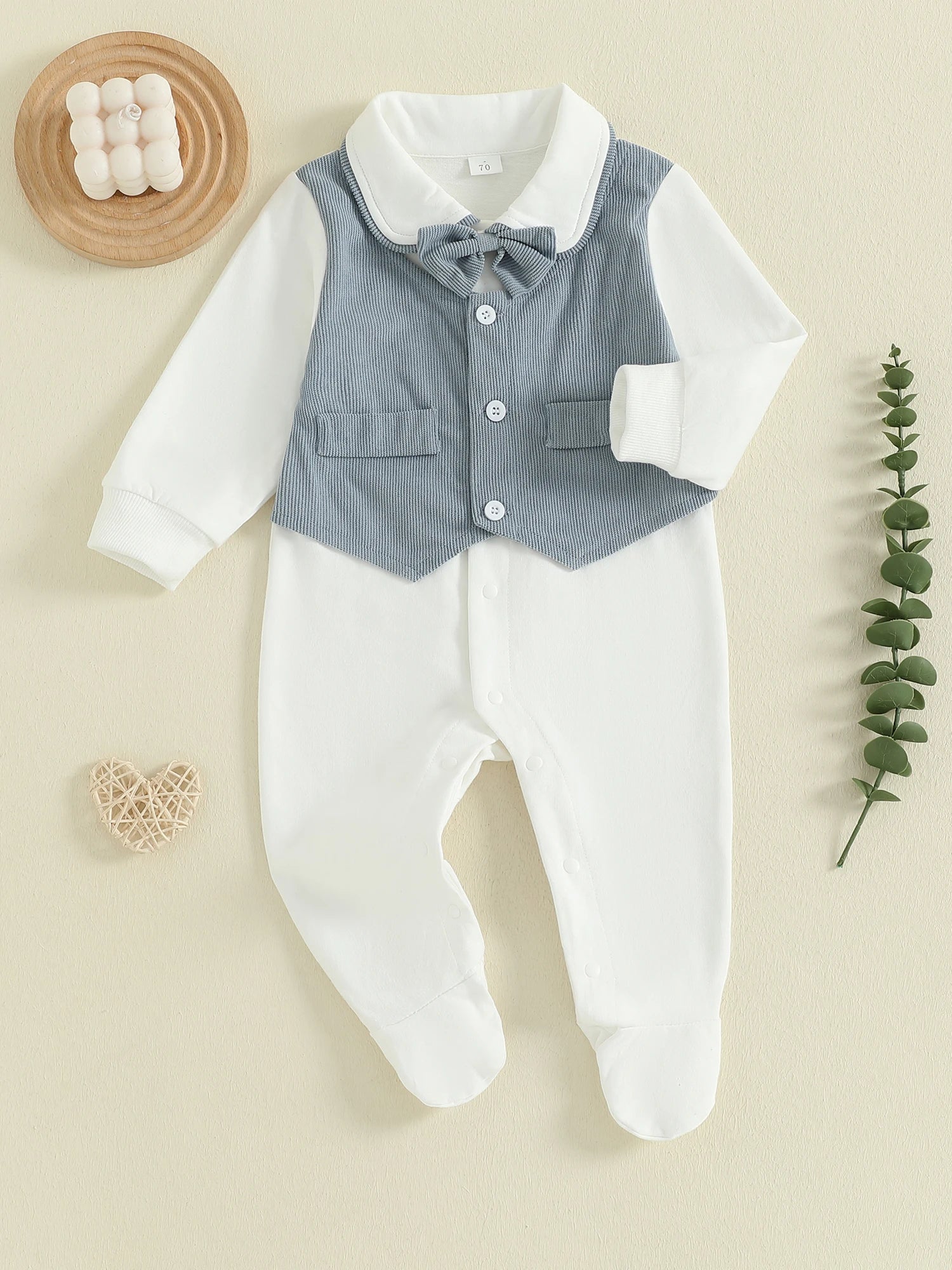 Gentleman Newborn Baby Romper - Footed Jumpsuit with Lapel
