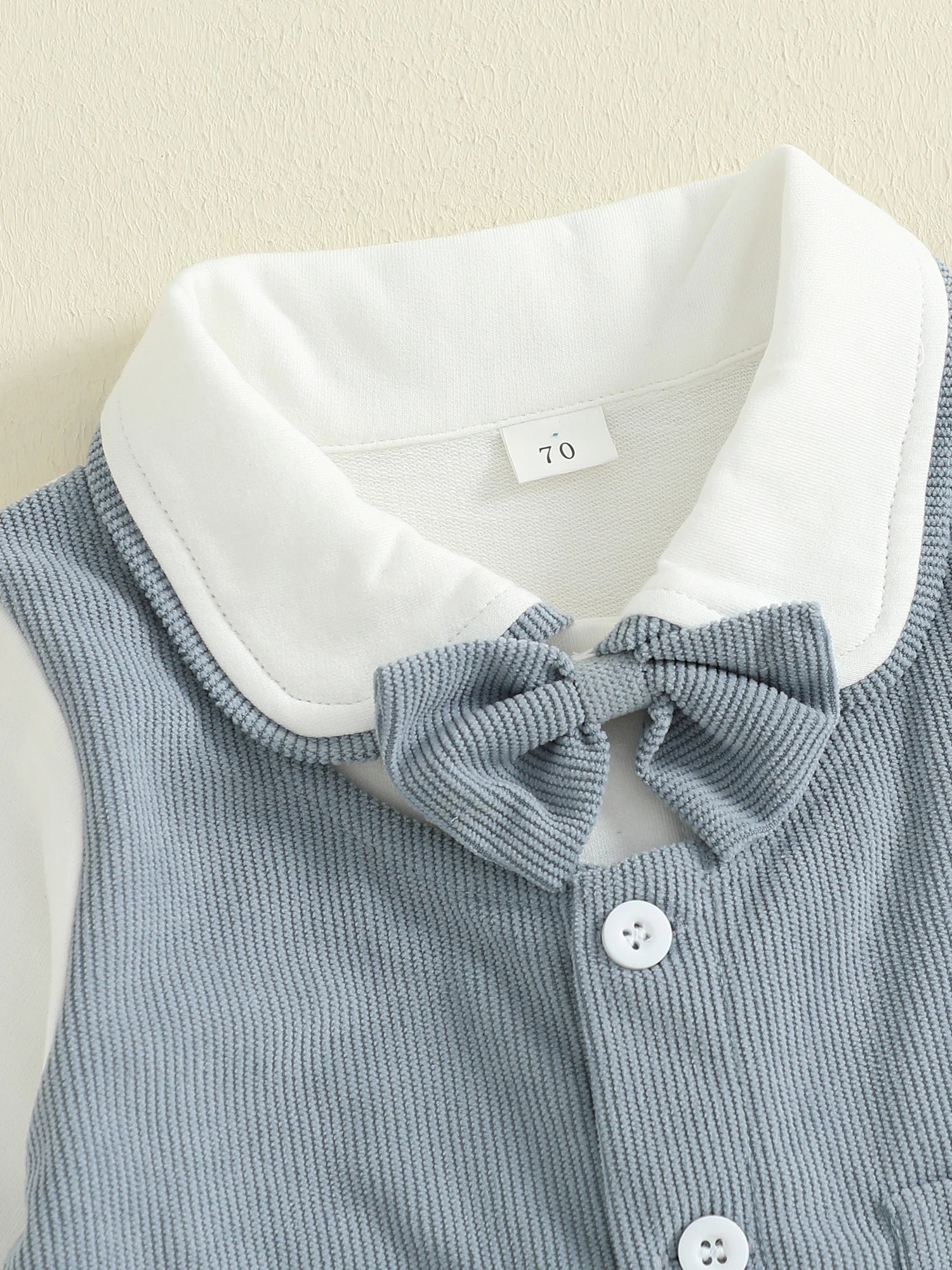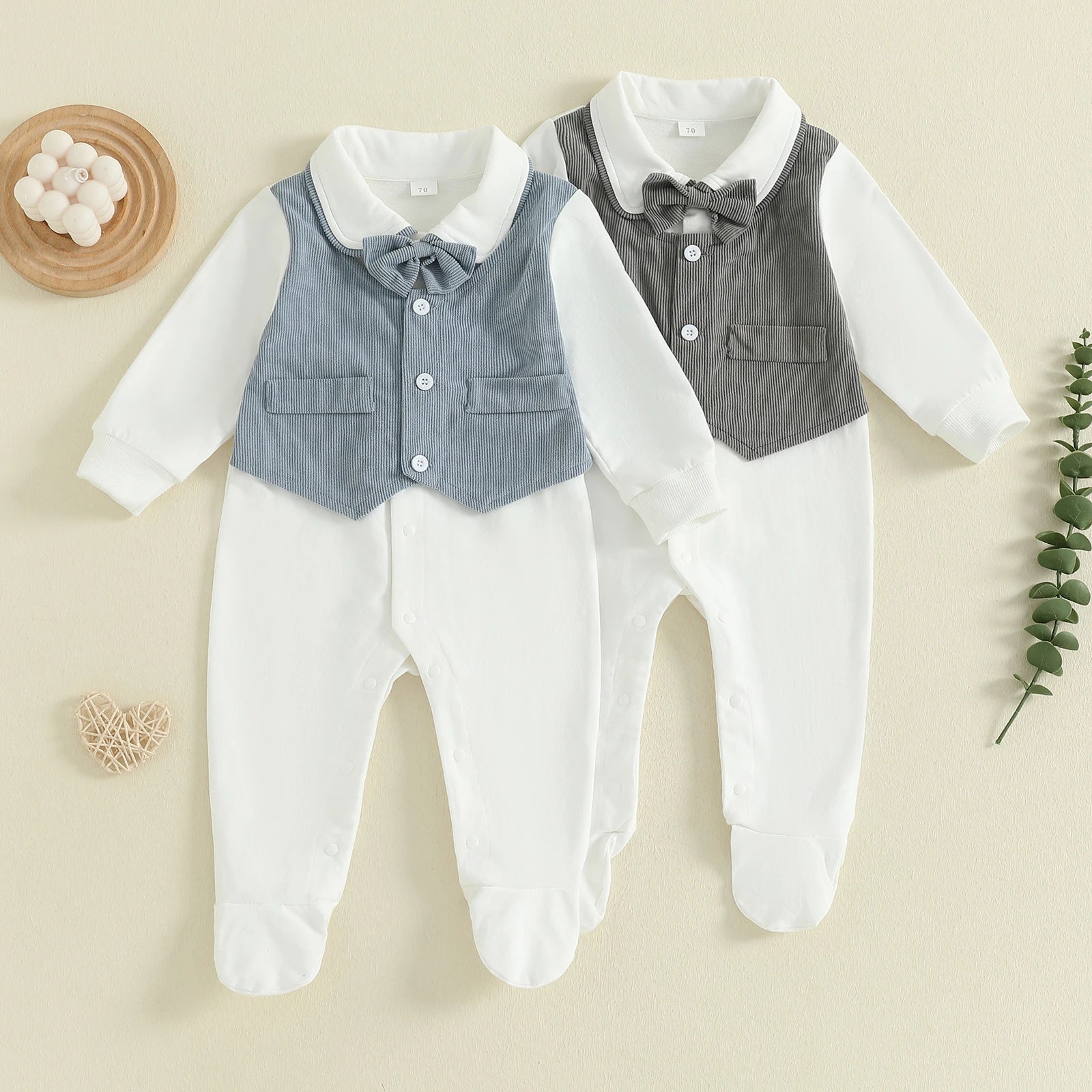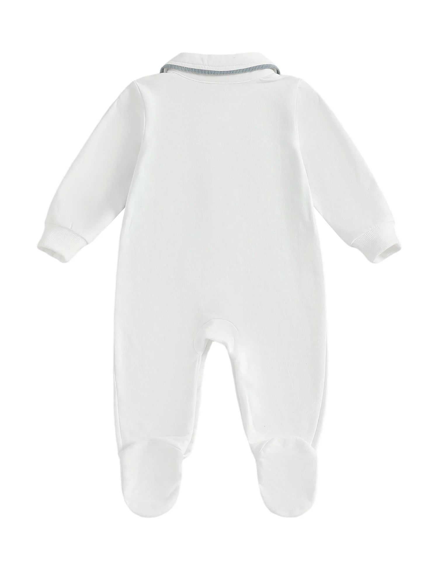Gentleman Newborn Baby Romper - Footed Jumpsuit with Lapel