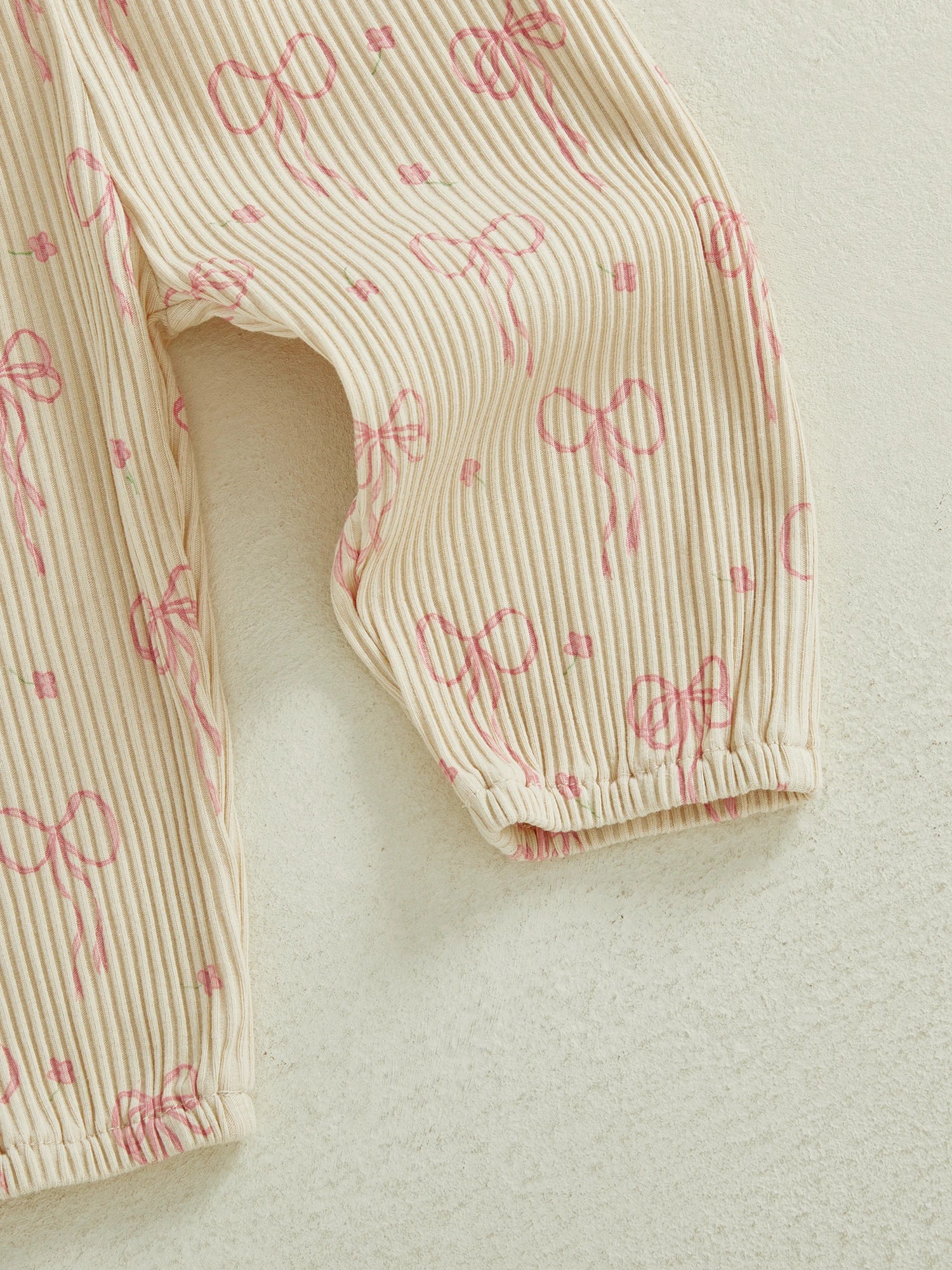 - Long sleeve romper with letter bow embroidery