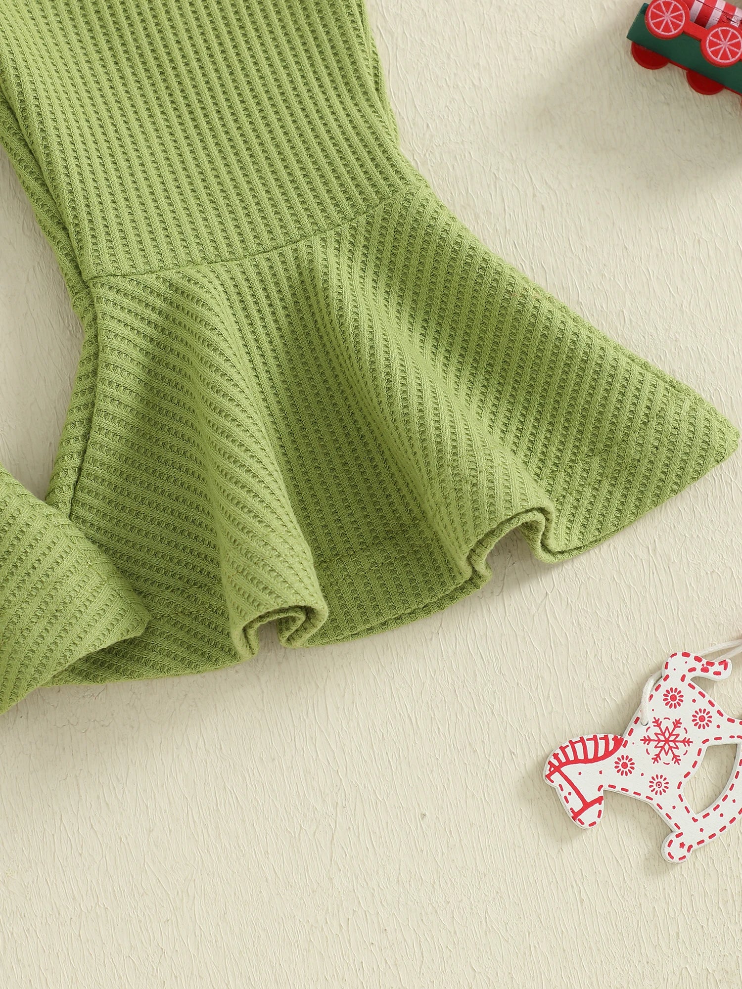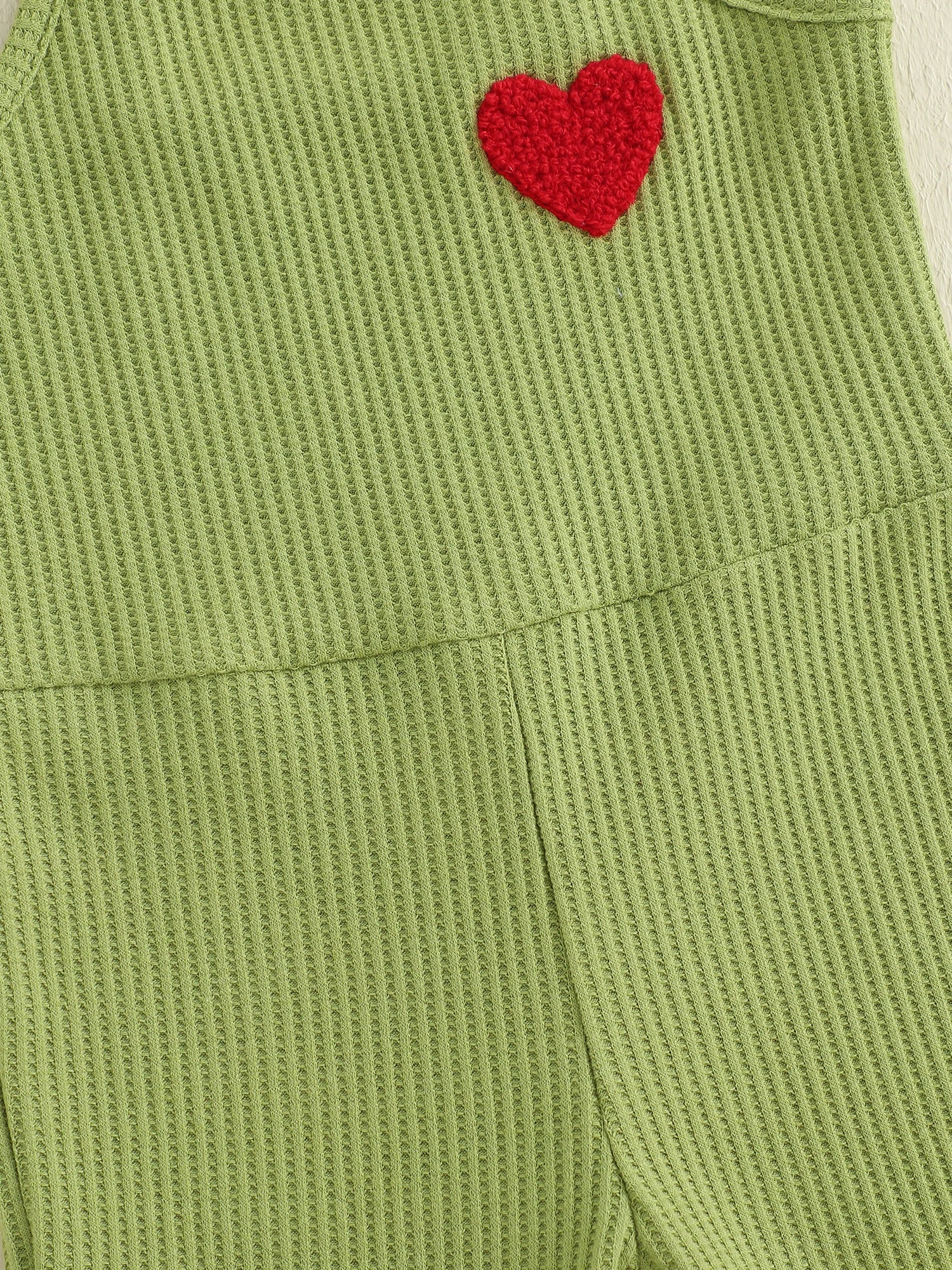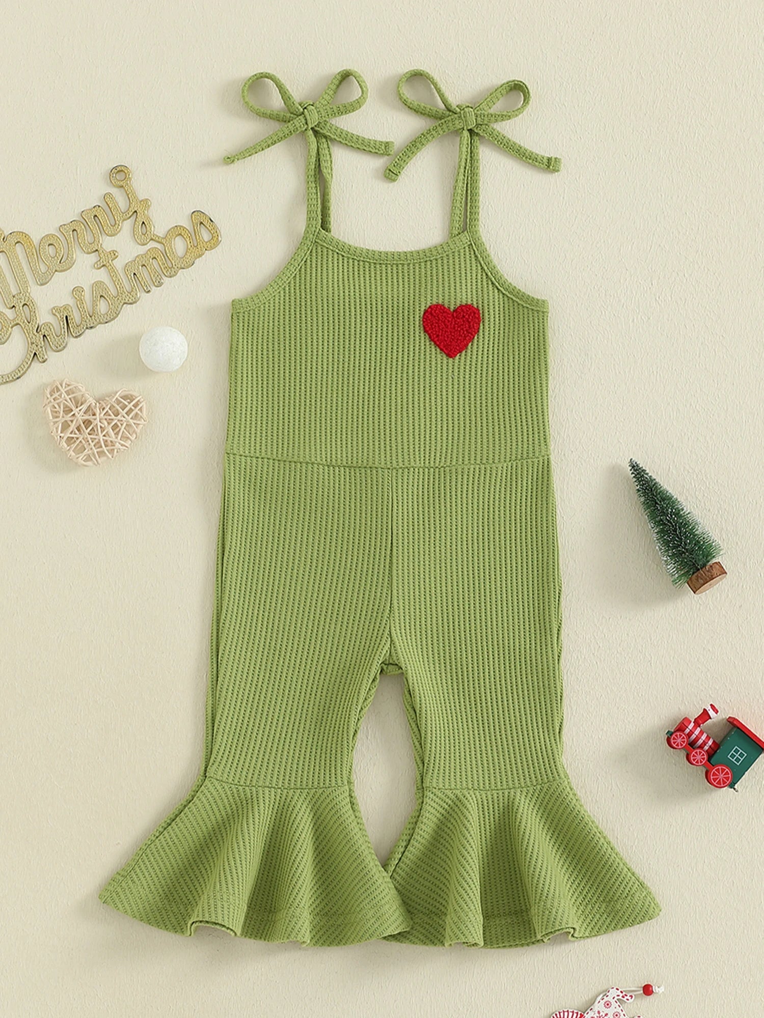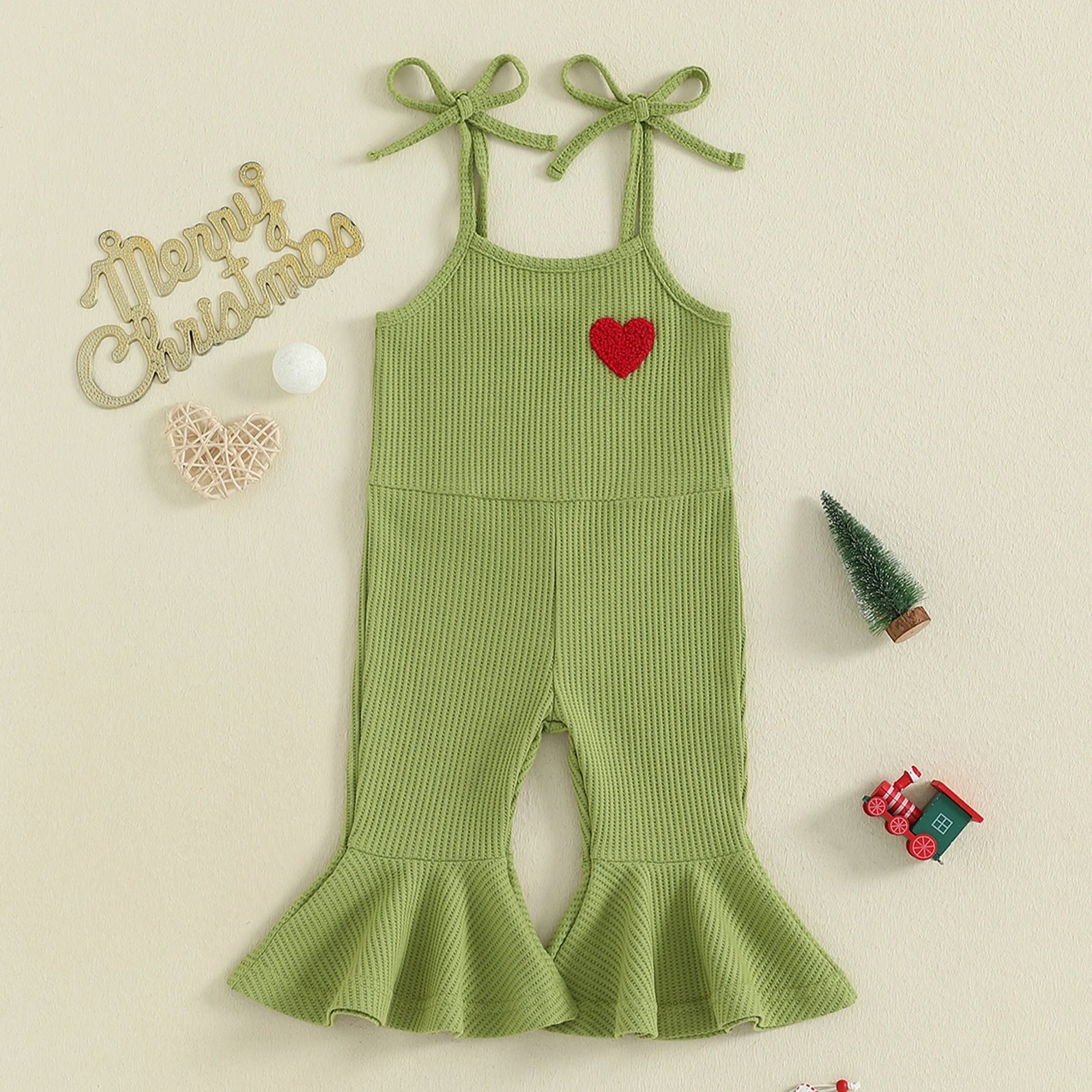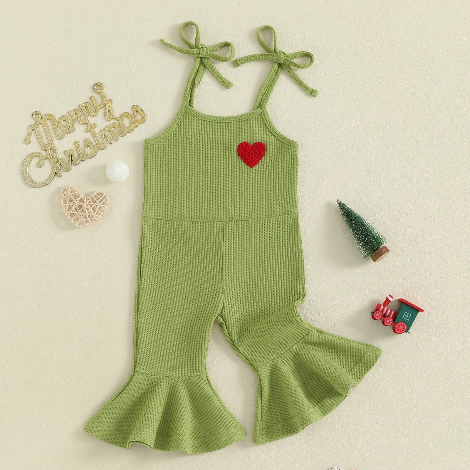 Toddler Girls' Christmas Flare Pants Romper - Heart Embroidery Sleeveless Bell Bottom Overalls