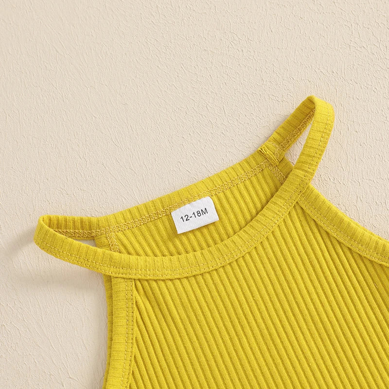 1-5Y Kids Girl's Summer Clothes Set Sleeveless Ribbed Halter Cami Top and Shorts with Belt