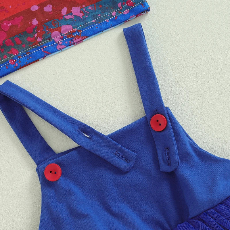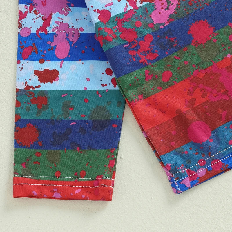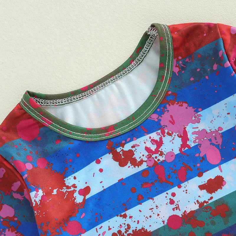 Create the perfect Halloween look with this adorable 2-piece outfit set. Featuring a playful stripe print long sleeve top paired with a charming lace tulle suspender skirt, this ensemble is perfect for Halloween parties, trick-or-treating, and festive celebrations.