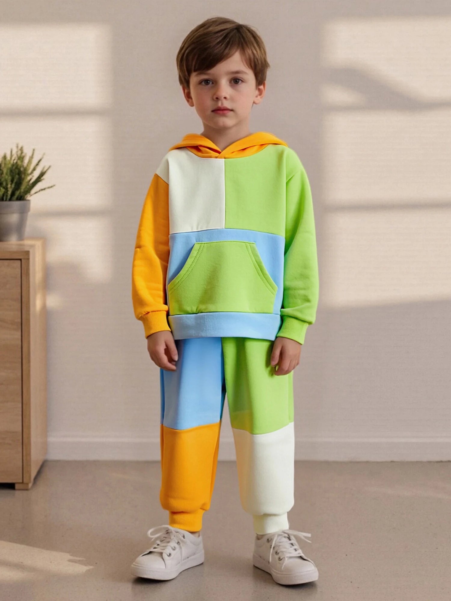 Casual Kids' Patchwork Hoodie and Pants Set