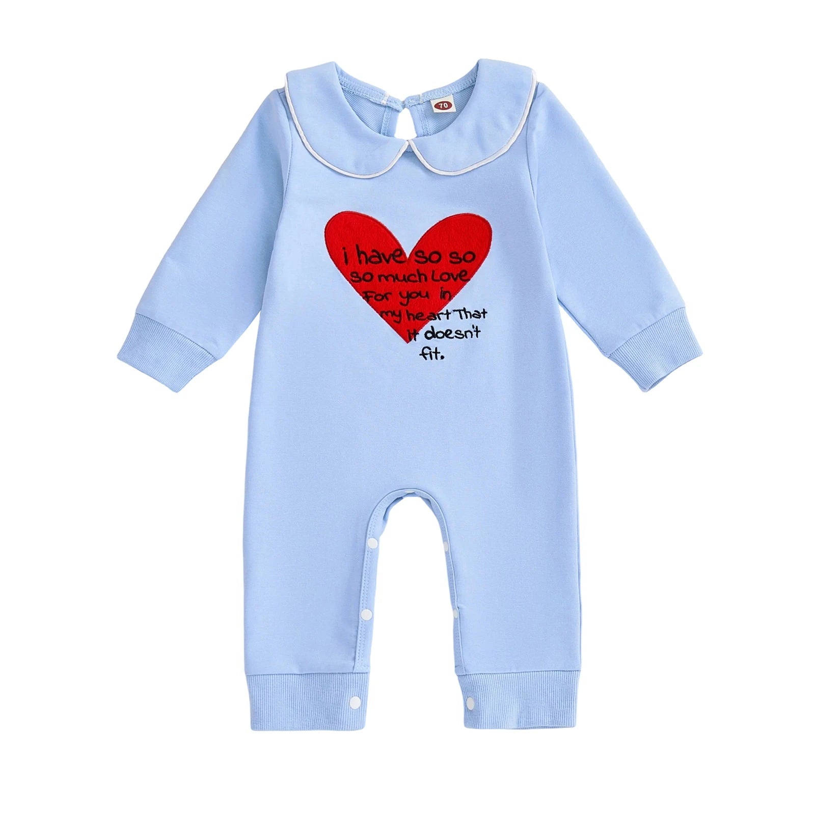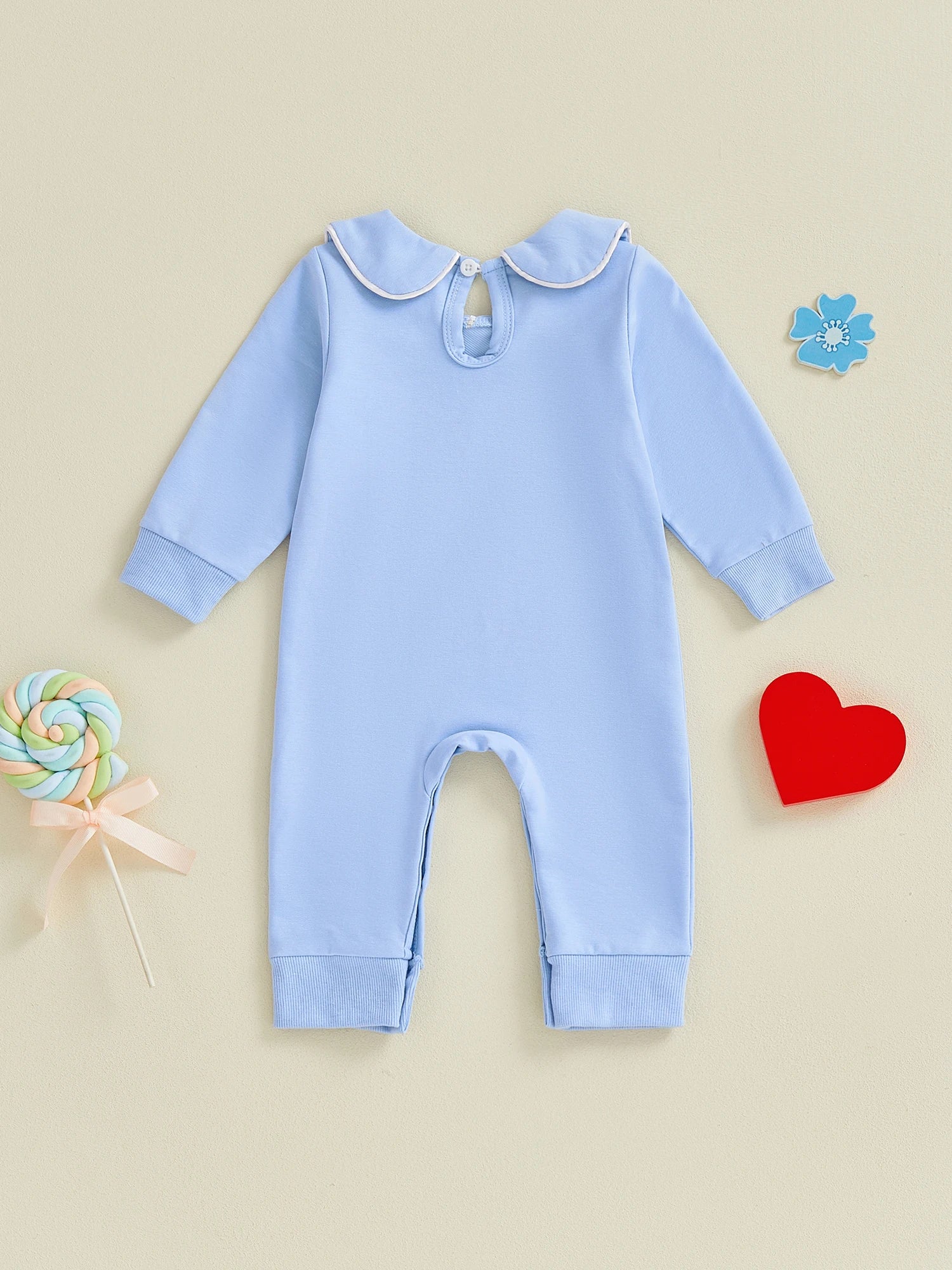 Lovely Baby Valentine's Day Romper - Heart Embroidery Long Sleeve Doll Collar Jumpsuit