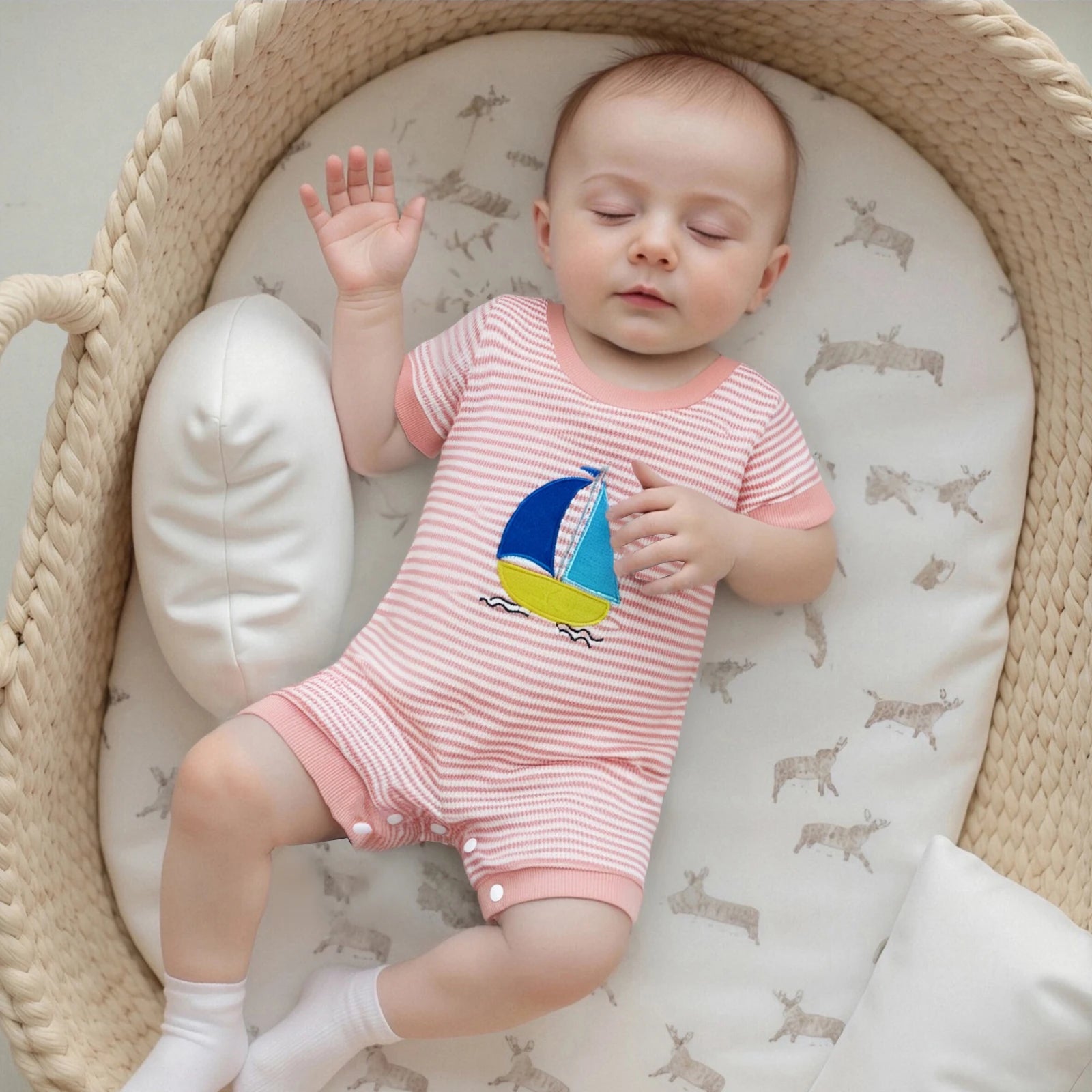 Baby Boys Girls Jumpsuits Short Sleeve Crew Neck Embroidery Rompers Newborn Playsuit