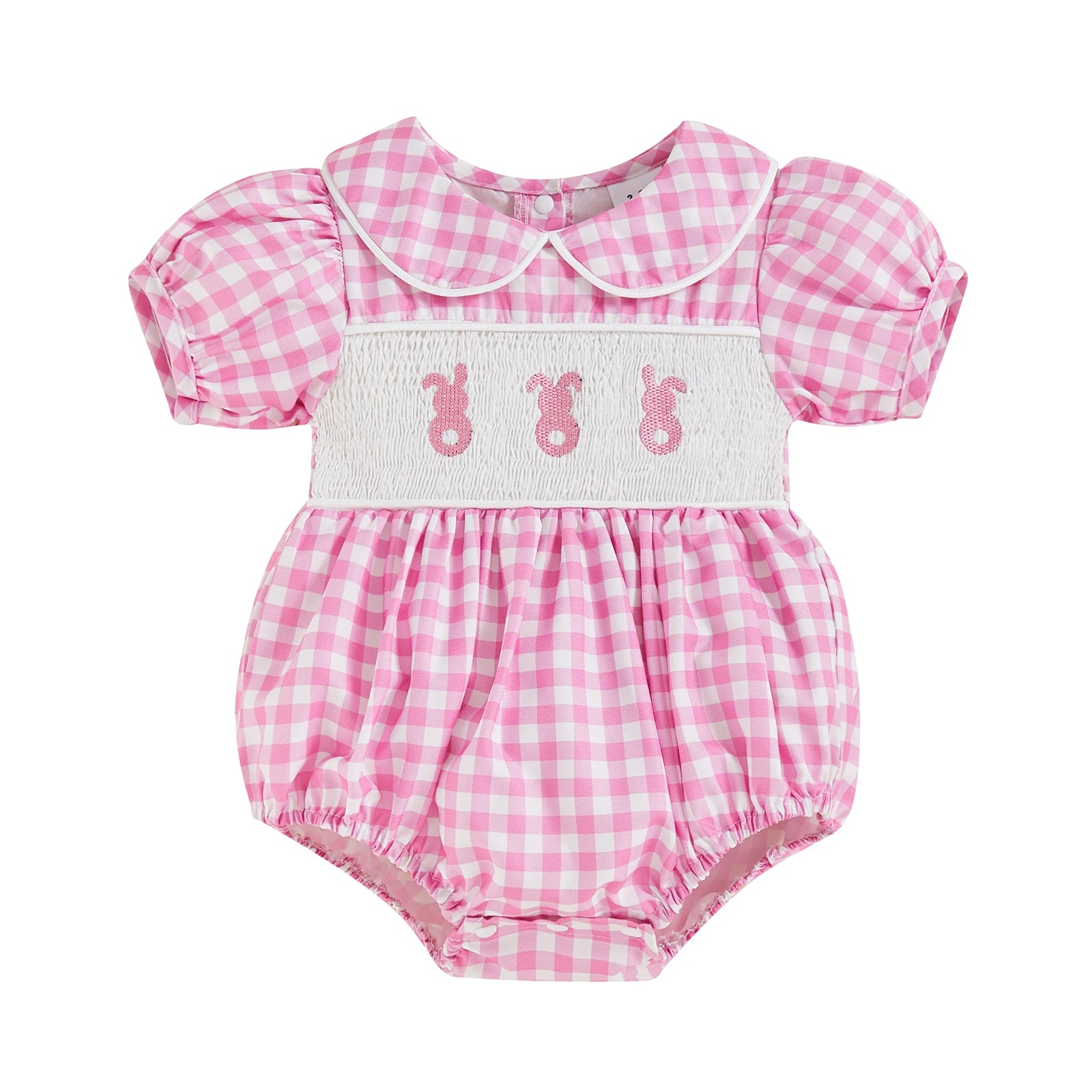 Baby Easter Romper with Bunny Embroidery - Smocked Doll Collar Bodysuit (Unisex)