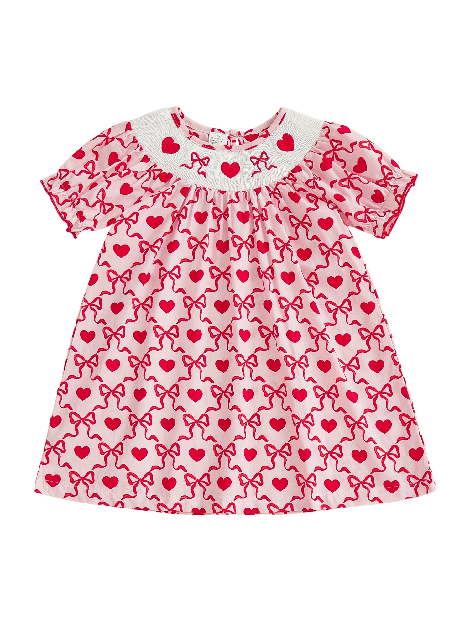 Dress your little sweetheart in this adorable Valentine's Day dress. Featuring charming heart embroidery and print details with a flattering A-line silhouette, this short sleeve dress combines sweet style with comfortable wearability perfect for celebrating love.