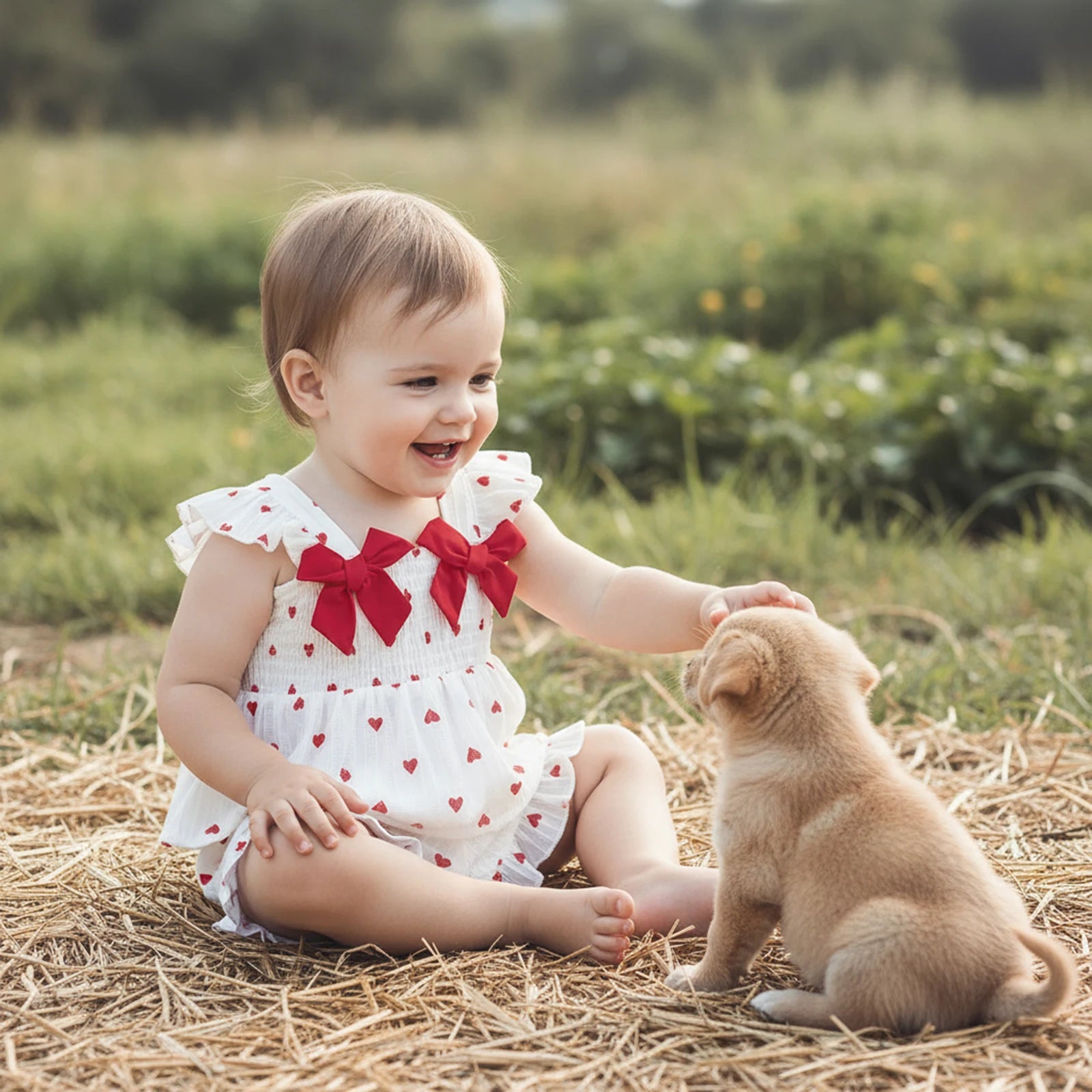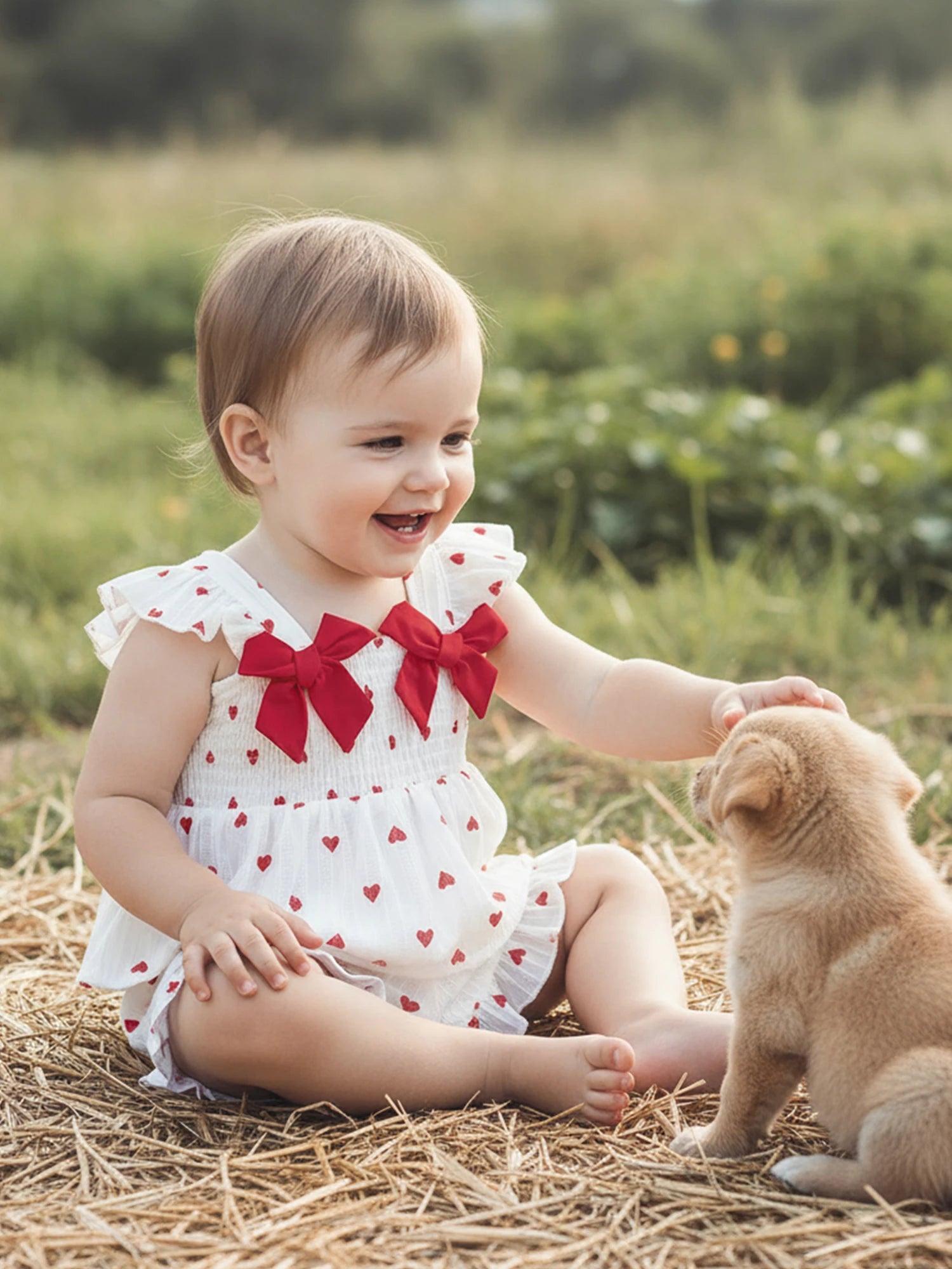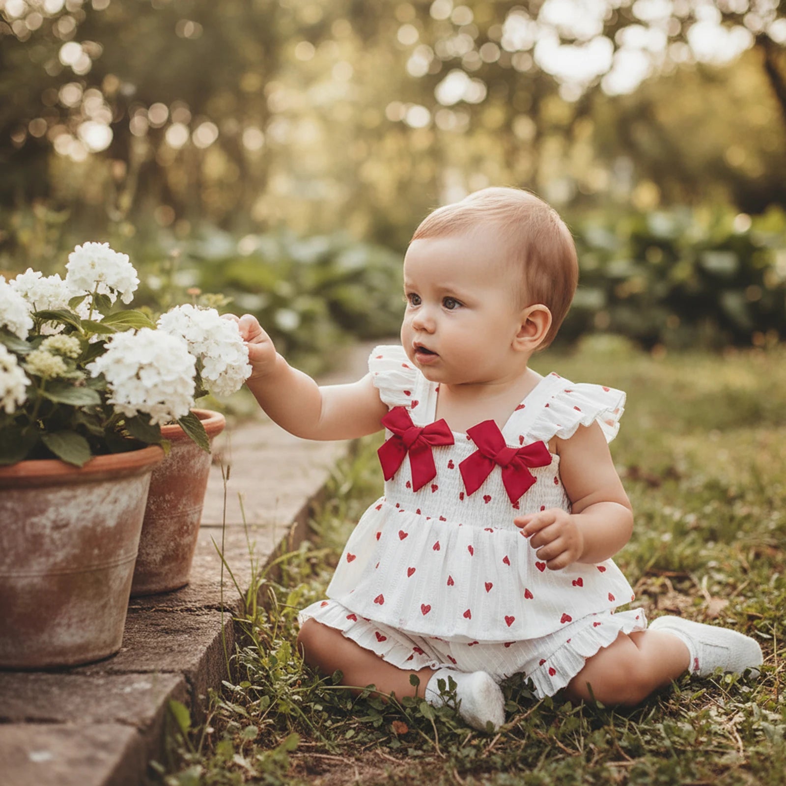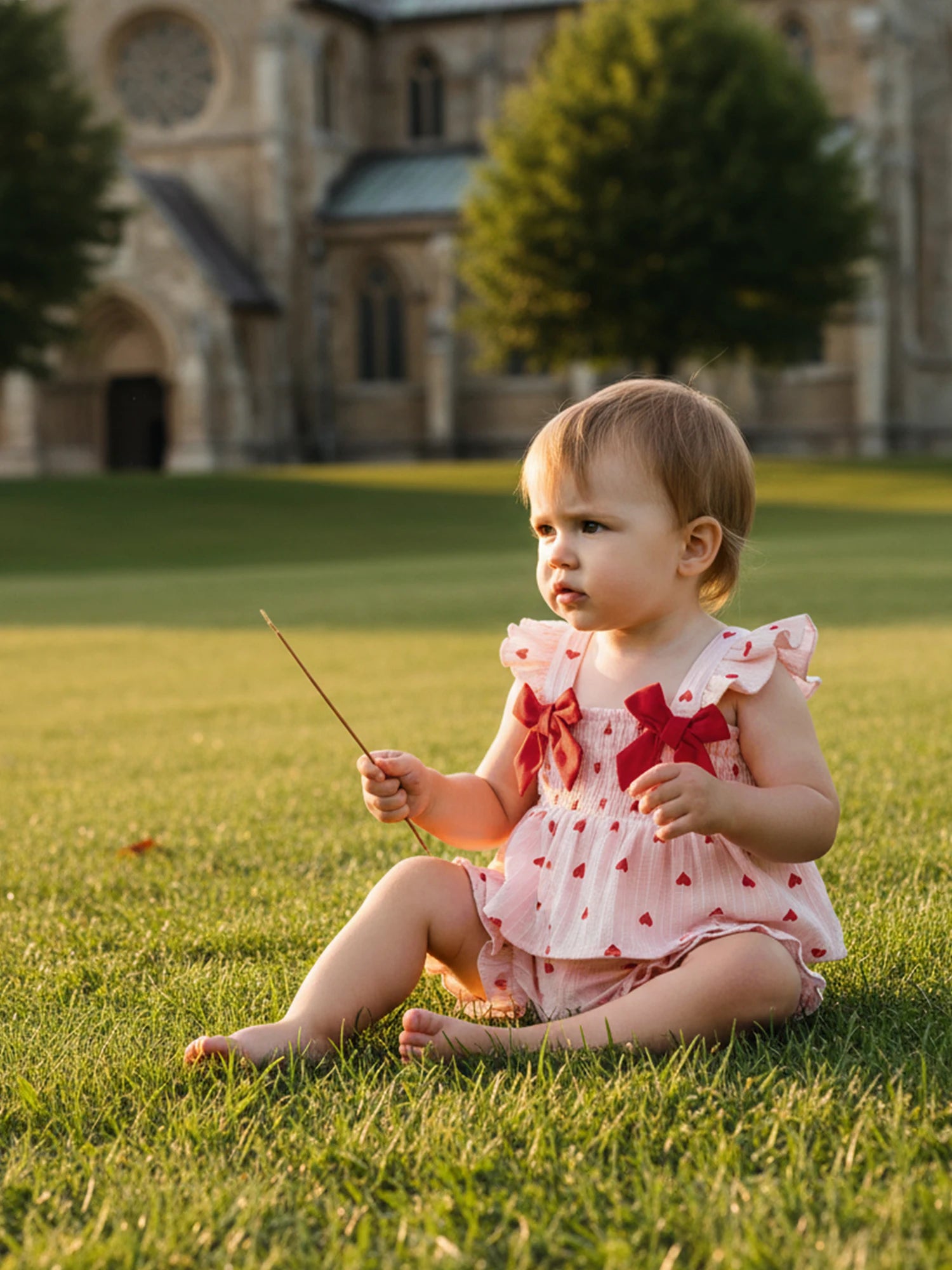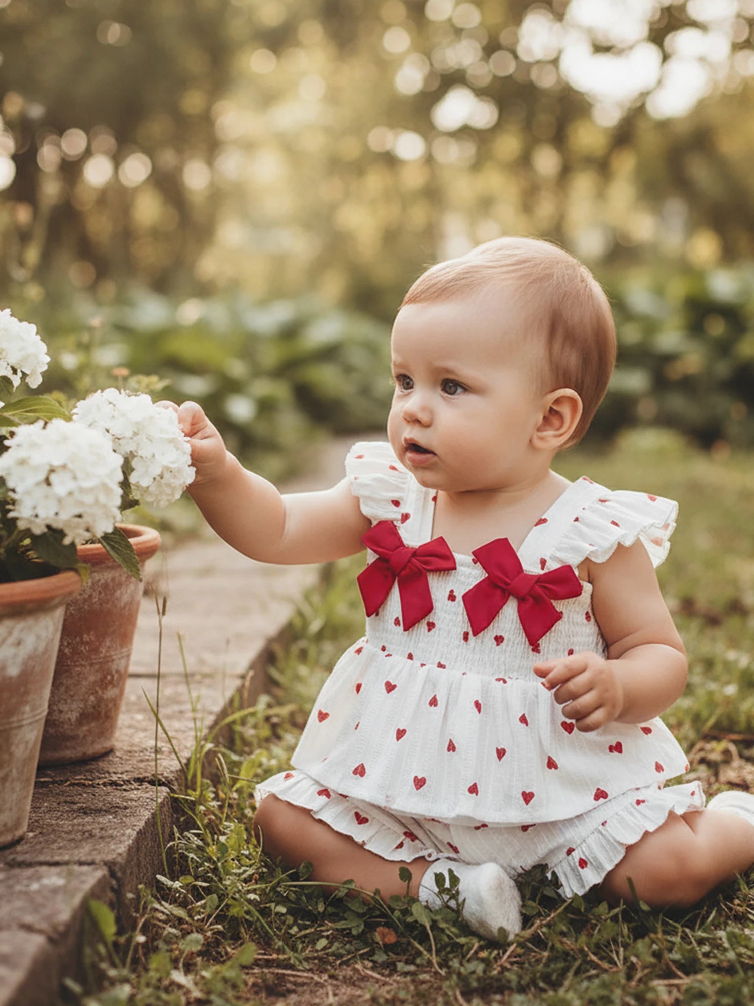 Style Notes: This adorable Valentine's Day set is perfect for your little sweetheart. The ruffle shoulder straps and heart print create an irresistibly cute look that's ideal for Valentine's celebrations, family photos, or special occasions. Pair with trainers for playtime or dress up with Mary Jane shoes for parties. A wonderful gift for birthdays, holidays, or just because!