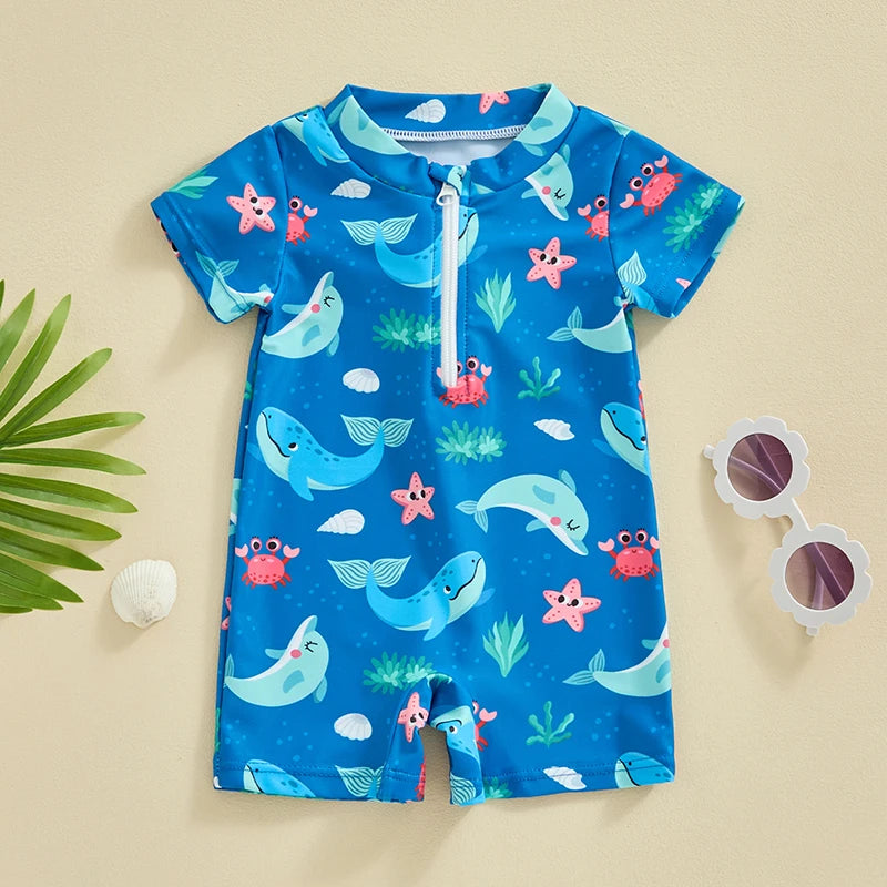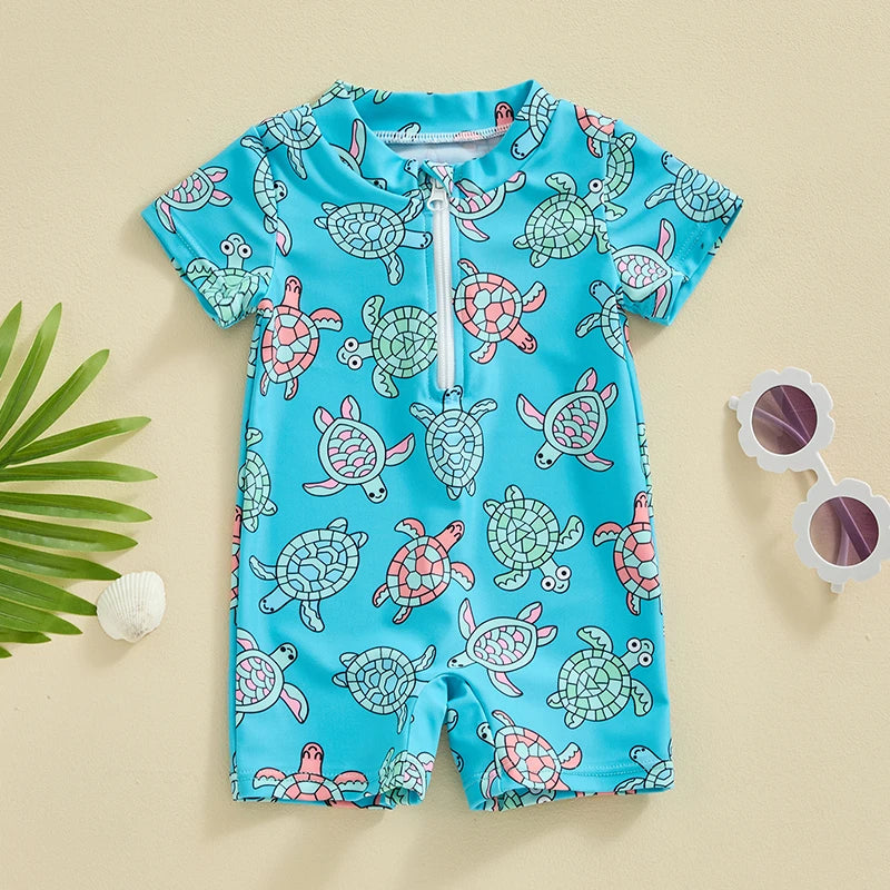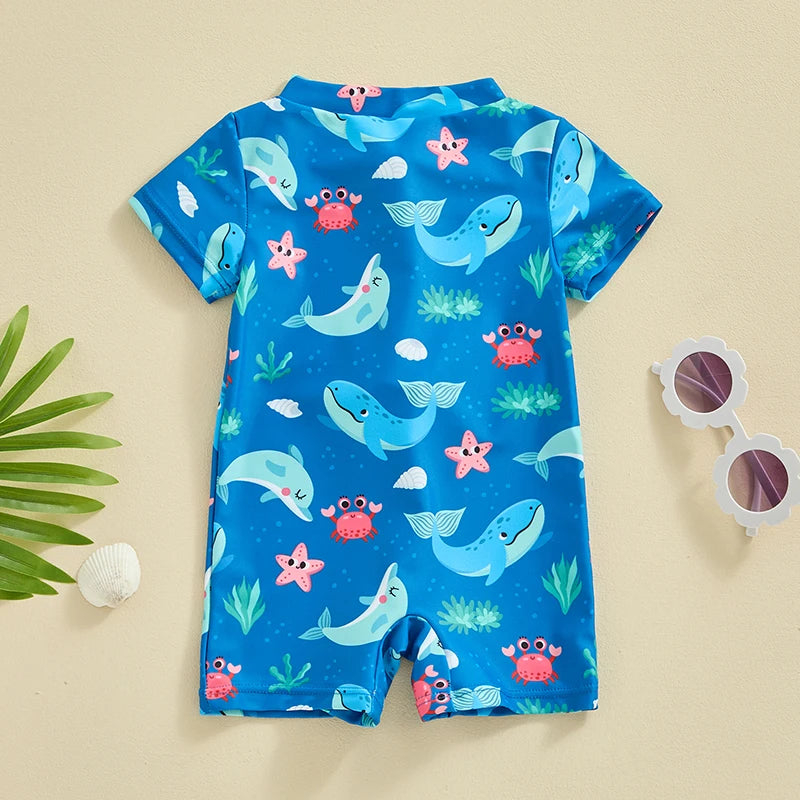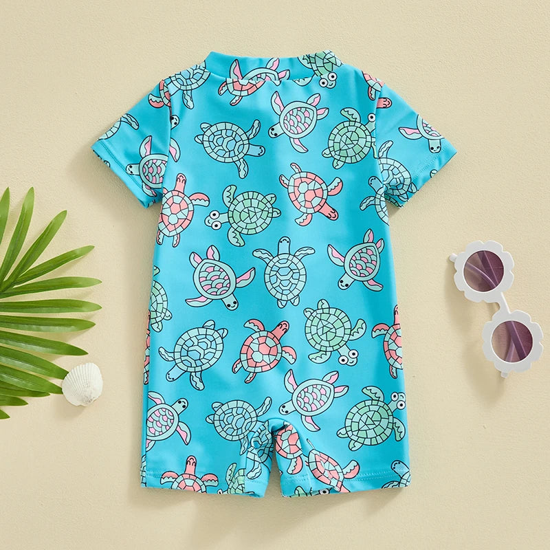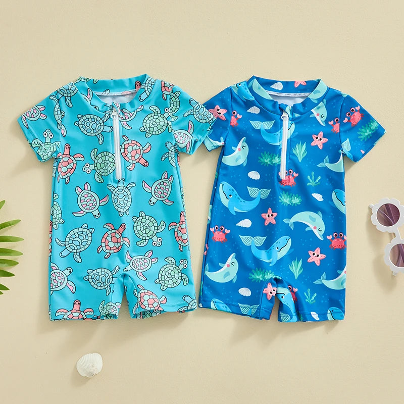 Baby Boys Beachwear 0-3Y Short Sleeve Turtle Dolphin Print Swimsuit Jumpsuit Summer Swimwear