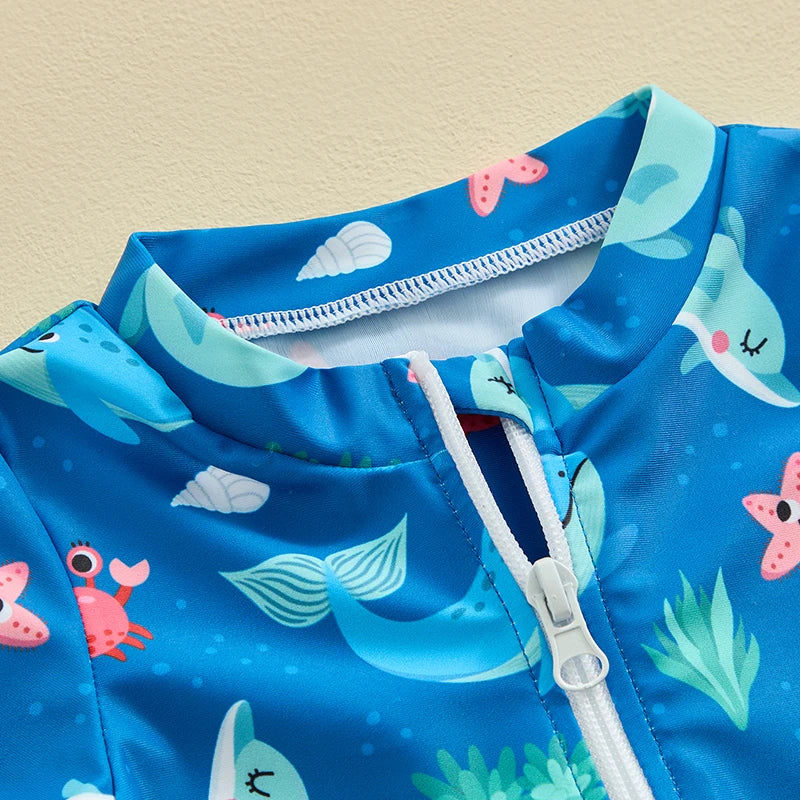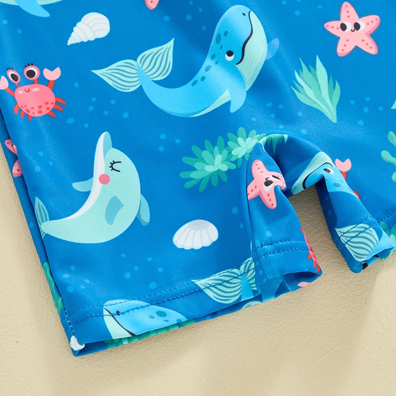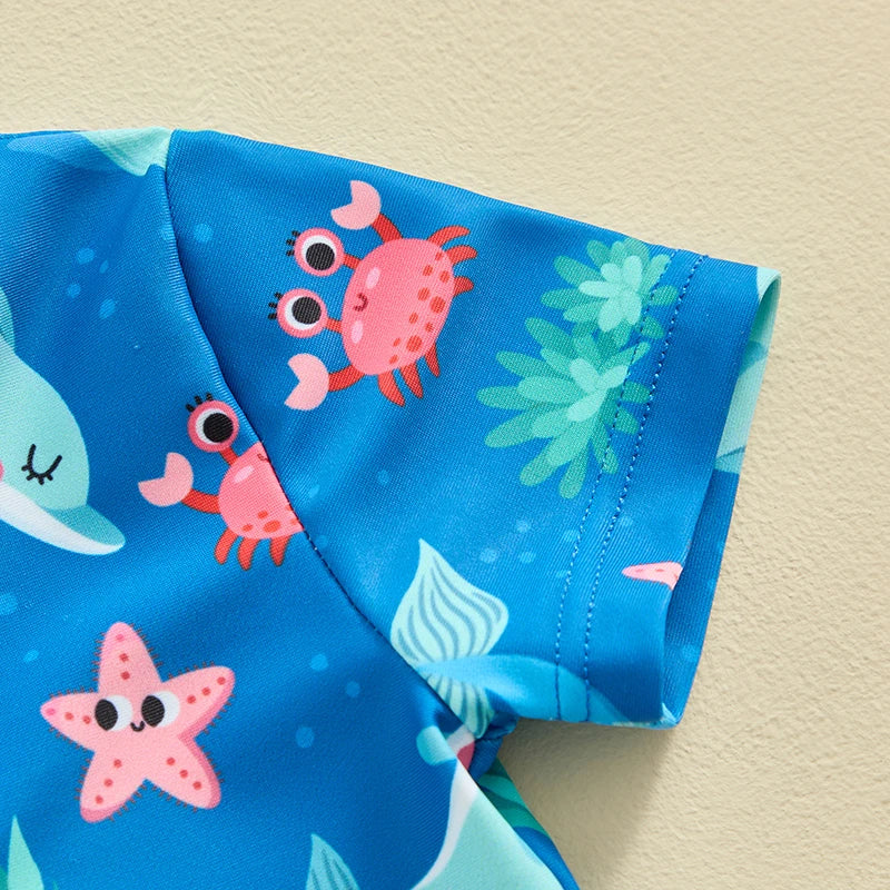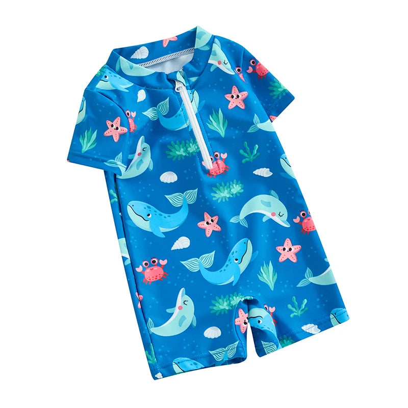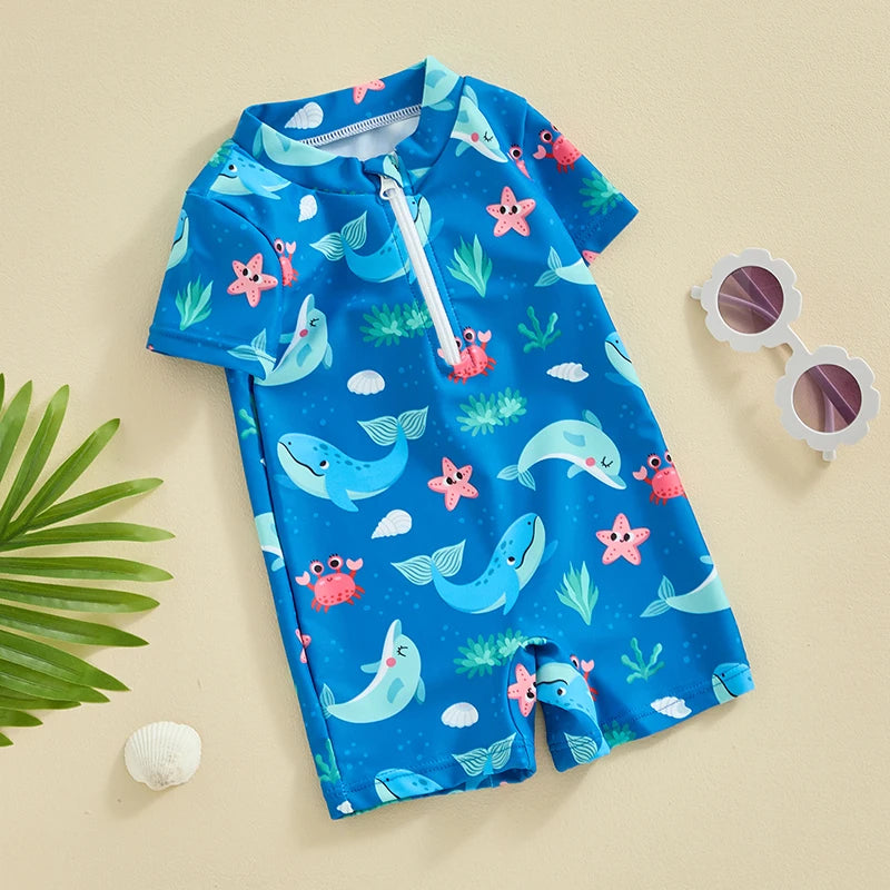 Baby Boys Beachwear 0-3Y Short Sleeve Turtle Dolphin Print Swimsuit Jumpsuit Summer Swimwear