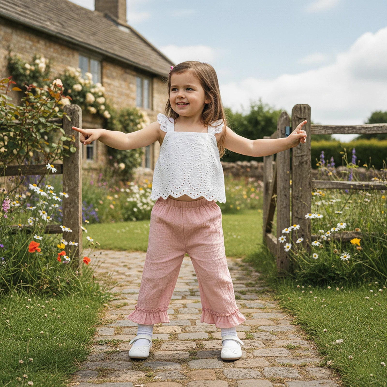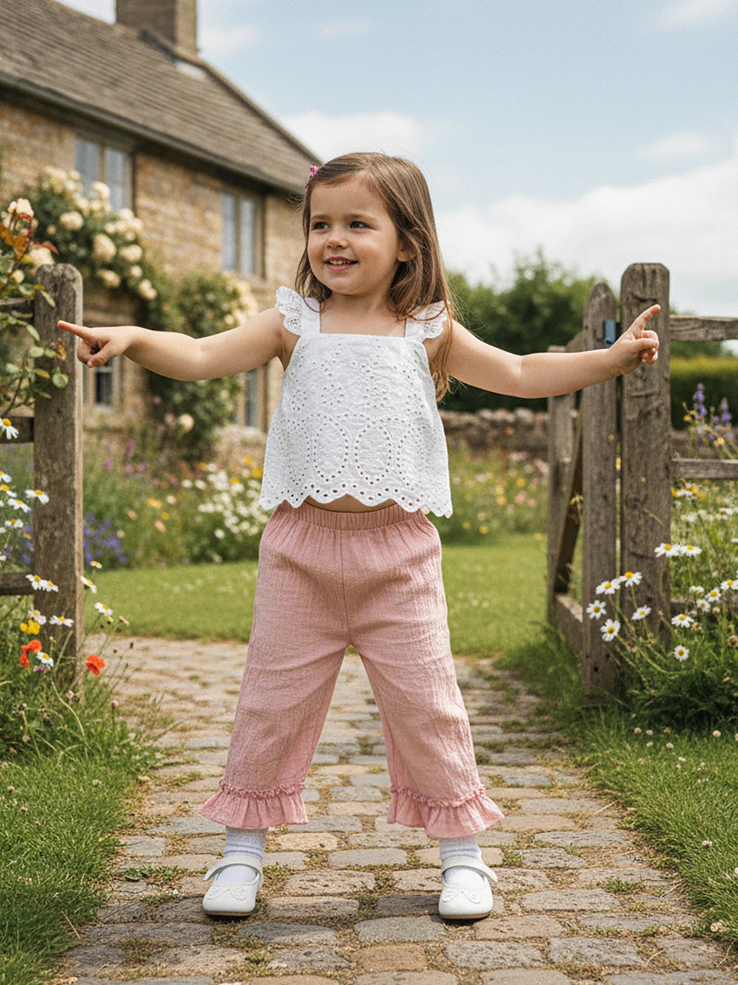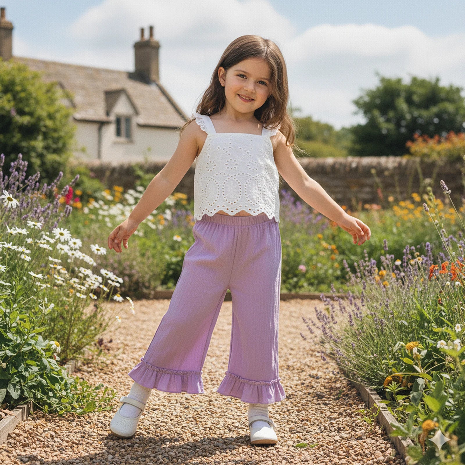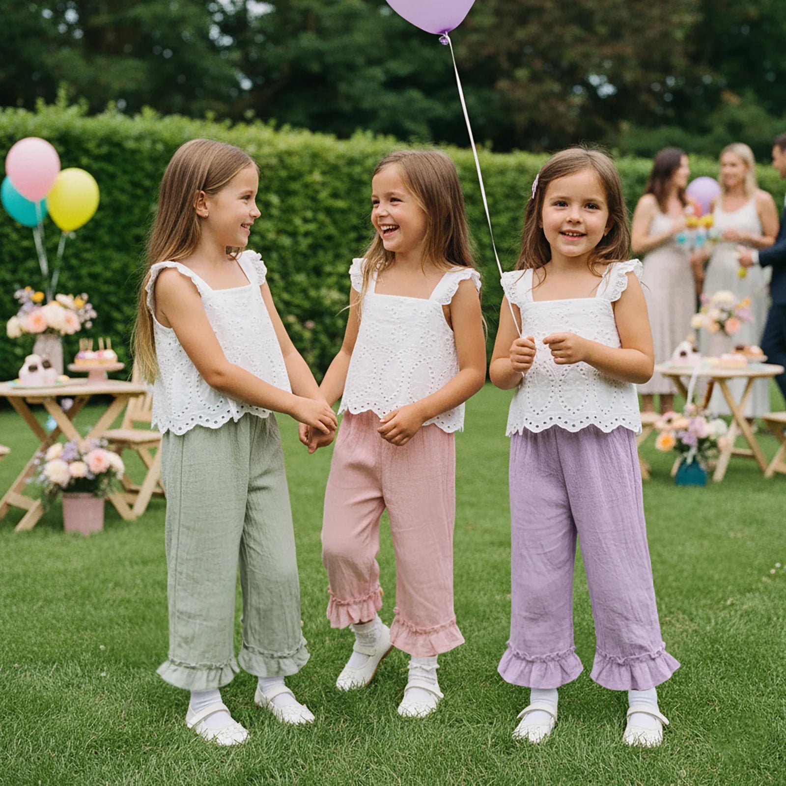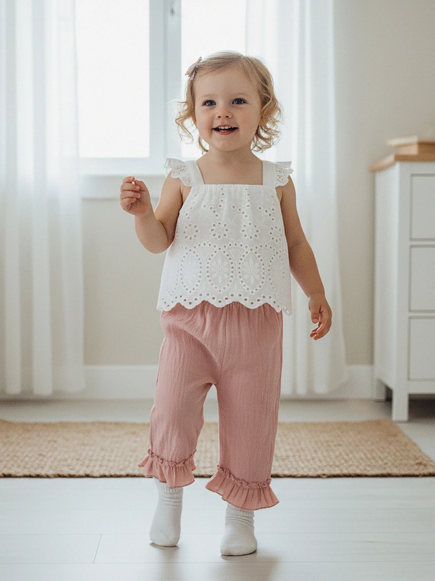 Girls Spring Outfit Set - Lace Ruffle Sleeveless Top & Wide Leg Pants (2-7Y)