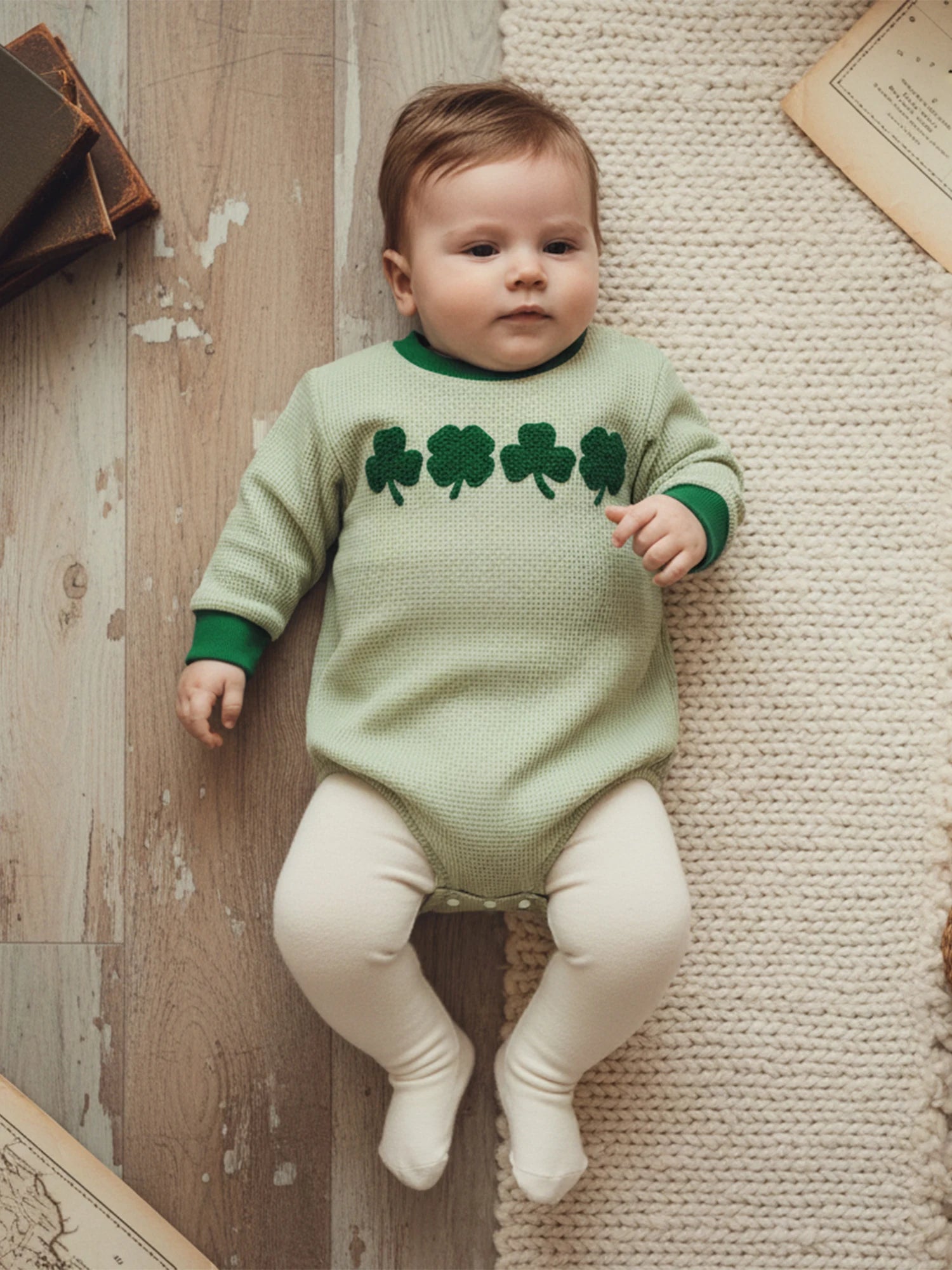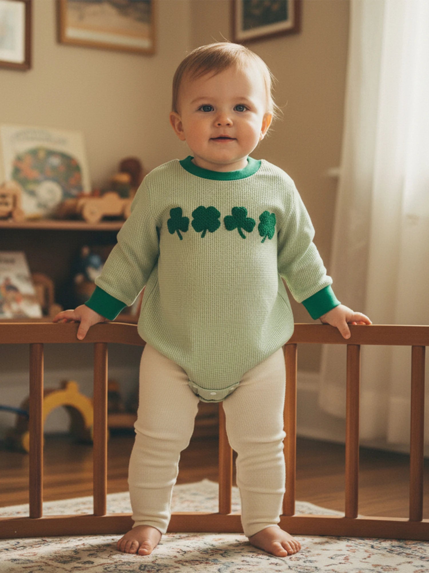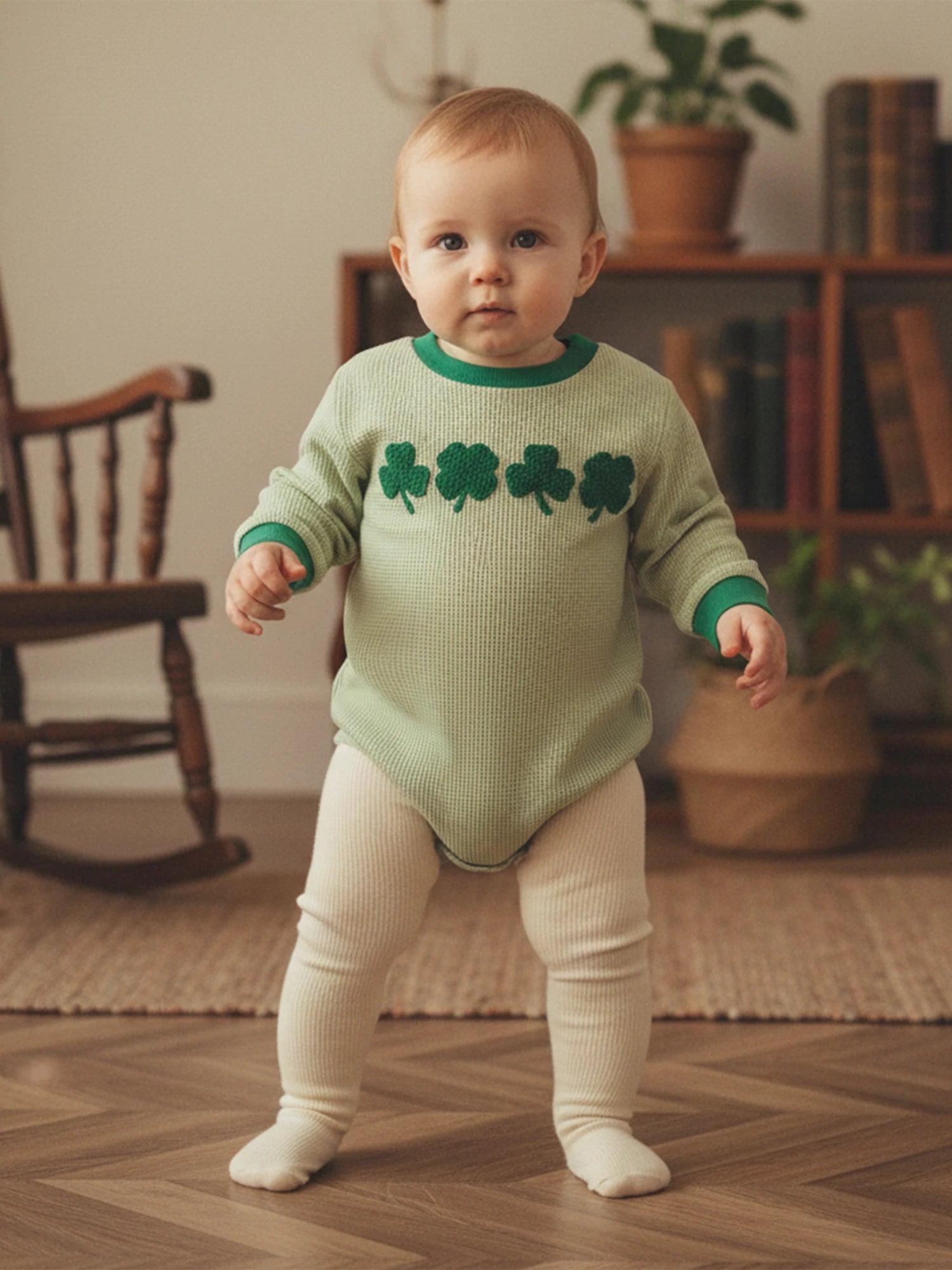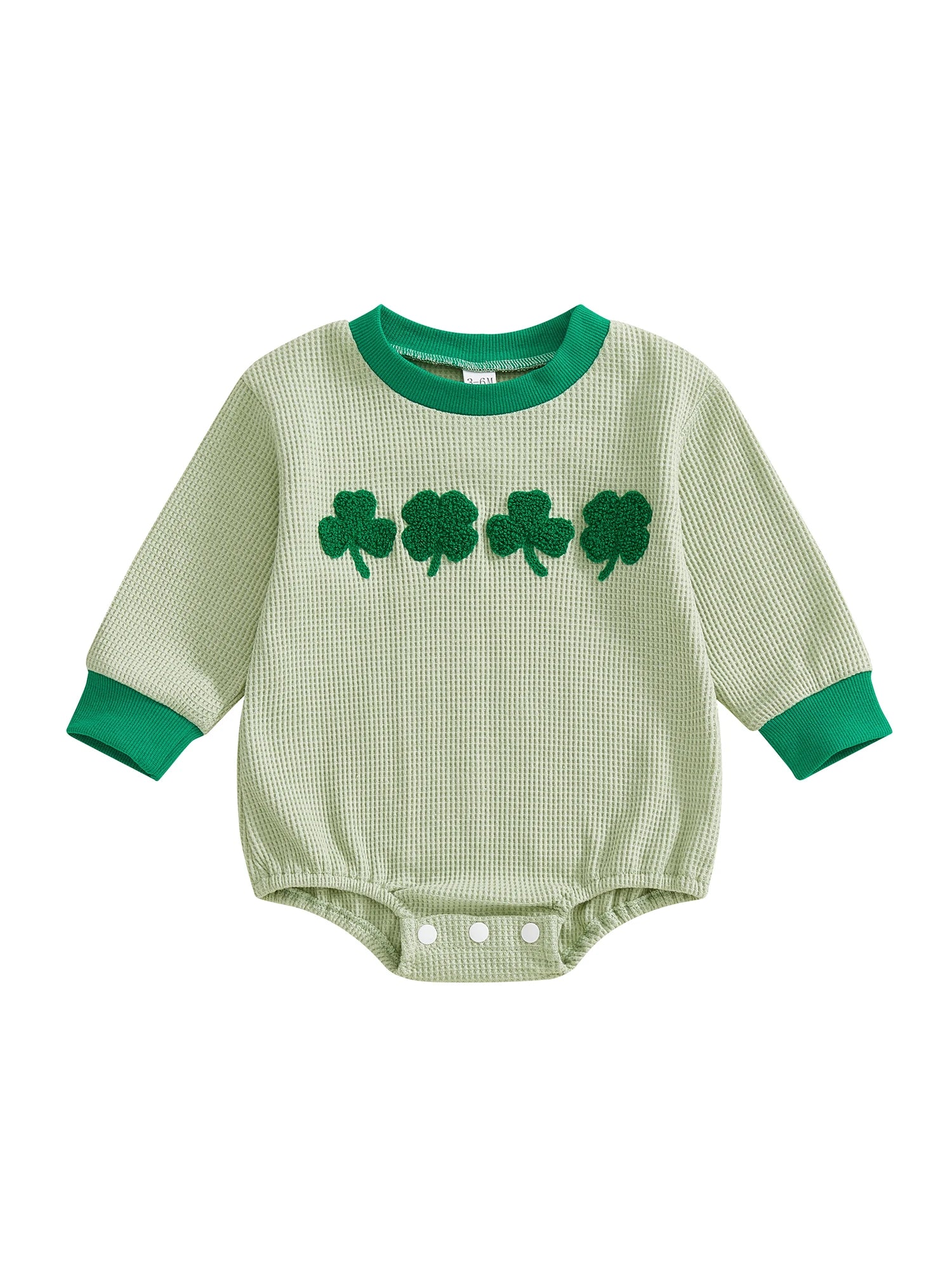 Baby Boys Girls Festival Romper - Shamrock Embroidery Plaid Long Sleeve Jumpsuit