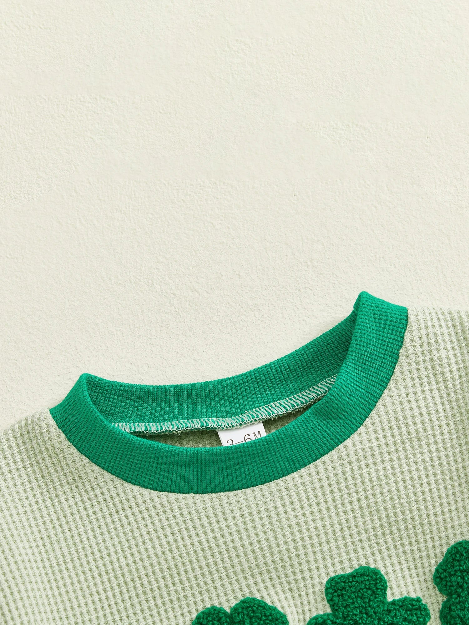Celebrate special occasions with this lovely romper featuring delicate shamrock embroidery and a classic plaid pattern. Perfect for St. Patrick's Day, festivals, or any festive gathering.