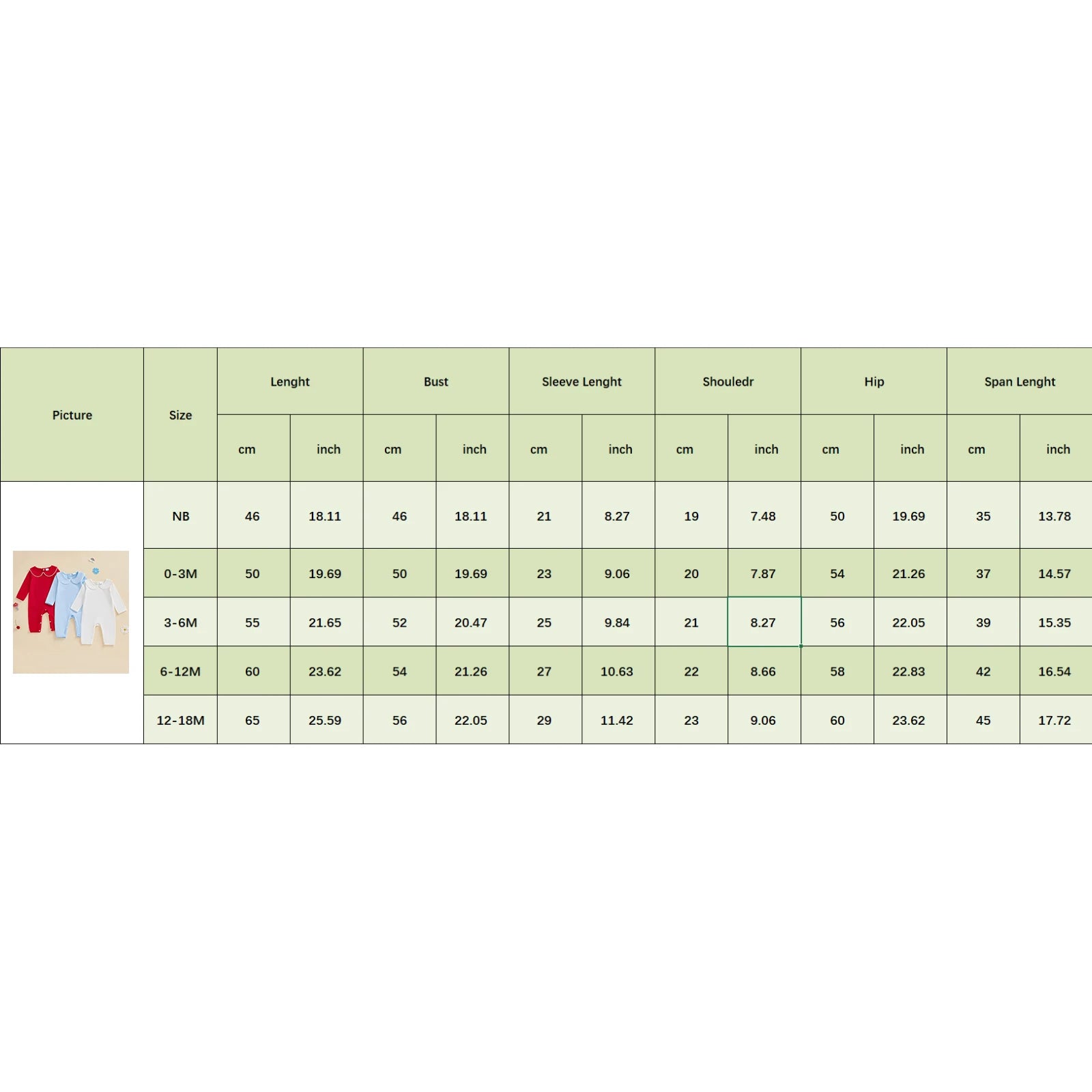 Size Guide (Ages 0-18 Months):