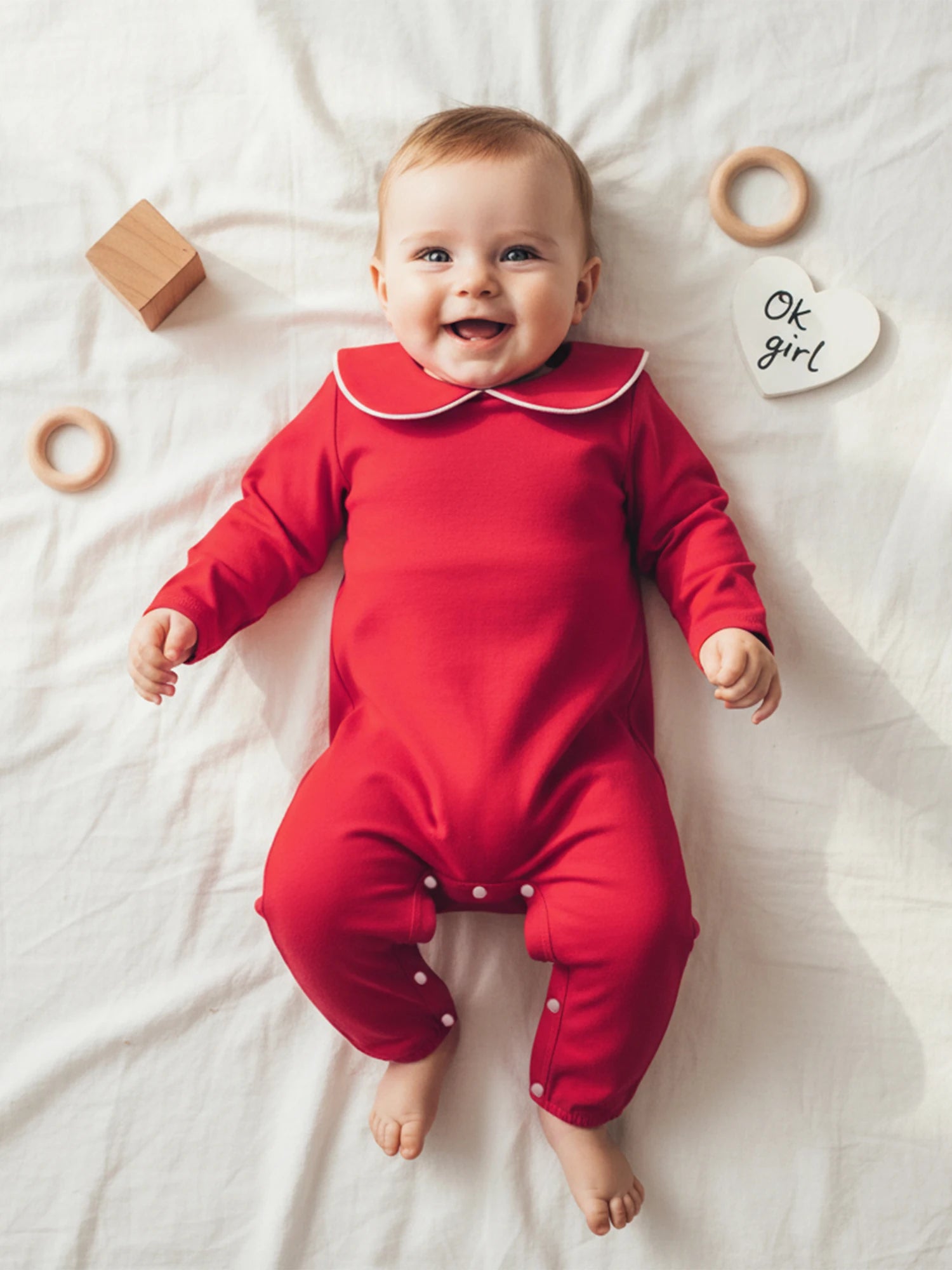 Style Notes: This versatile romper is perfect for your little one's everyday wardrobe. The doll collar and snap closure make dressing easy while keeping baby comfortable all day long. Ideal for playtime, naptime, or as cosy pyjamas. Layer under a cardigan for extra warmth on cooler days. A wonderful essential for any baby's autumn-winter wardrobe and makes a thoughtful gift for new parents!