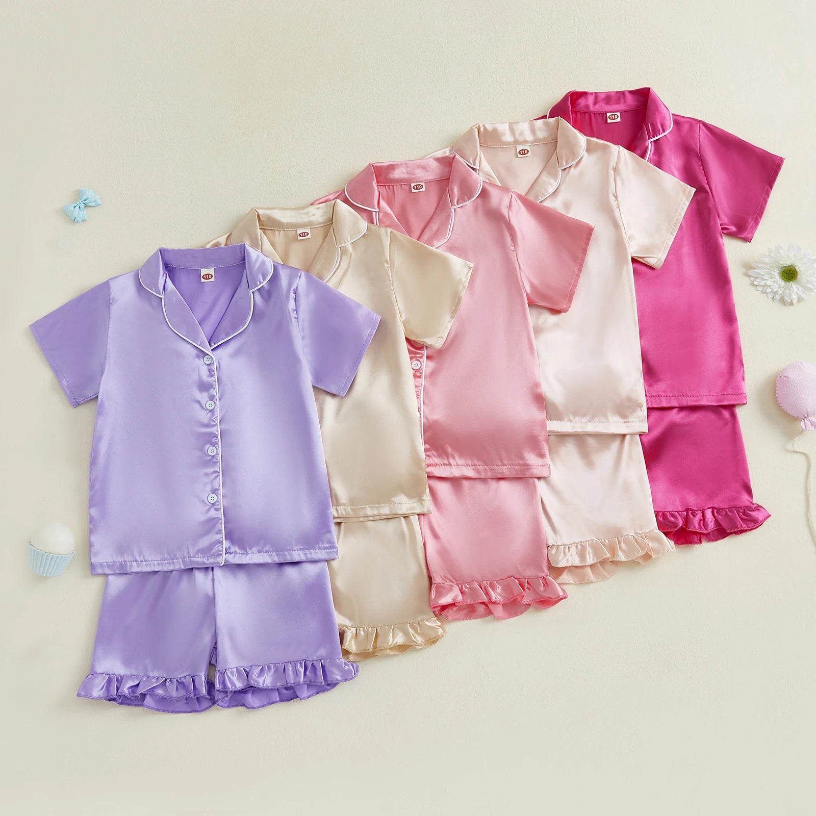 Keep your little one cool and comfortable all summer long with this charming 2-piece pajamas set. Featuring a button-down lapel top with V-neck and matching ruffled shorts, this fashionable sleepwear is perfect for girls aged 0-10 years. Available in 5 beautiful colours to suit every preference.