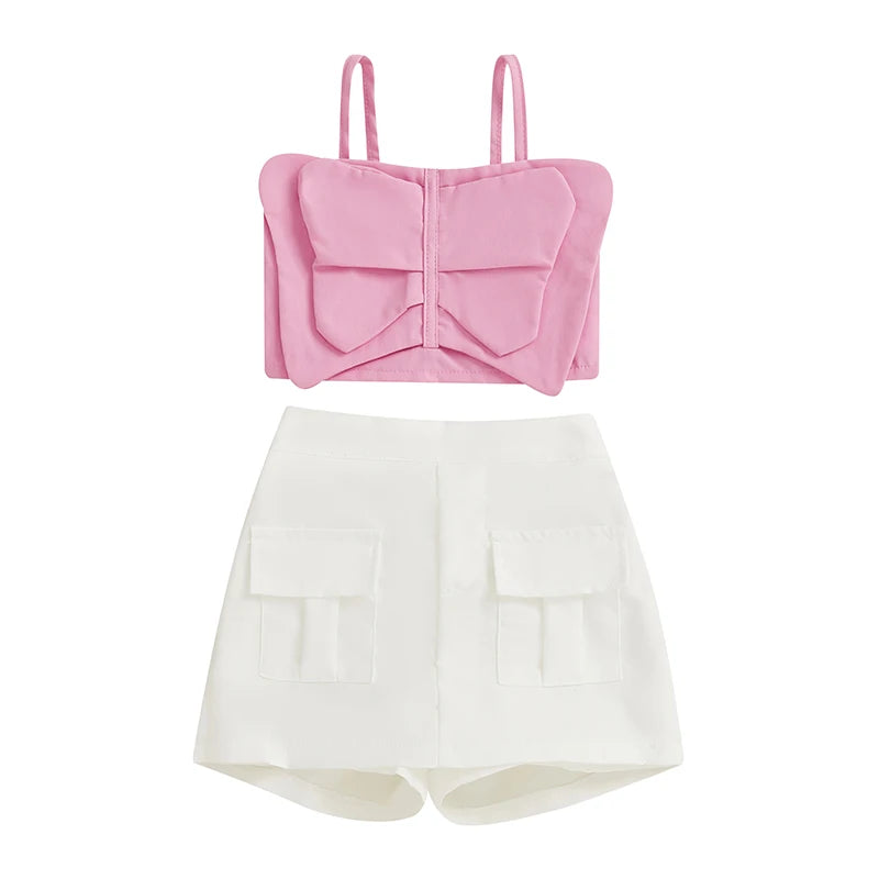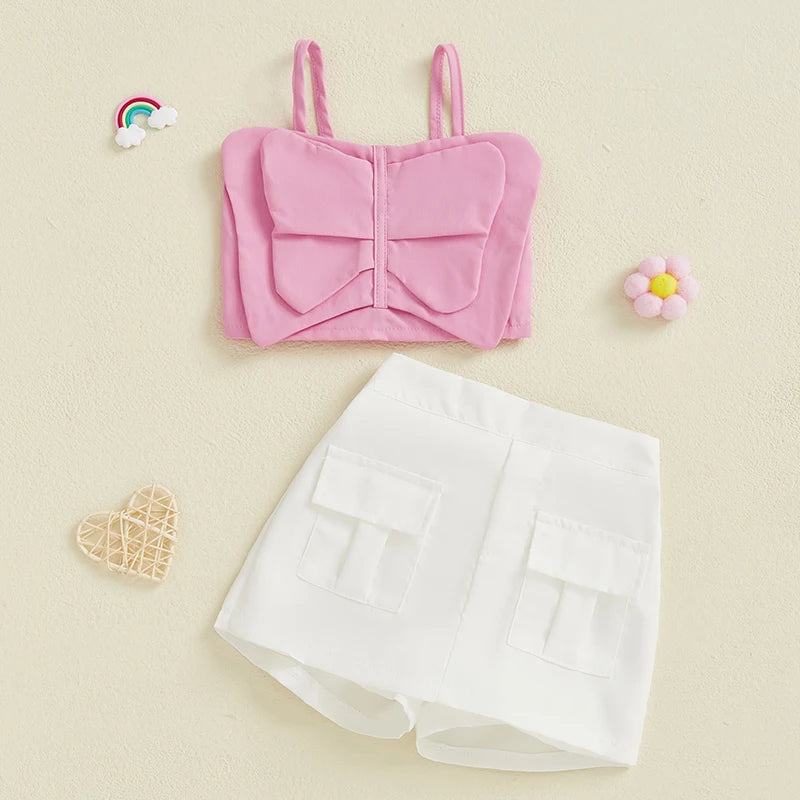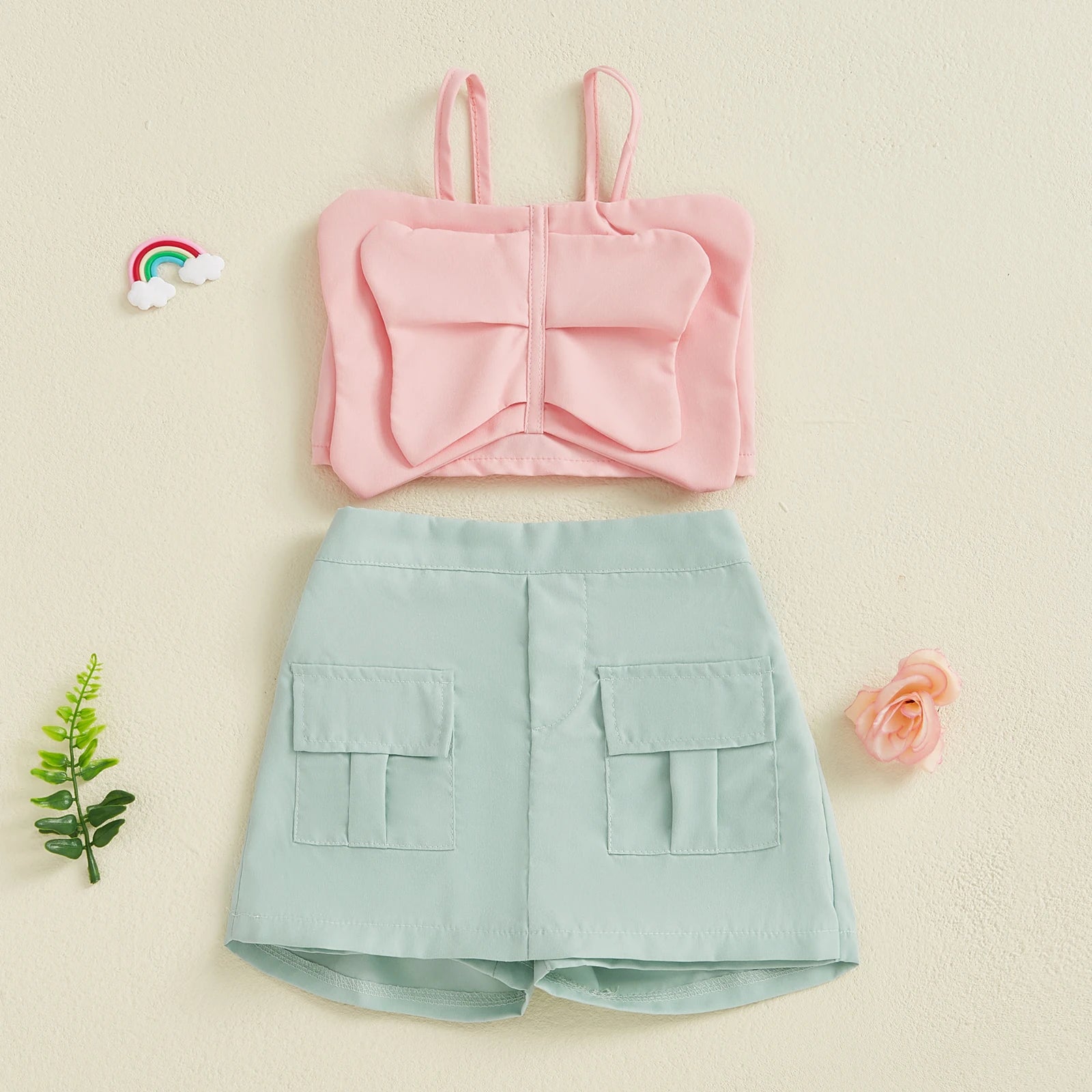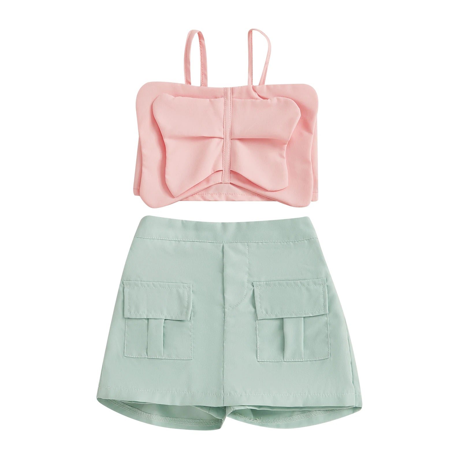 Kids Girls Summer Clothes Set 0-5Y Butterfly Cami Top with Shorts 2PCS Set