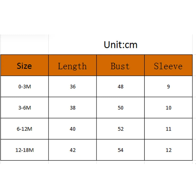 - 0-3M: Chest 40cm, Length 42cm