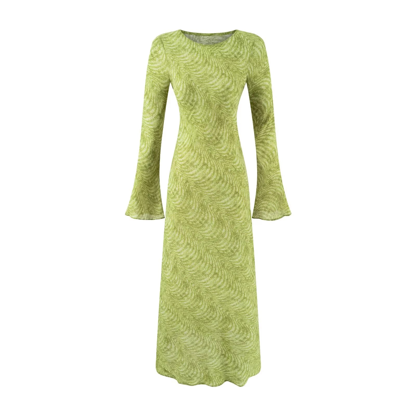 Women's Elegant Trumpet Long Sleeve Dress - Waist Cinching Design with Hip Hugging Silhouette