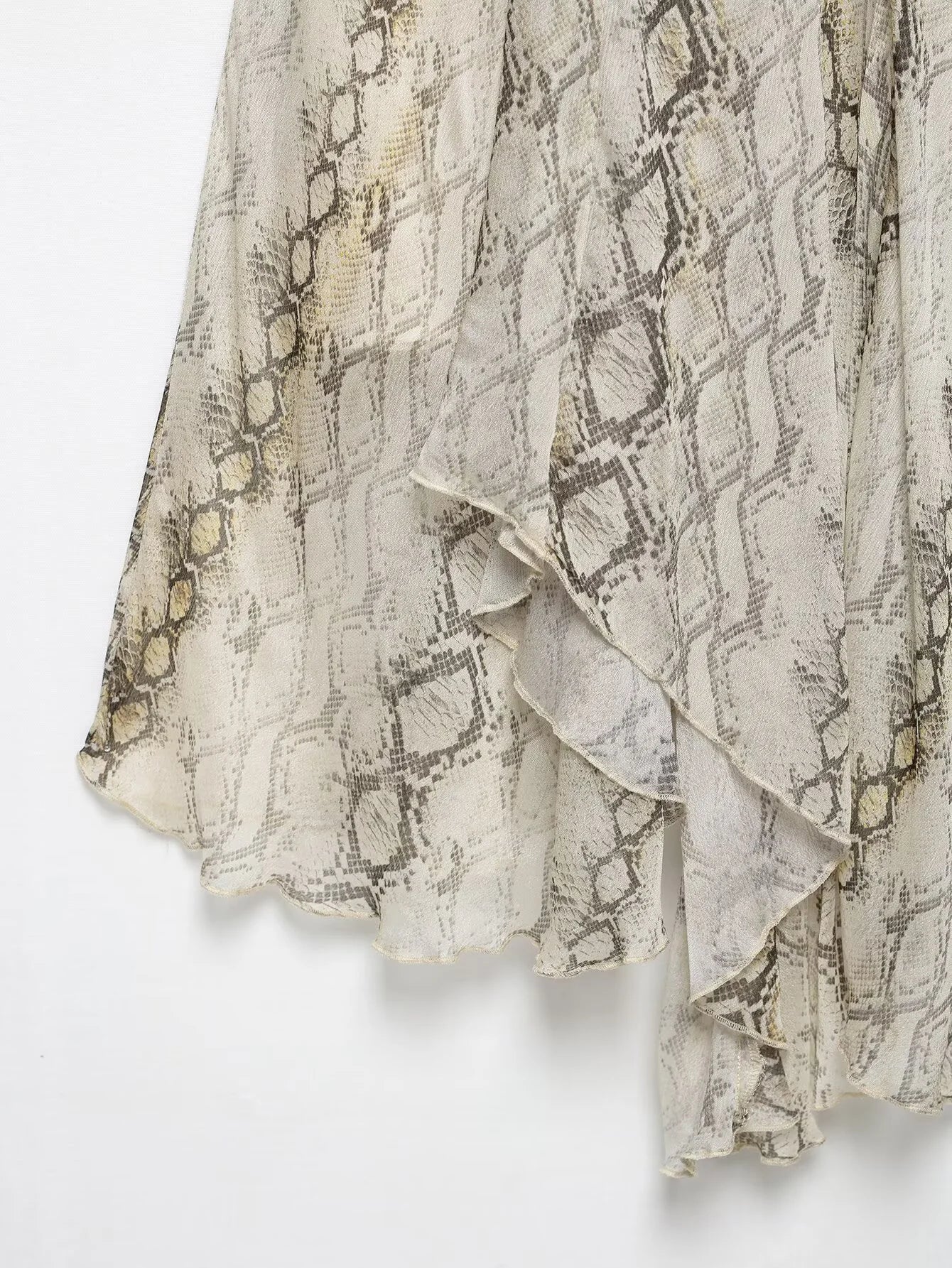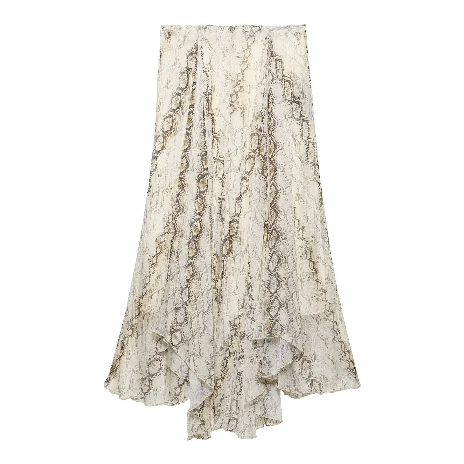 Women's Retro Vacation Midi Skirt - Irregular Snake Pattern Print Summer