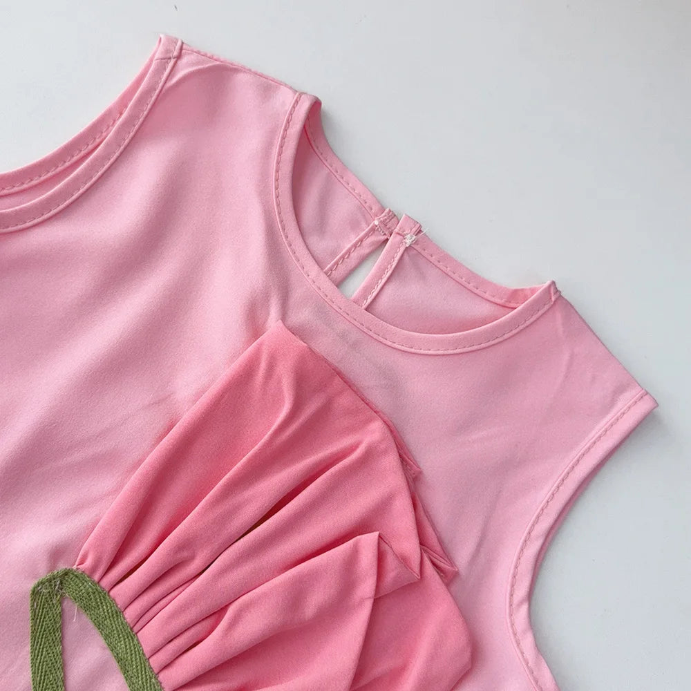 Girl's 3D Flower Sleeveless Princess Baby Pink Summer Dress